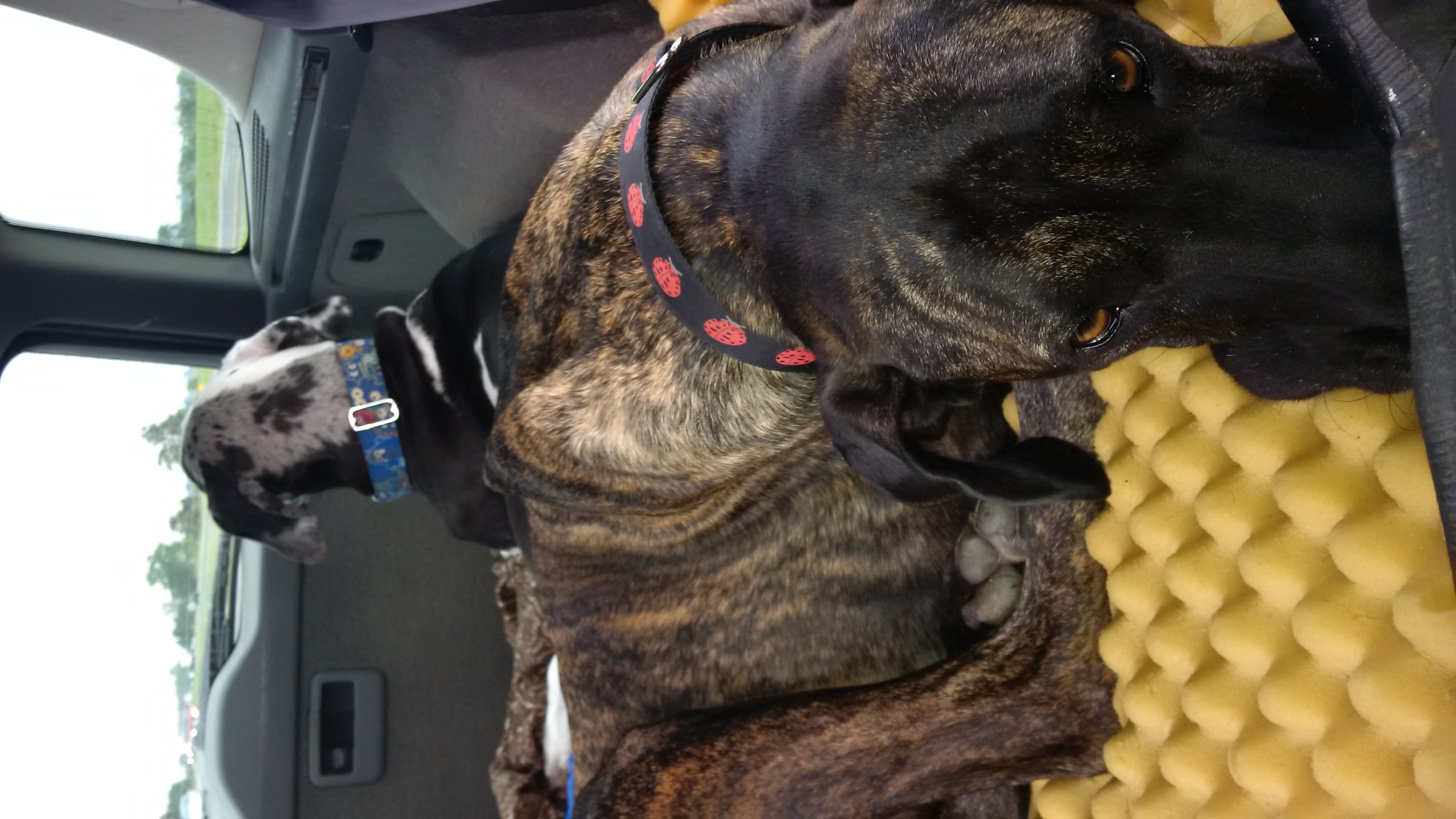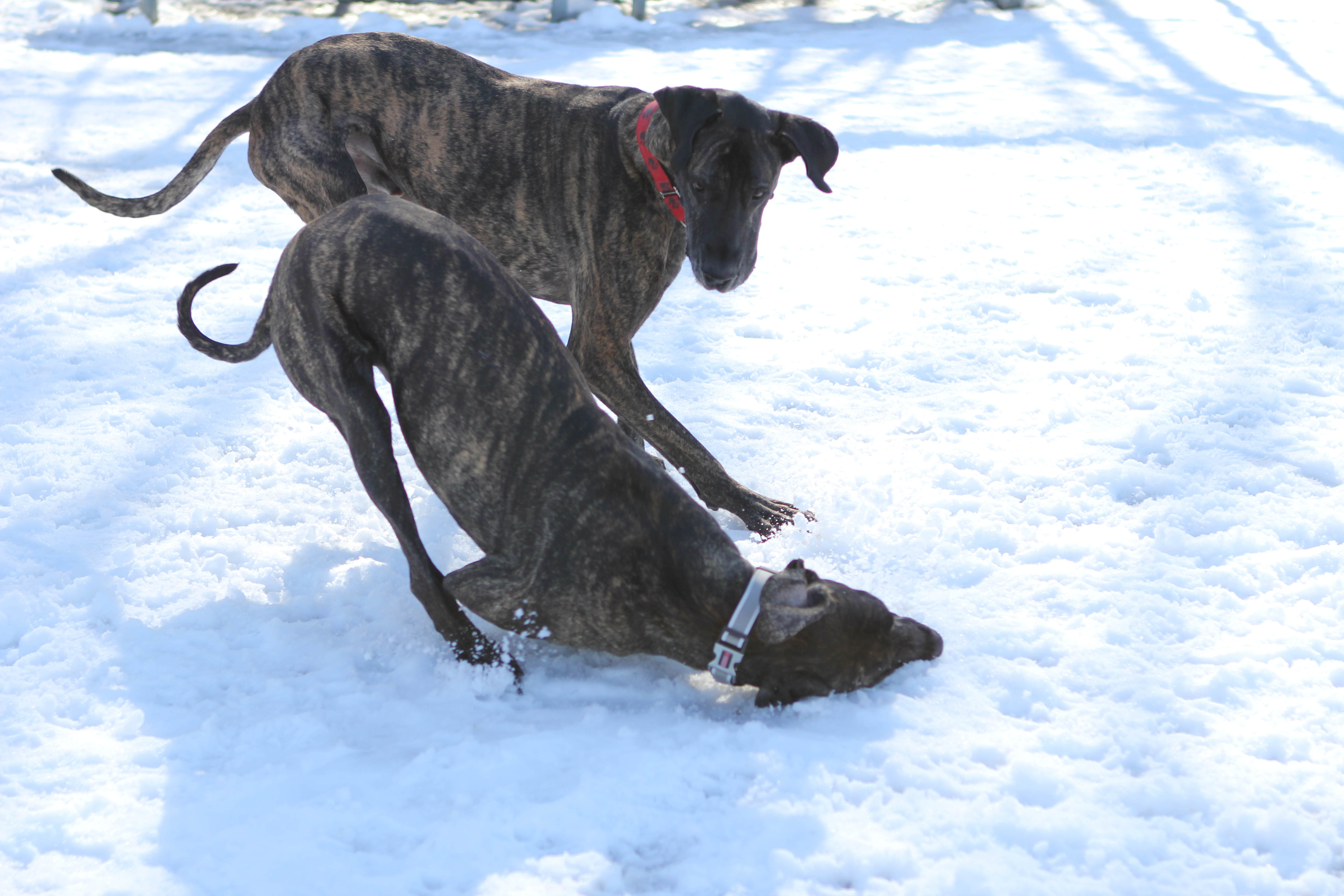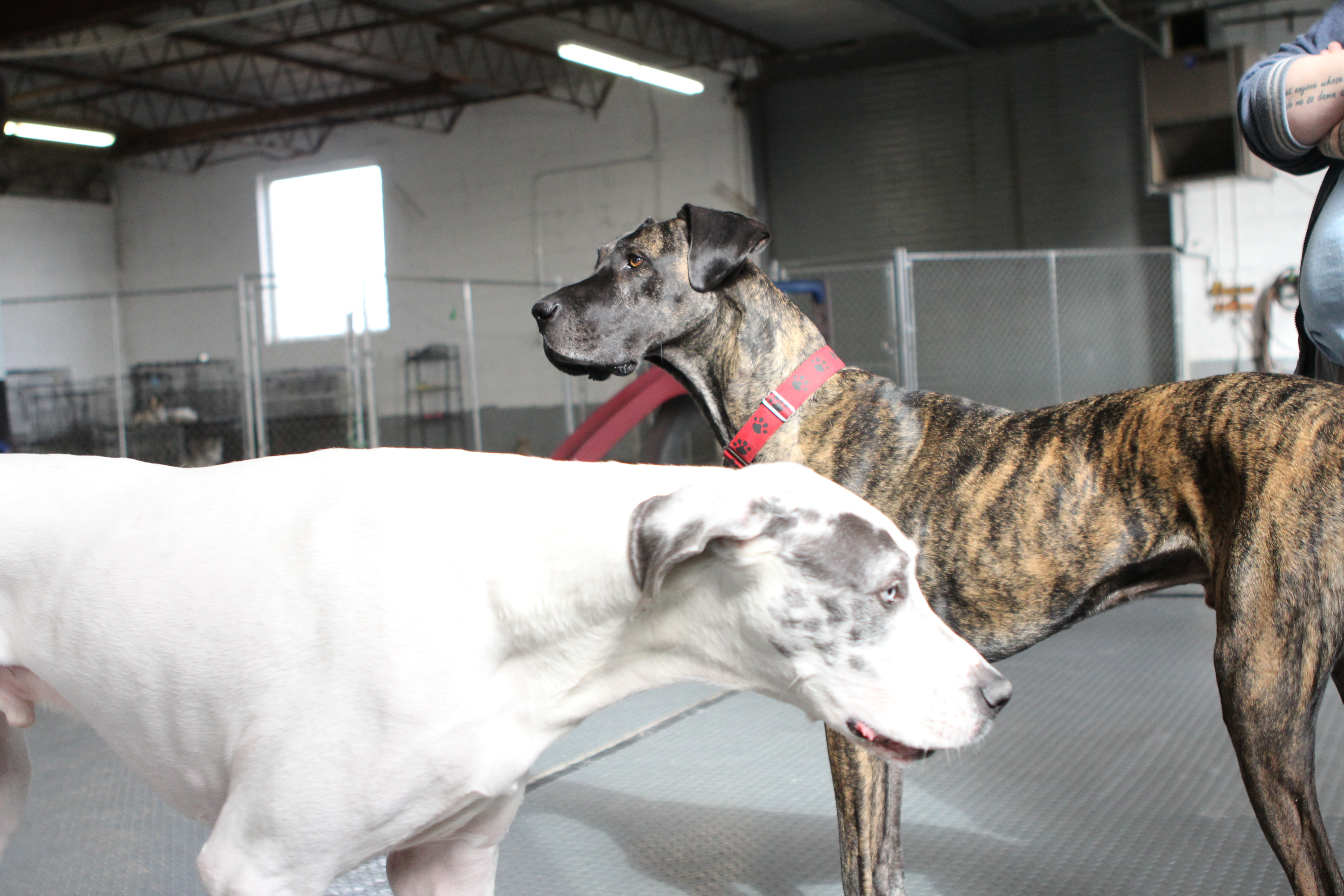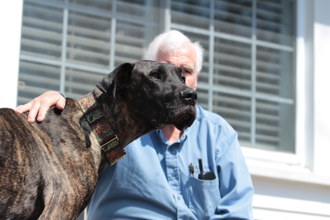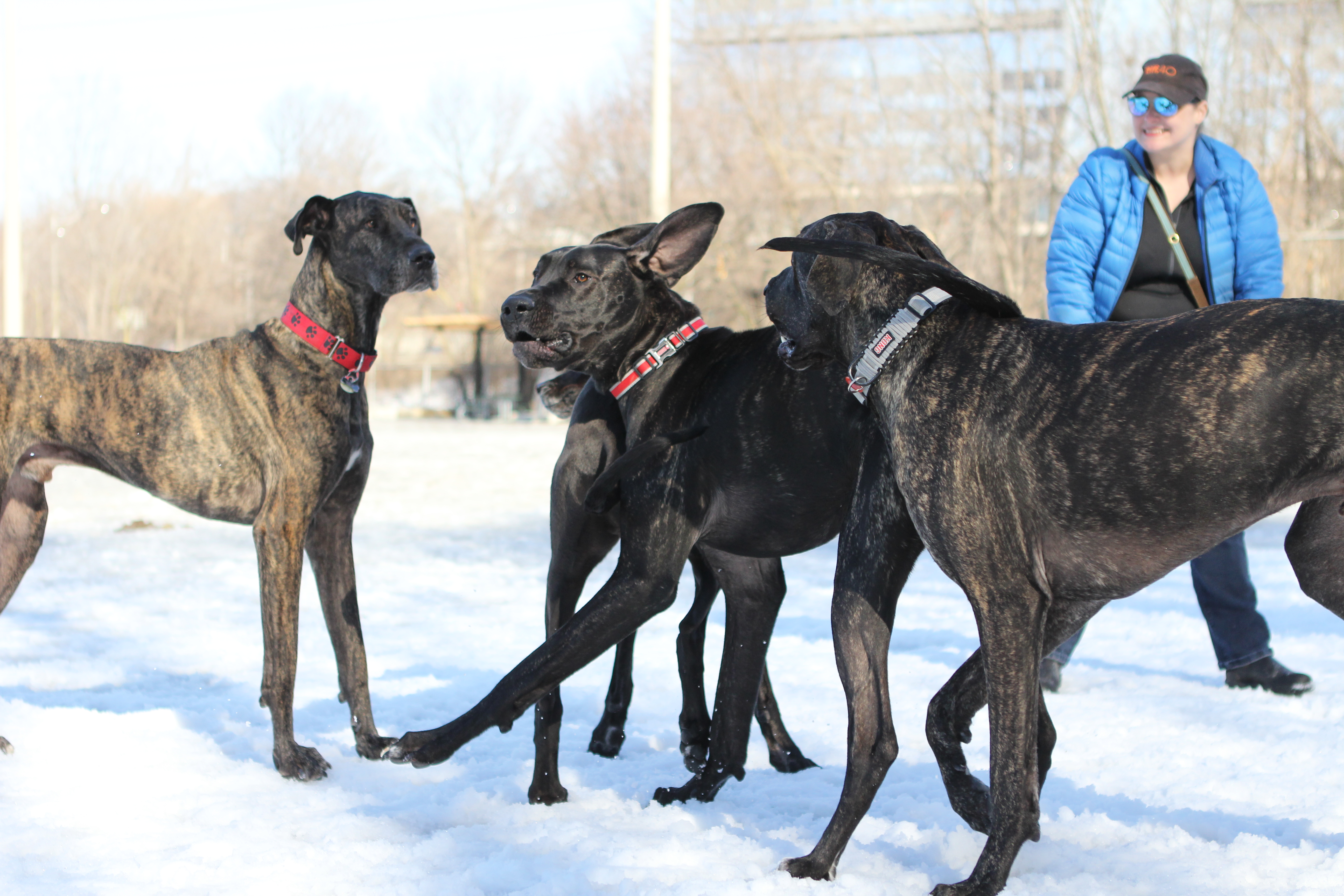 Guinness. We first heard about Guinness through GDRI due to an absolute travesty of a household. Guinness was one of four Great Danes living in a home with an abusive husband, a wife, and several children. The dogs were beaten, abused and starved. After the husband left, the family abandoned the Great Danes in the basement because they were upside-down on the mortgage. When a friend of the wife learned about this a month after the abandonment, she immediately went to house, broke in to rescue the 4, took them home and called GDRI for help. After time in the vet’s ICU, the four Danes (aged 1.5 and 3) went to four separate fosters, with Guinness going to Ontario.