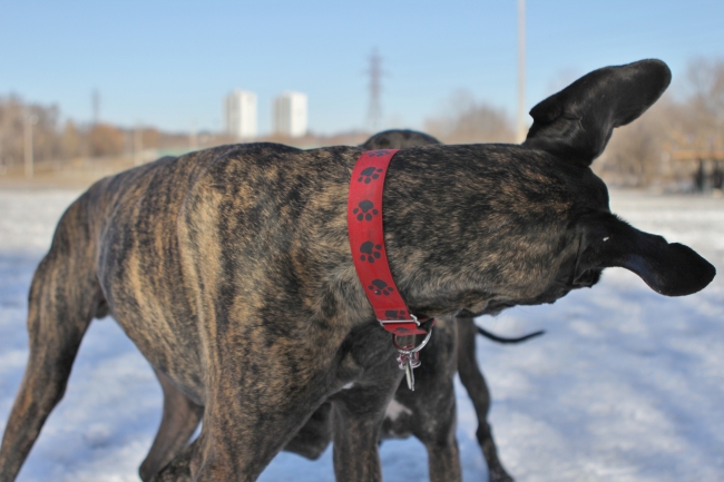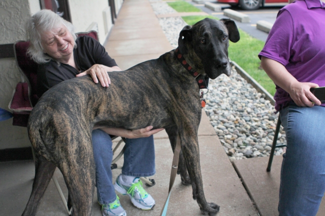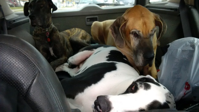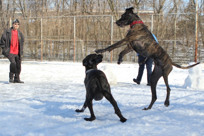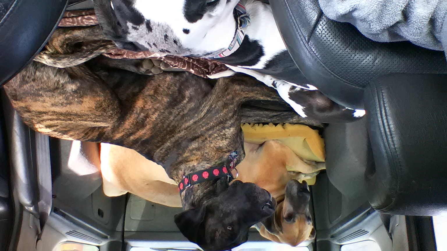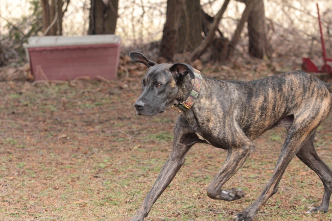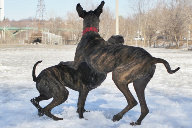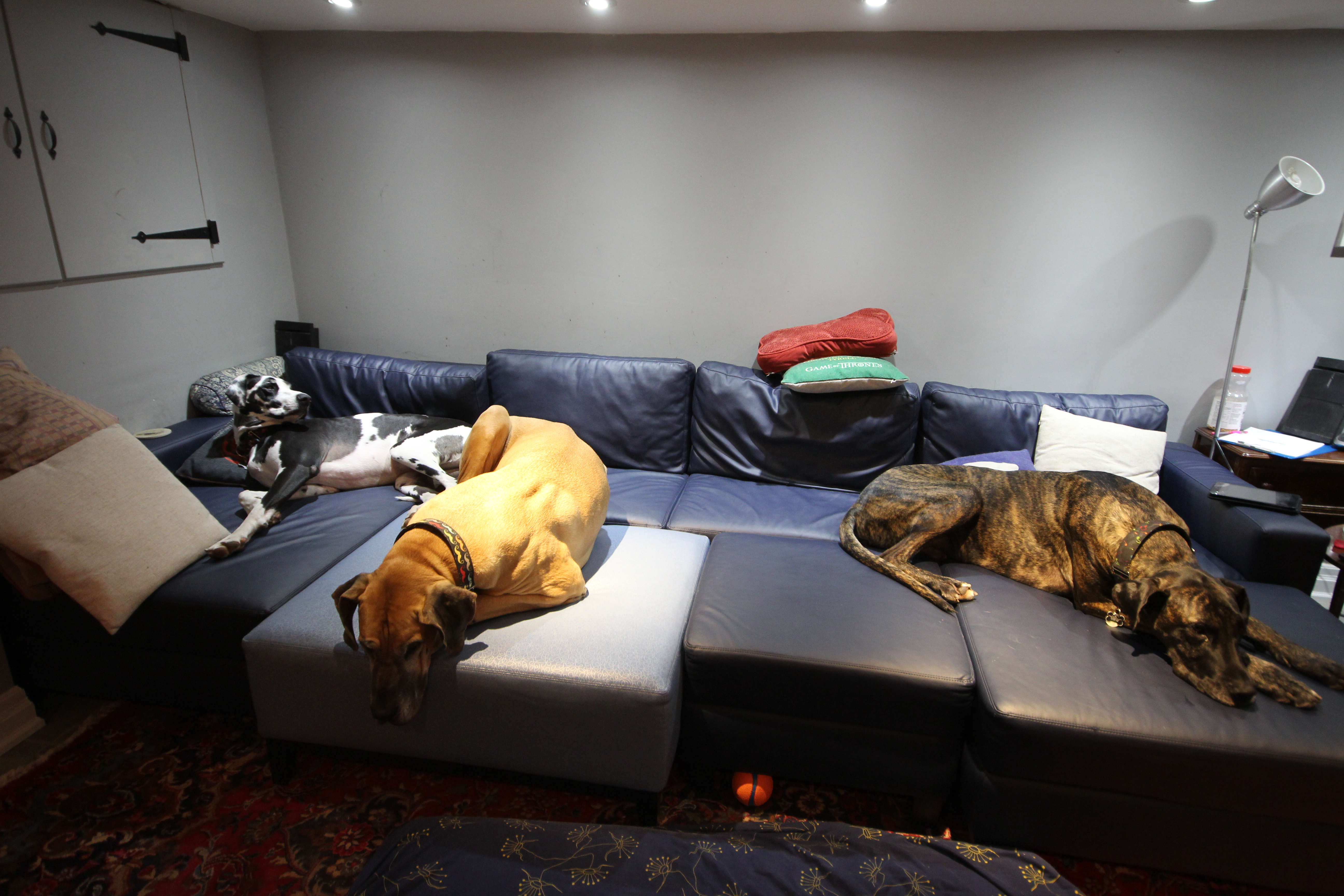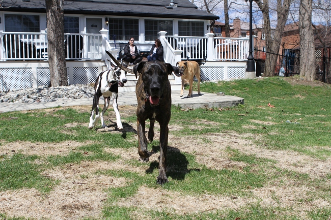 Guinness. We first heard about Guinness through GDRI due to an absolute travesty of a household. Guinness was one of four Great Danes living in a home with an abusive husband, a wife, and several children. The dogs were beaten, abused and starved. After the husband left, the family abandoned the Great Danes in the basement because they were upside-down on the mortgage. When a friend of the wife learned about this a month after the abandonment, she immediately went to house, broke in to rescue the 4, took them home and called GDRI for help. After time in the vet’s ICU, the four Danes (aged 1.5 and 3) went to four separate fosters, with Guinness going to Ontario.