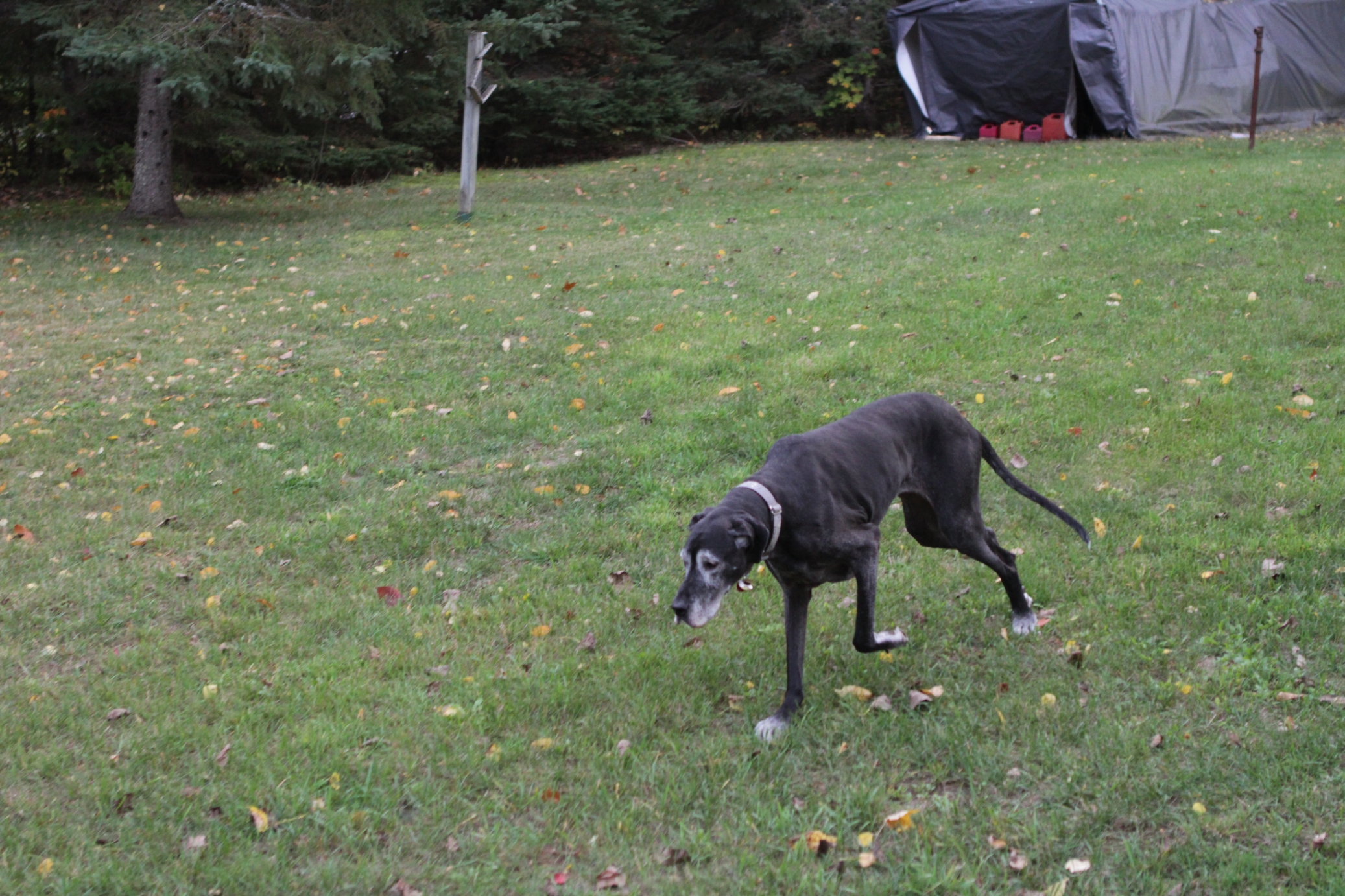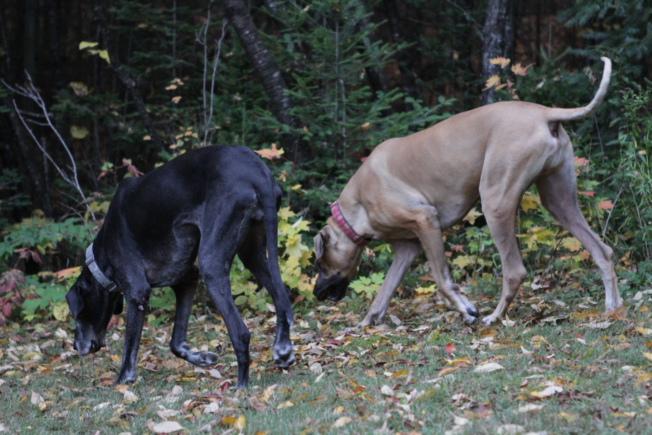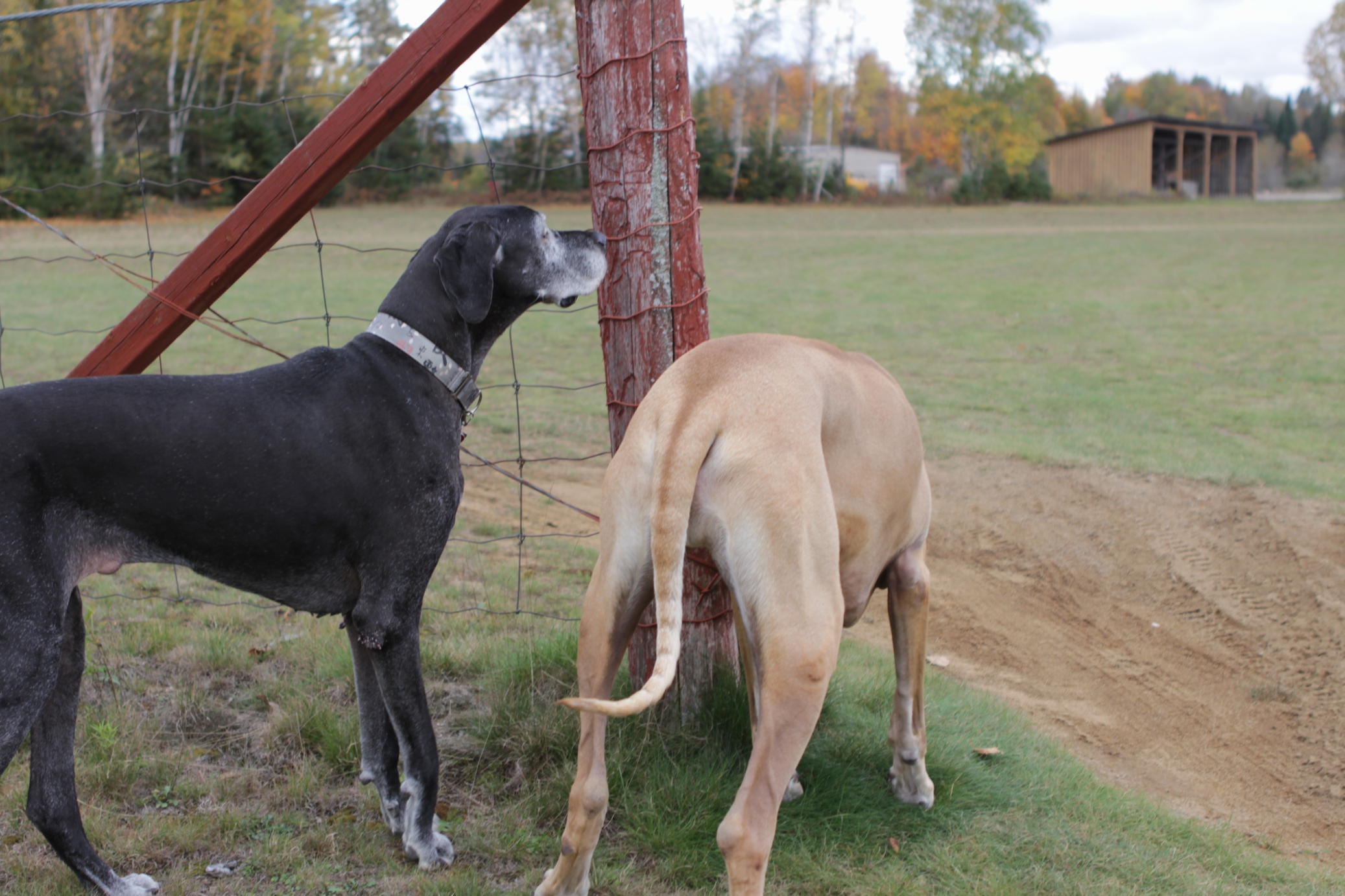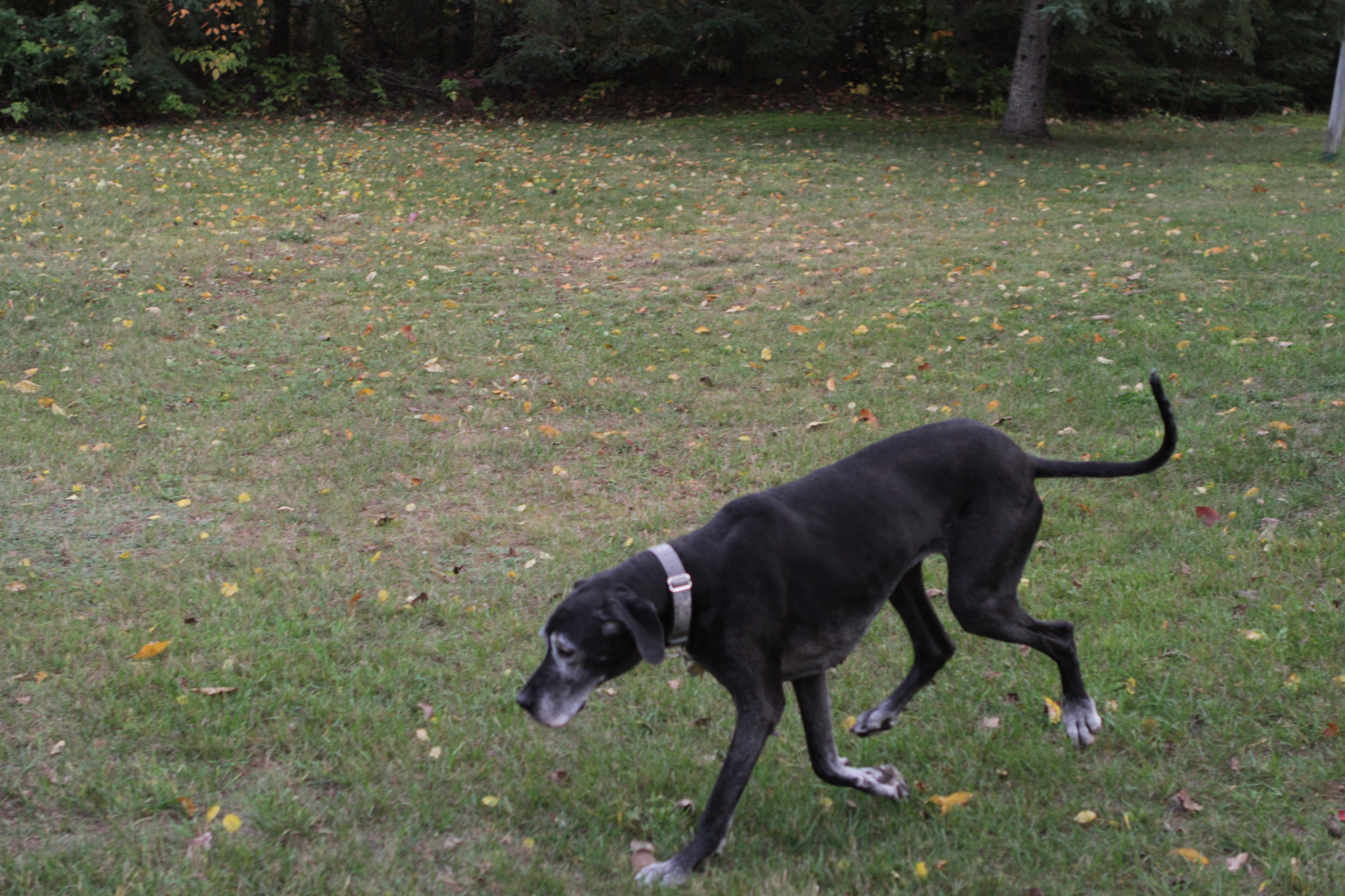 We met some nice people. For example, one time that I took Kitty out for a walk, we passed by a house where the owners have a big front yard, and two dogs. The two dogs were out there to check Kitty out, but there was a bush that was in-between us, and the owner said that they won't leave the property. He told me that they are friendly, so I walked back to his driveway, and we introduced ourselves to each other. Ken's two dogs were lots of fun. One was a lab, and the other a sheepdog. The sheepdog was the boss. She sat down from about 10 feet away, and watched as Kitty and I entered the area. Got up. Came closer. Slowly made her way up to me, and then sat down with a lean against my leg. Watched Kitty the whole time, with interest, but no fear or aggression. I finally stopped petting her, and we all just started meandering. To the back of his property, as it turned out. Kitty and the new dog-frineds sniffing up a storm. Kitty, taking a pea, seemed to please Ken in that way that a person recognizes a dog that is comfortable. It's too bad that I didn't have a camera with me.