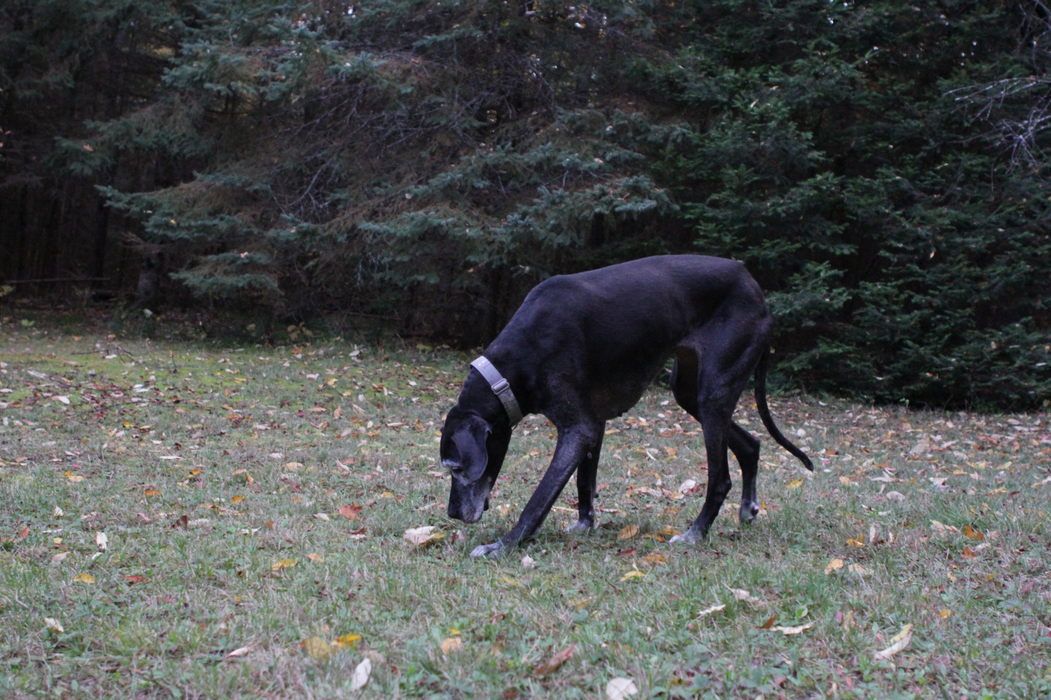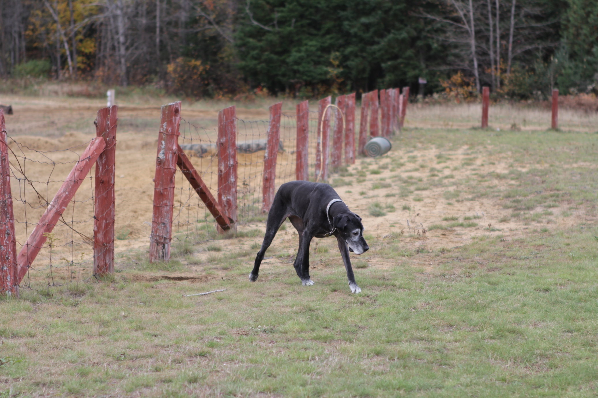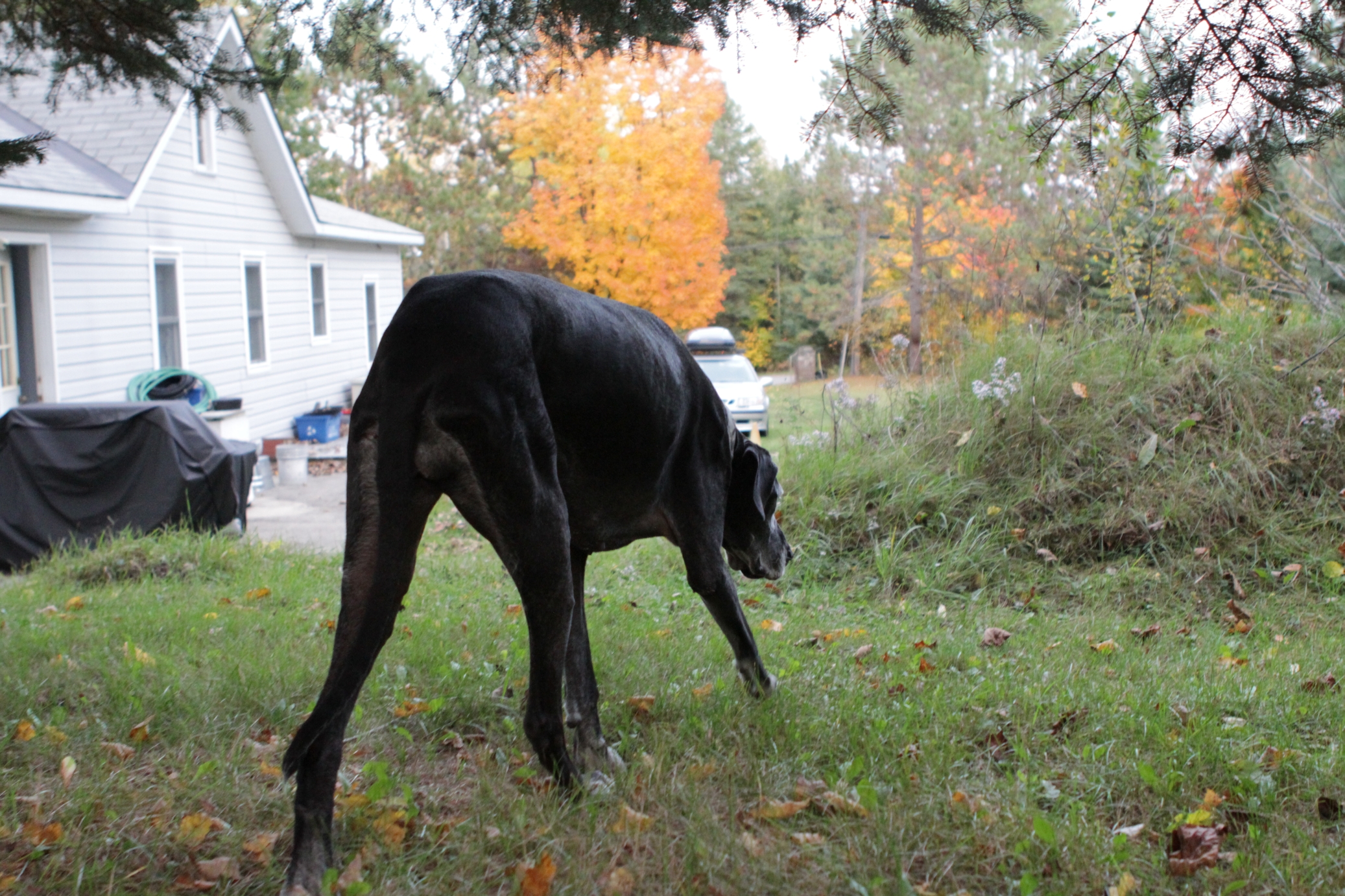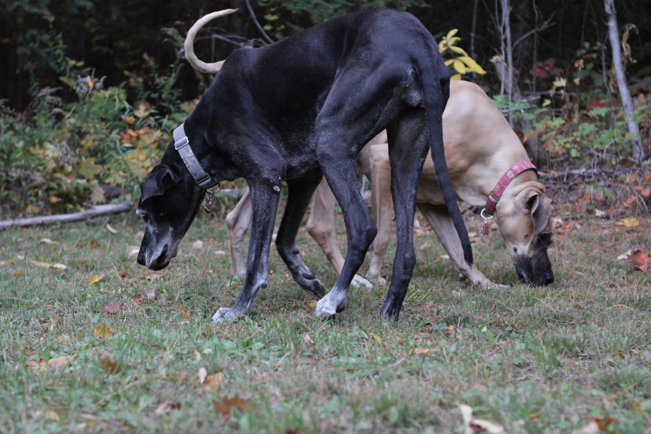 We met some nice people. For example, one time that I took Kitty out for a walk, we passed by a house where the owners have a big front yard, and two dogs. The two dogs were out there to check Kitty out, but there was a bush that was in-between us, and the owner said that they won't leave the property. He told me that they are friendly, so I walked back to his driveway, and we introduced ourselves to each other. Ken's two dogs were lots of fun. One was a lab, and the other a sheepdog. The sheepdog was the boss. She sat down from about 10 feet away, and watched as Kitty and I entered the area. Got up. Came closer. Slowly made her way up to me, and then sat down with a lean against my leg. Watched Kitty the whole time, with interest, but no fear or aggression. I finally stopped petting her, and we all just started meandering. To the back of his property, as it turned out. Kitty and the new dog-frineds sniffing up a storm. Kitty, taking a pea, seemed to please Ken in that way that a person recognizes a dog that is comfortable. It's too bad that I didn't have a camera with me.