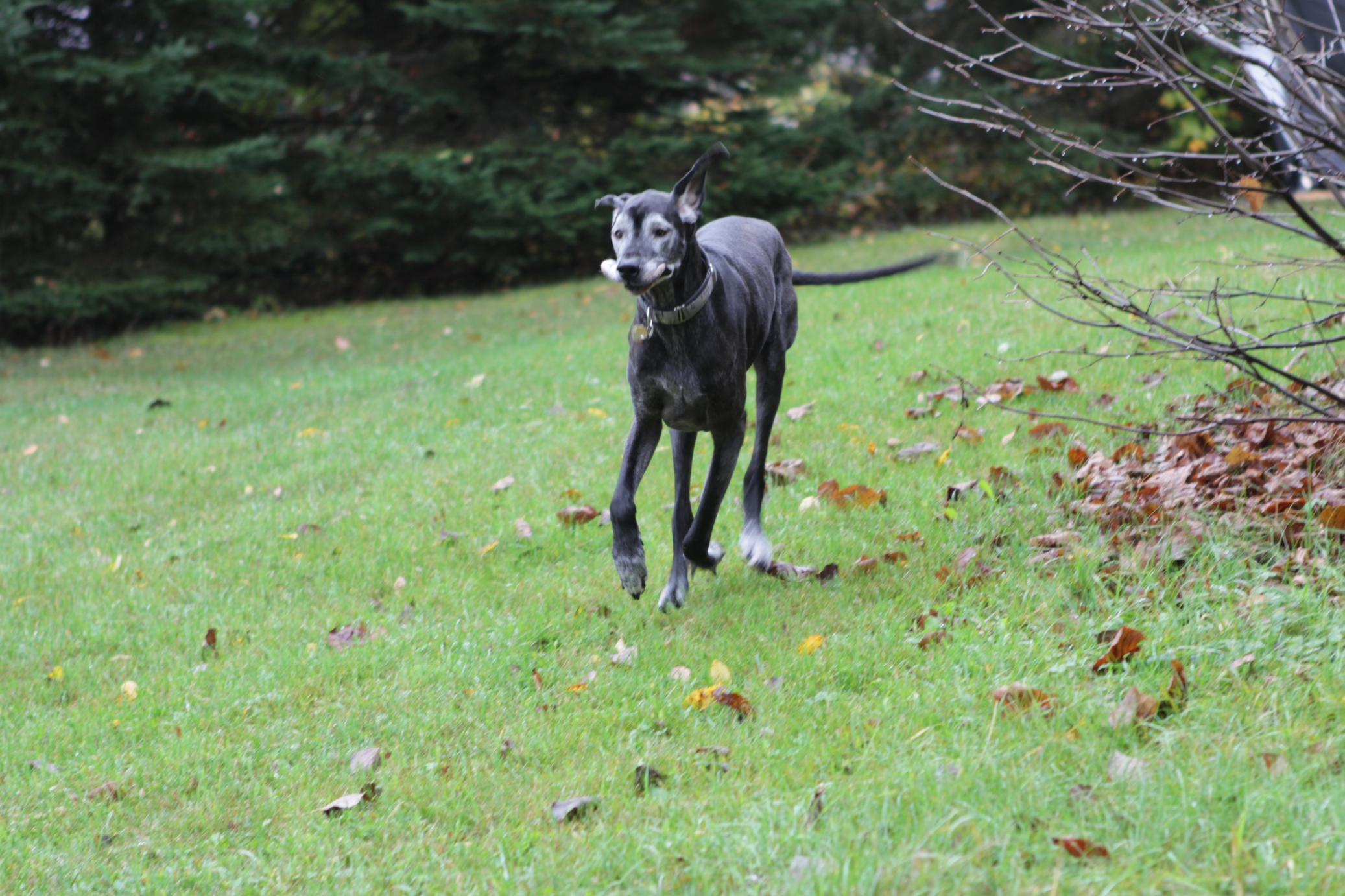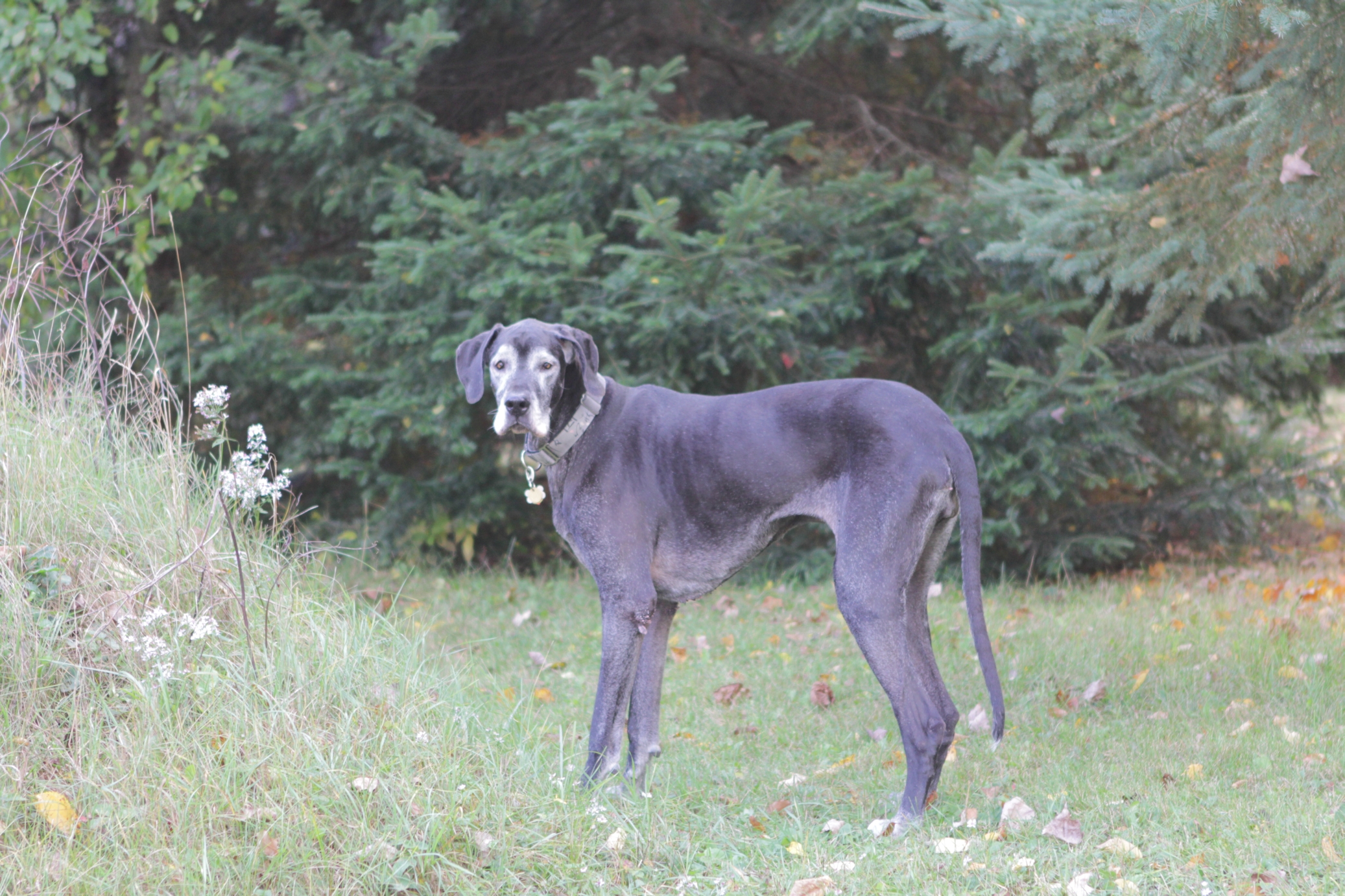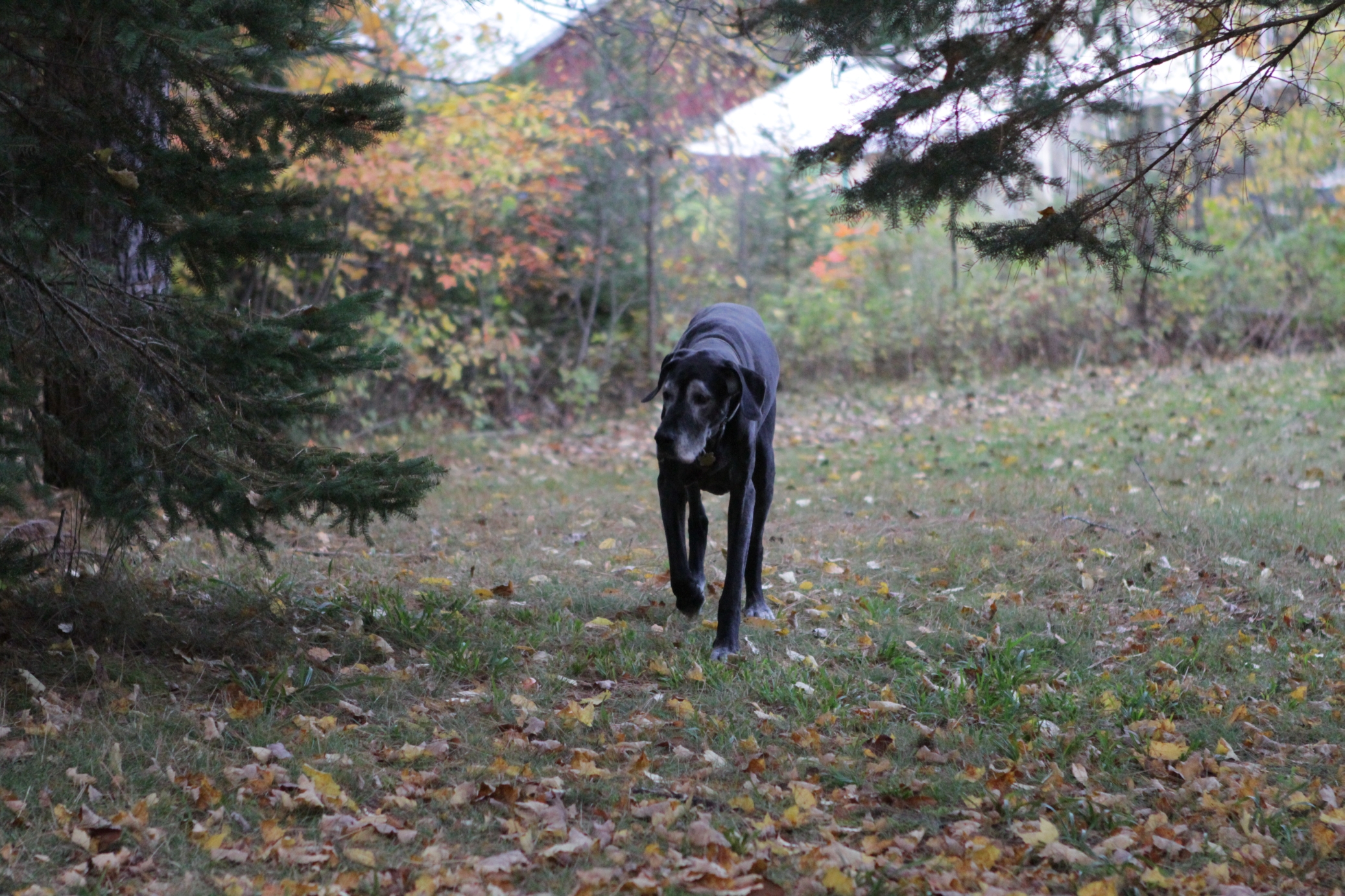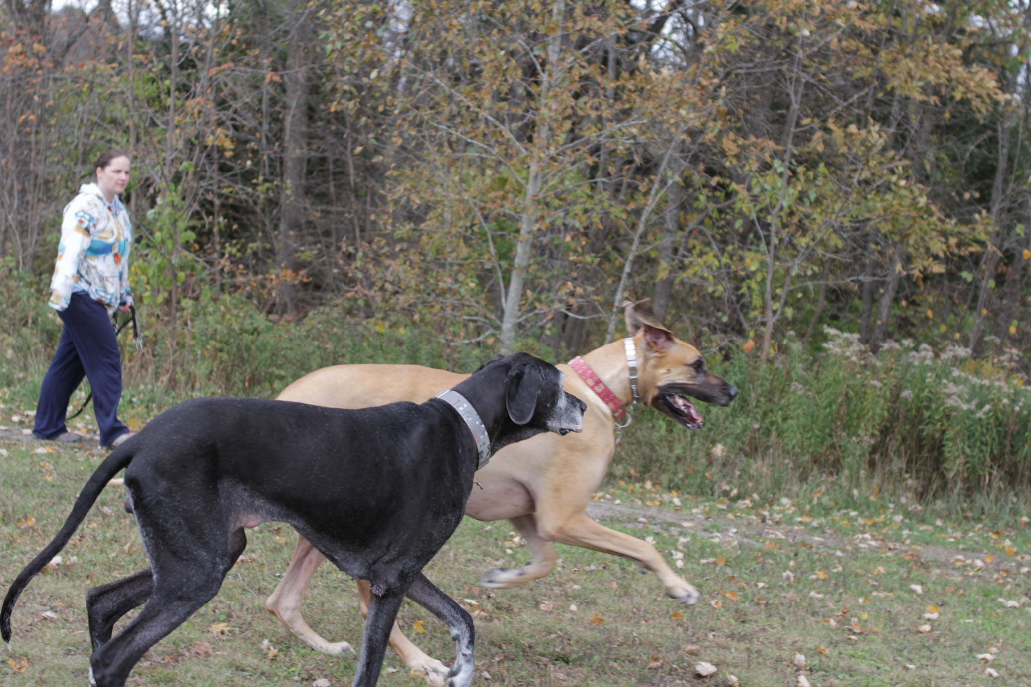 We met some nice people. For example, one time that I took Kitty out for a walk, we passed by a house where the owners have a big front yard, and two dogs. The two dogs were out there to check Kitty out, but there was a bush that was in-between us, and the owner said that they won't leave the property. He told me that they are friendly, so I walked back to his driveway, and we introduced ourselves to each other. Ken's two dogs were lots of fun. One was a lab, and the other a sheepdog. The sheepdog was the boss. She sat down from about 10 feet away, and watched as Kitty and I entered the area. Got up. Came closer. Slowly made her way up to me, and then sat down with a lean against my leg. Watched Kitty the whole time, with interest, but no fear or aggression. I finally stopped petting her, and we all just started meandering. To the back of his property, as it turned out. Kitty and the new dog-frineds sniffing up a storm. Kitty, taking a pea, seemed to please Ken in that way that a person recognizes a dog that is comfortable. It's too bad that I didn't have a camera with me.