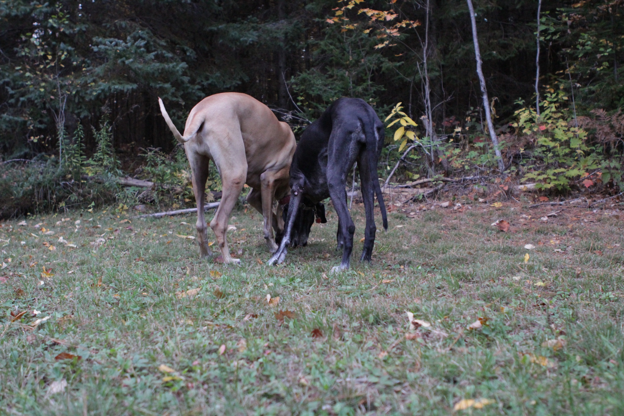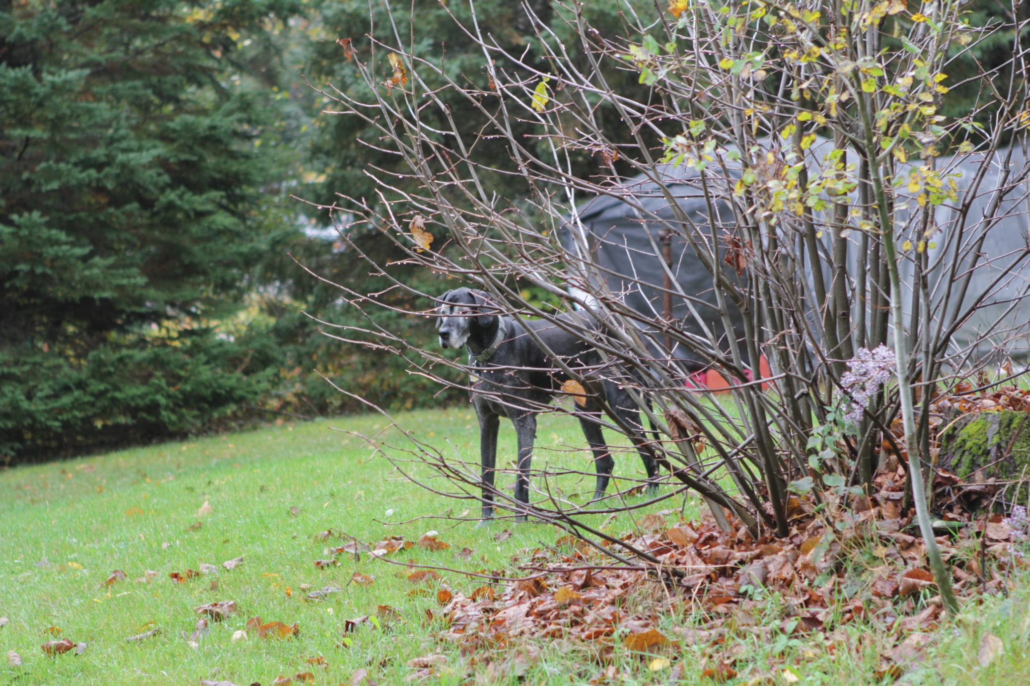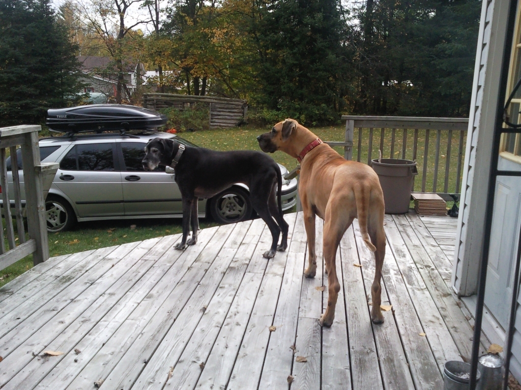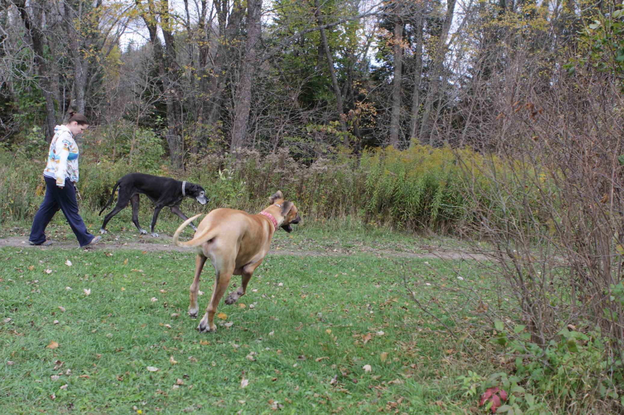 Ken told me a story about his neighbour, who apparently is so unhappy about dogs next door, that he lures them to his property, because there are only trees and brush separating, no fence. Then he calls the animal services to take the dog away. Which means Ken then has to drive about an hour to pick up the innocent dog. Ken tried calling the police once, who agreed that by following the tracks in the snow, the neighbour appears to be bringing the dogs right to him, but can't lay any kind of charge. I suppose that it goes to show that people are people, no matter where they live, and how close together they are. Ken and his neighbour have a good 50m or so between houses, so the dogs really had to be lured to get them over, Ken believes. And I can't help but agree, based on the fact that even though Kitty was walking by the front of the yard, the dogs wouldn't get within 3m of the property line. Or Kitty, I guess. But they resisted the urge to come to the dog to meet them.