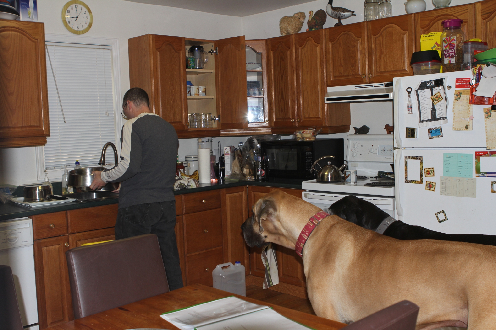 We went inside so that Ken's wife could meet Kitty. Ken's wife, whose name eludes me, was very pleased to have been woken up from her nap to meet Kitty. Kitty also met the household cat, and the two of them got along just fine. I'm glad that our dogs can happily co-exist with dogs. We miss our cat Hepplewhite.