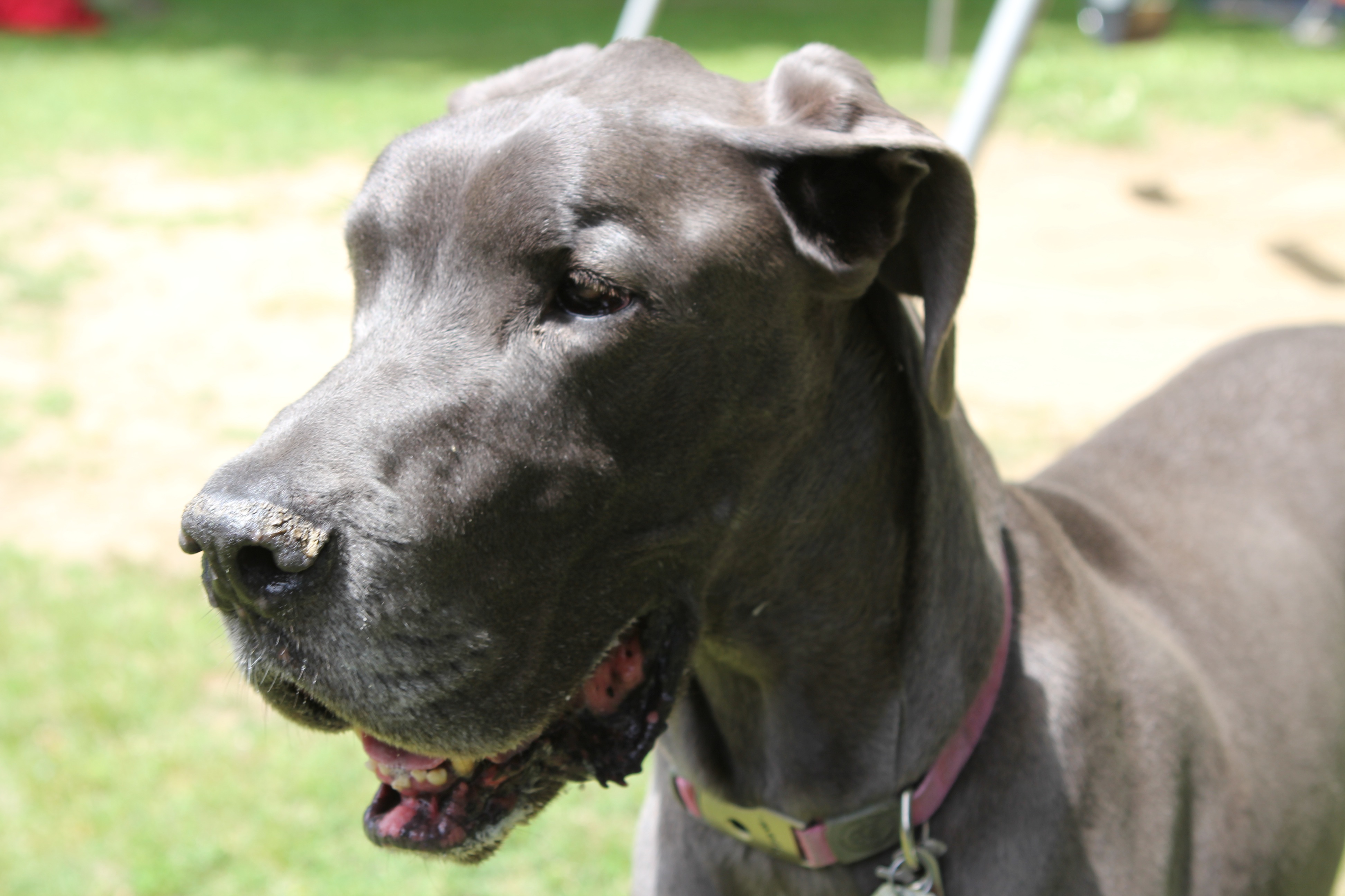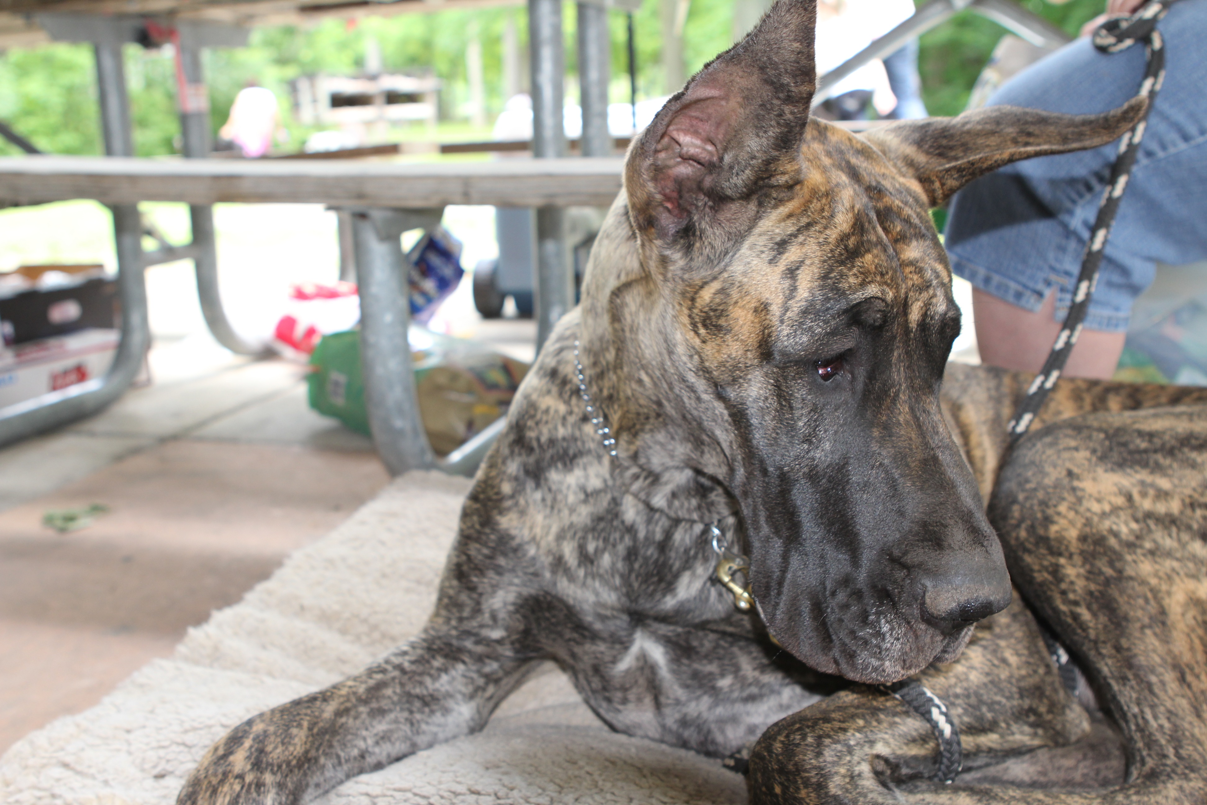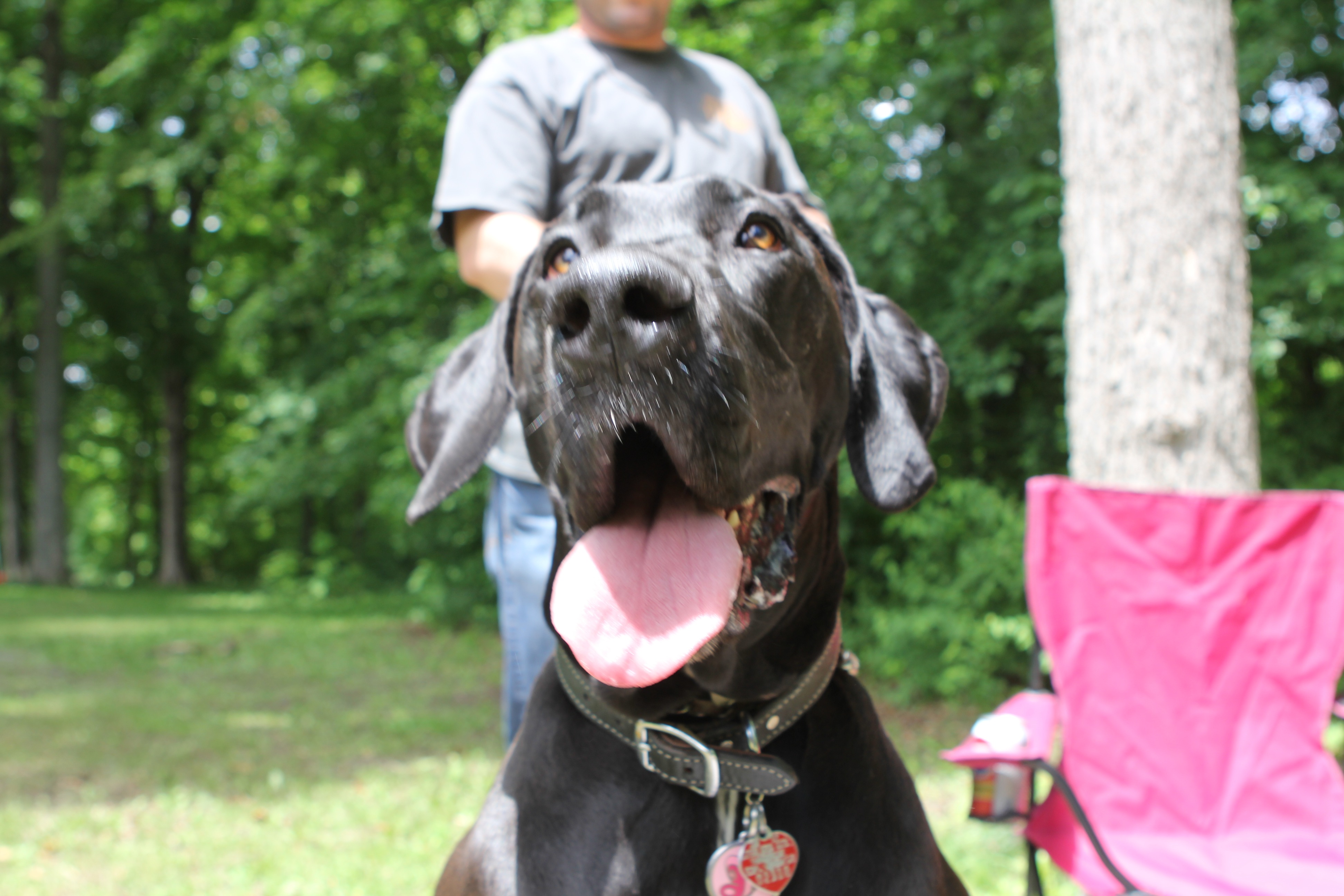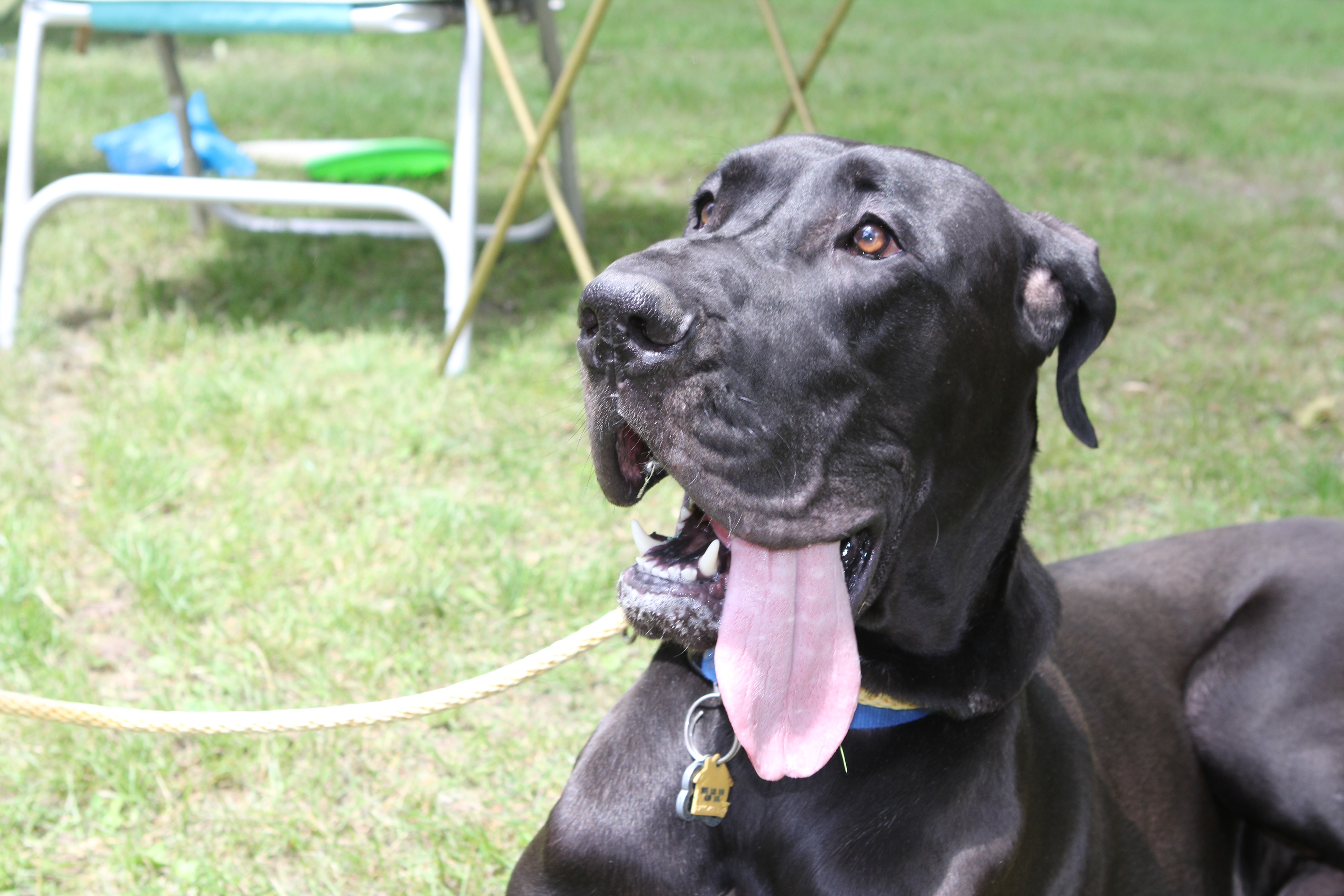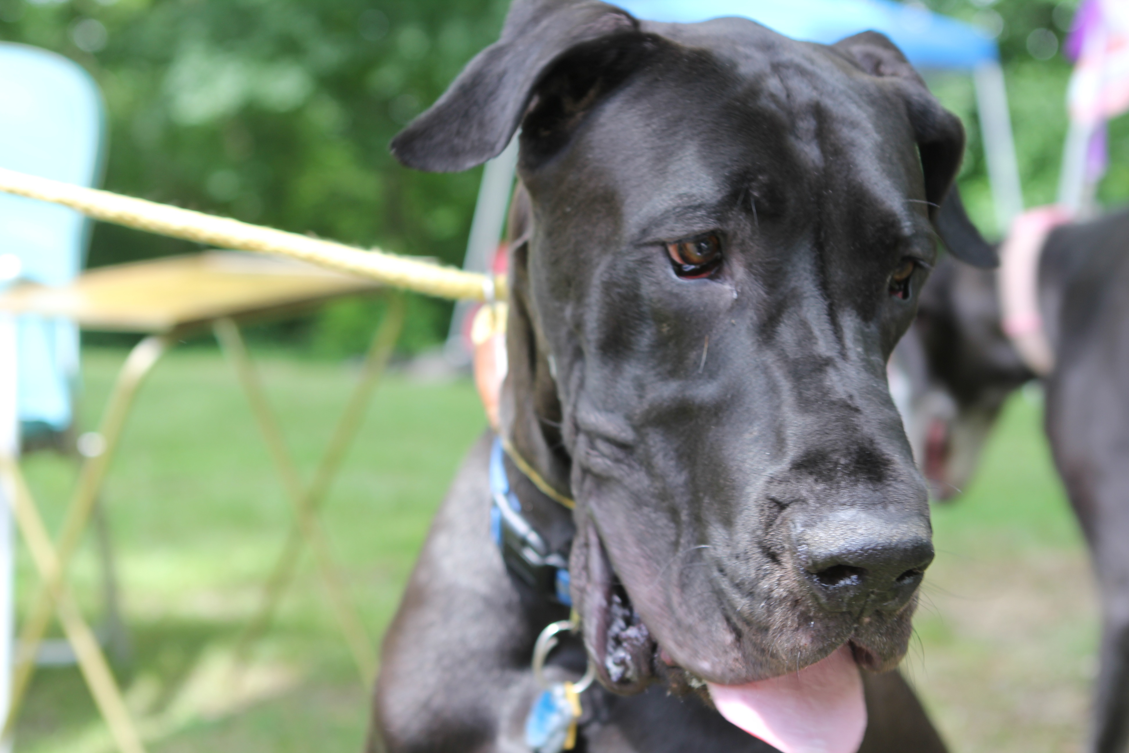 Every year, Great Dane Rescue, Inc. hosts the GDRI Fun Day. In 2013, it was held on Saturday, June 8. Sarah decided to take our new dane, Polka. As an aside, I maintain that Polka could have been named "Ribbit". He hops around like a frog, and that tongue of his just darts out at you like a frog hunting it's meals. Anyhow, Sarah tried (she made me write that) to take pictures of all of the dogs there, though we seem to have lost the names of a few. If you happen to know an unnamed dog's name, please email Danforth, who will correct it, promptly. They are listed in alphabetical order.