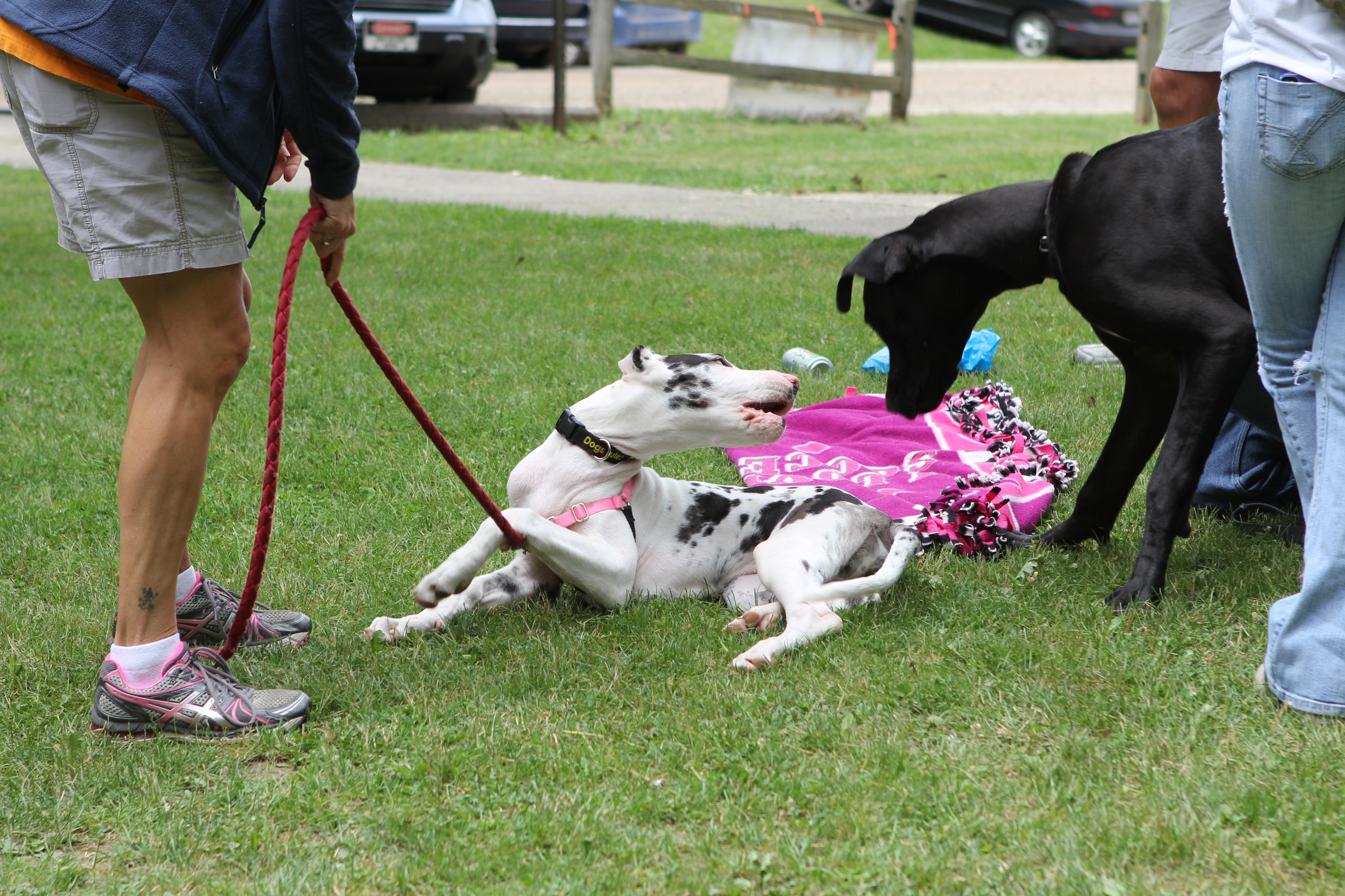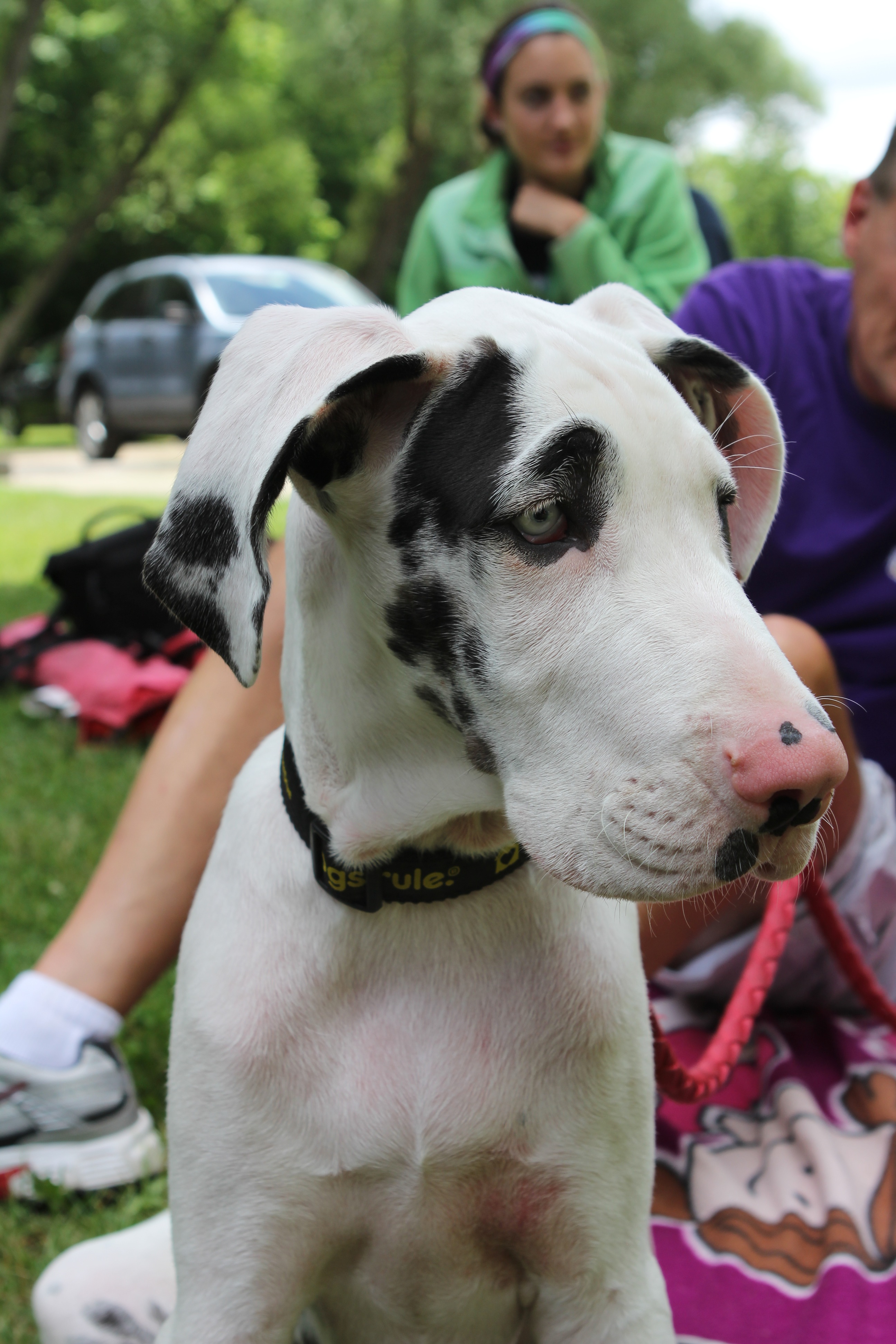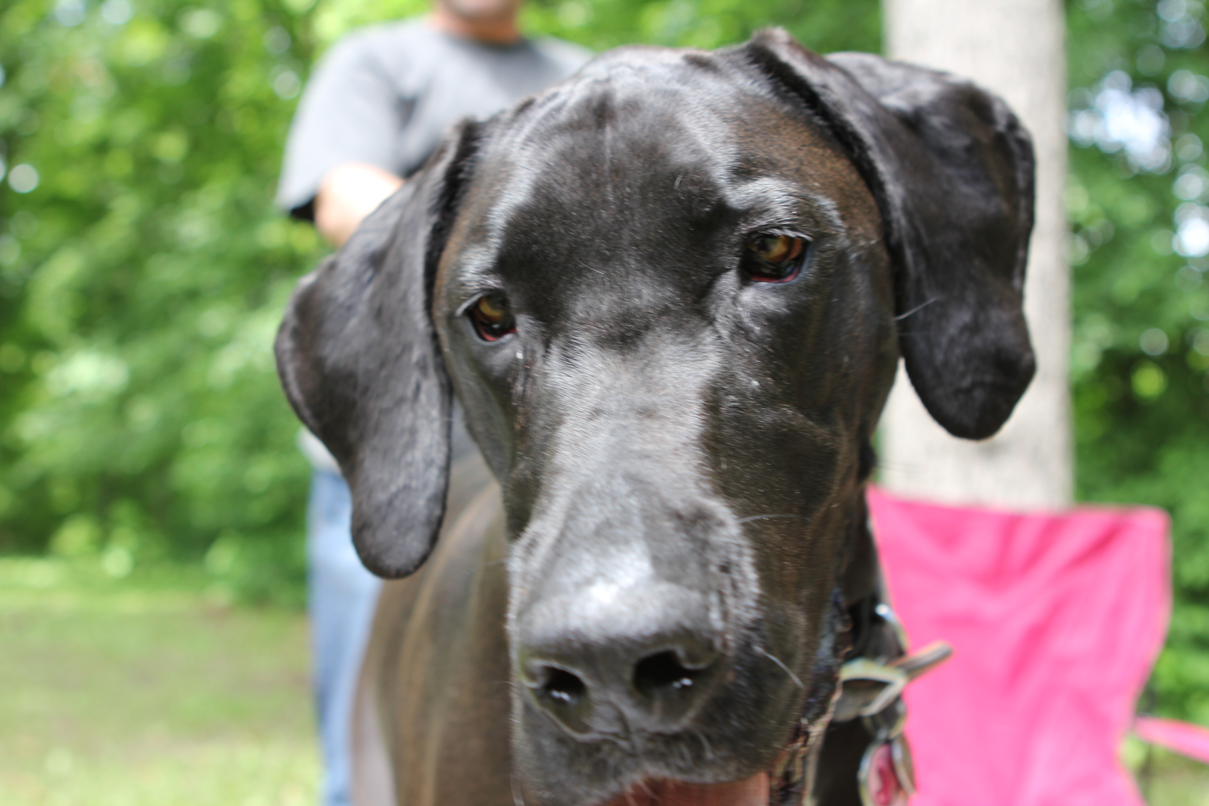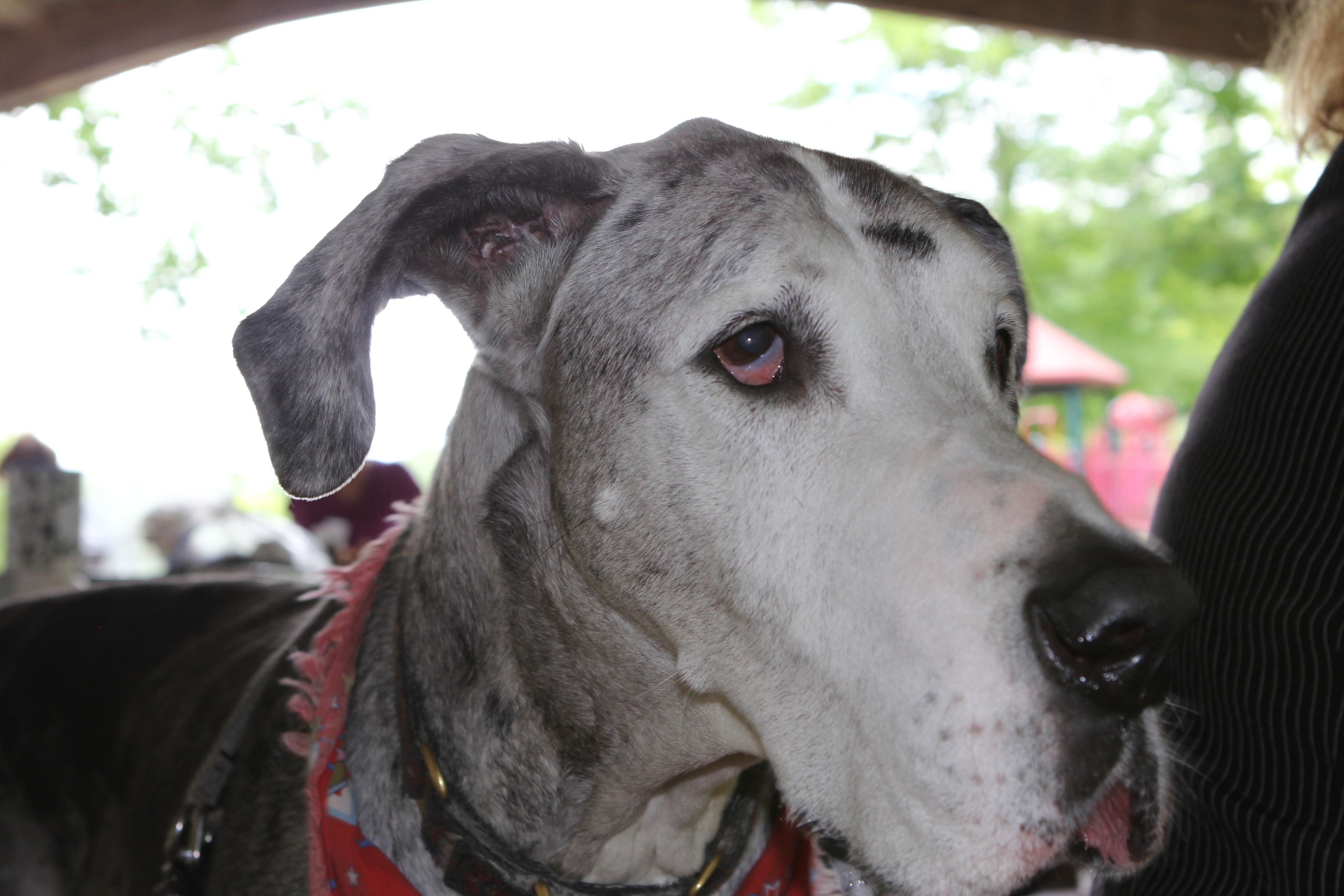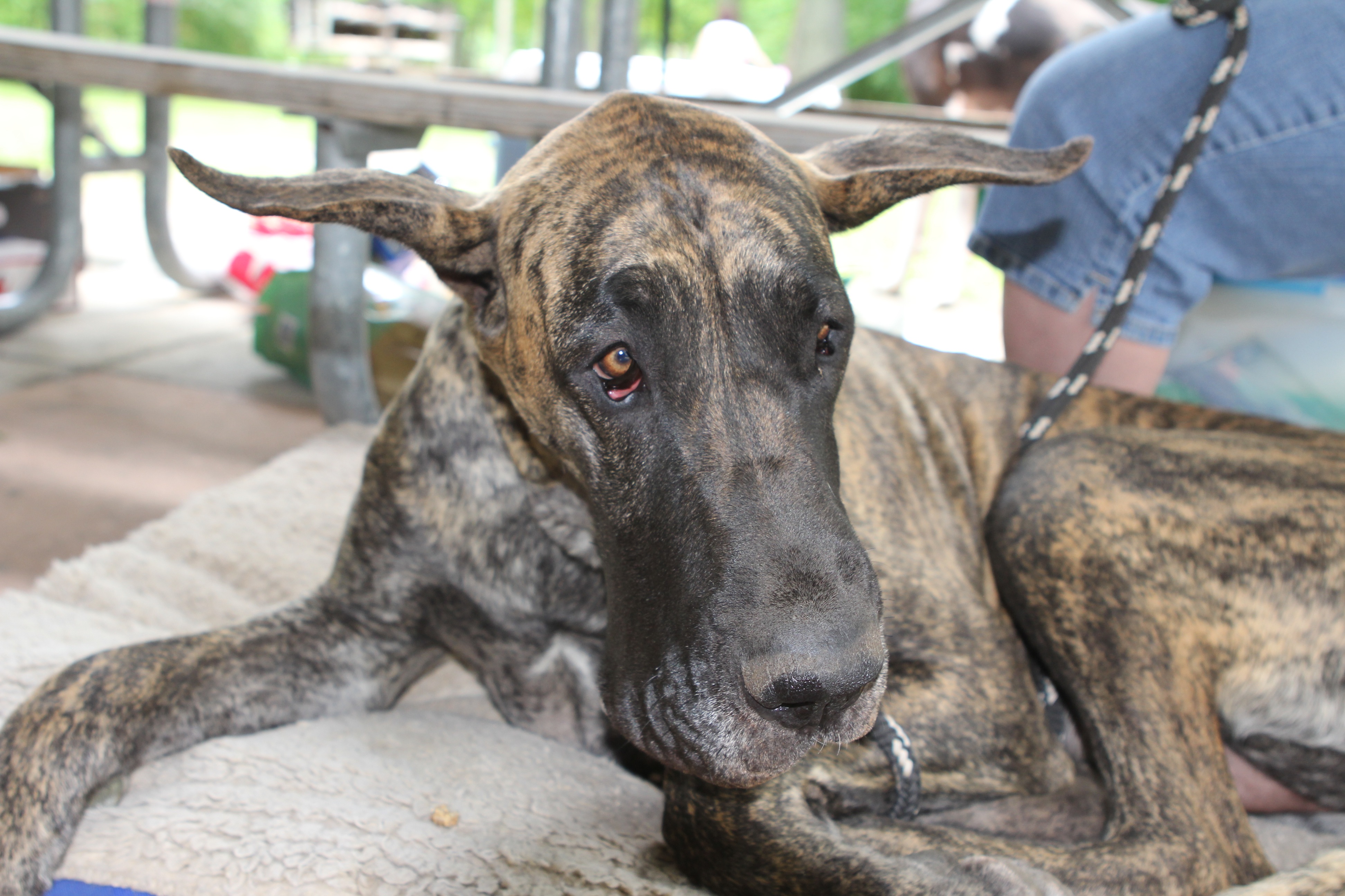 Every year, Great Dane Rescue, Inc. hosts the GDRI Fun Day. In 2013, it was held on Saturday, June 8. Sarah decided to take our new dane, Polka. As an aside, I maintain that Polka could have been named "Ribbit". He hops around like a frog, and that tongue of his just darts out at you like a frog hunting it's meals. Anyhow, Sarah tried (she made me write that) to take pictures of all of the dogs there, though we seem to have lost the names of a few. If you happen to know an unnamed dog's name, please email Danforth, who will correct it, promptly. They are listed in alphabetical order.