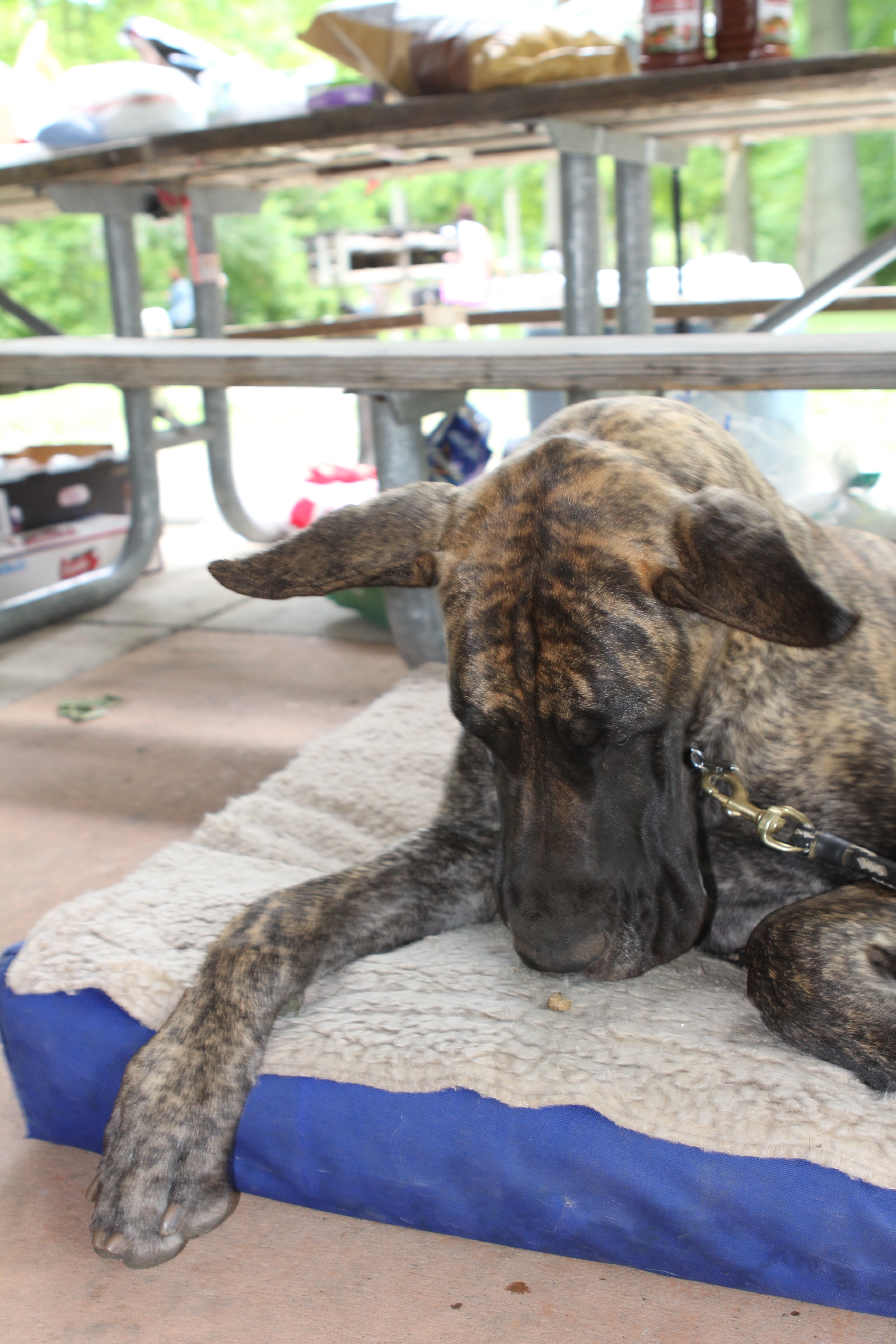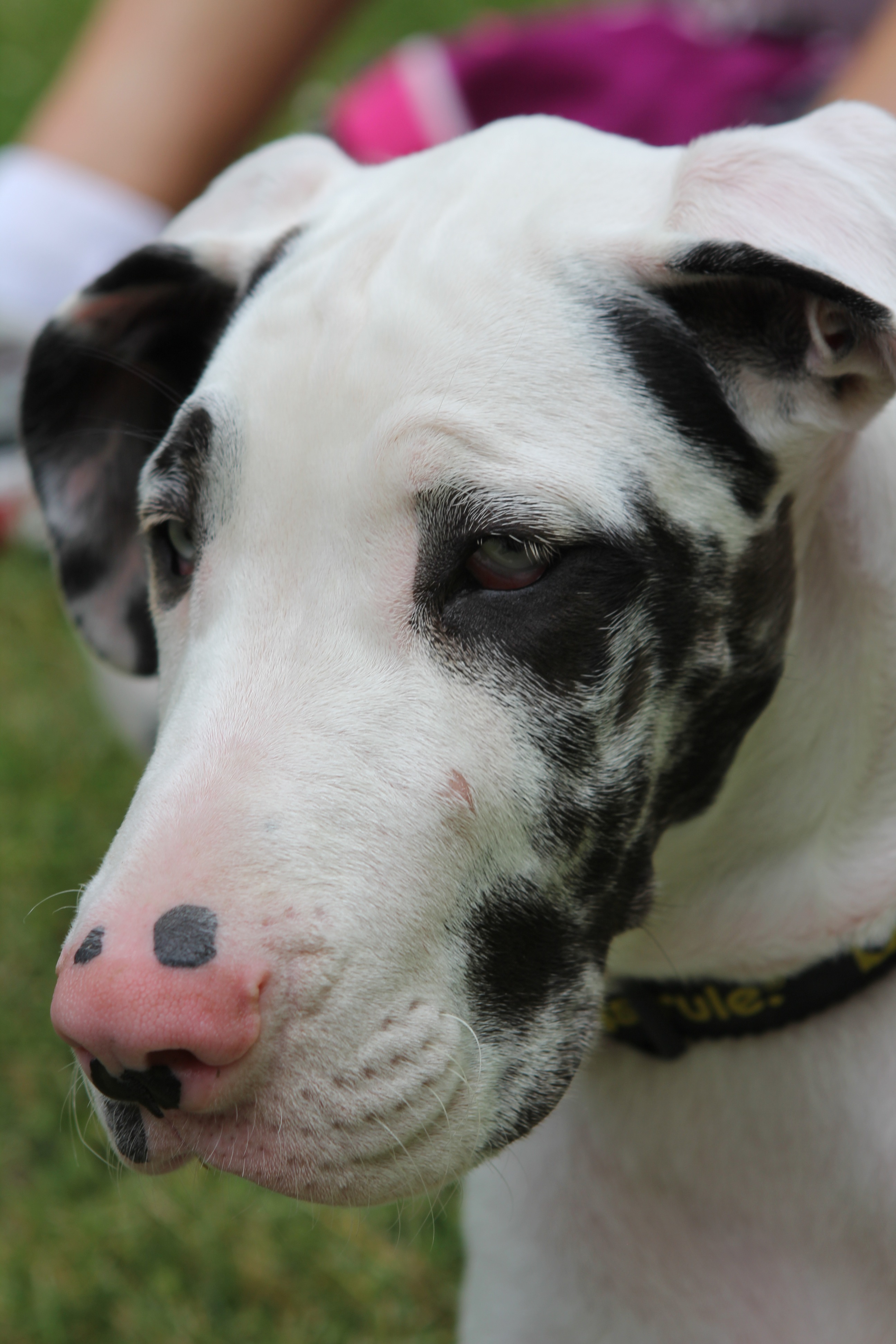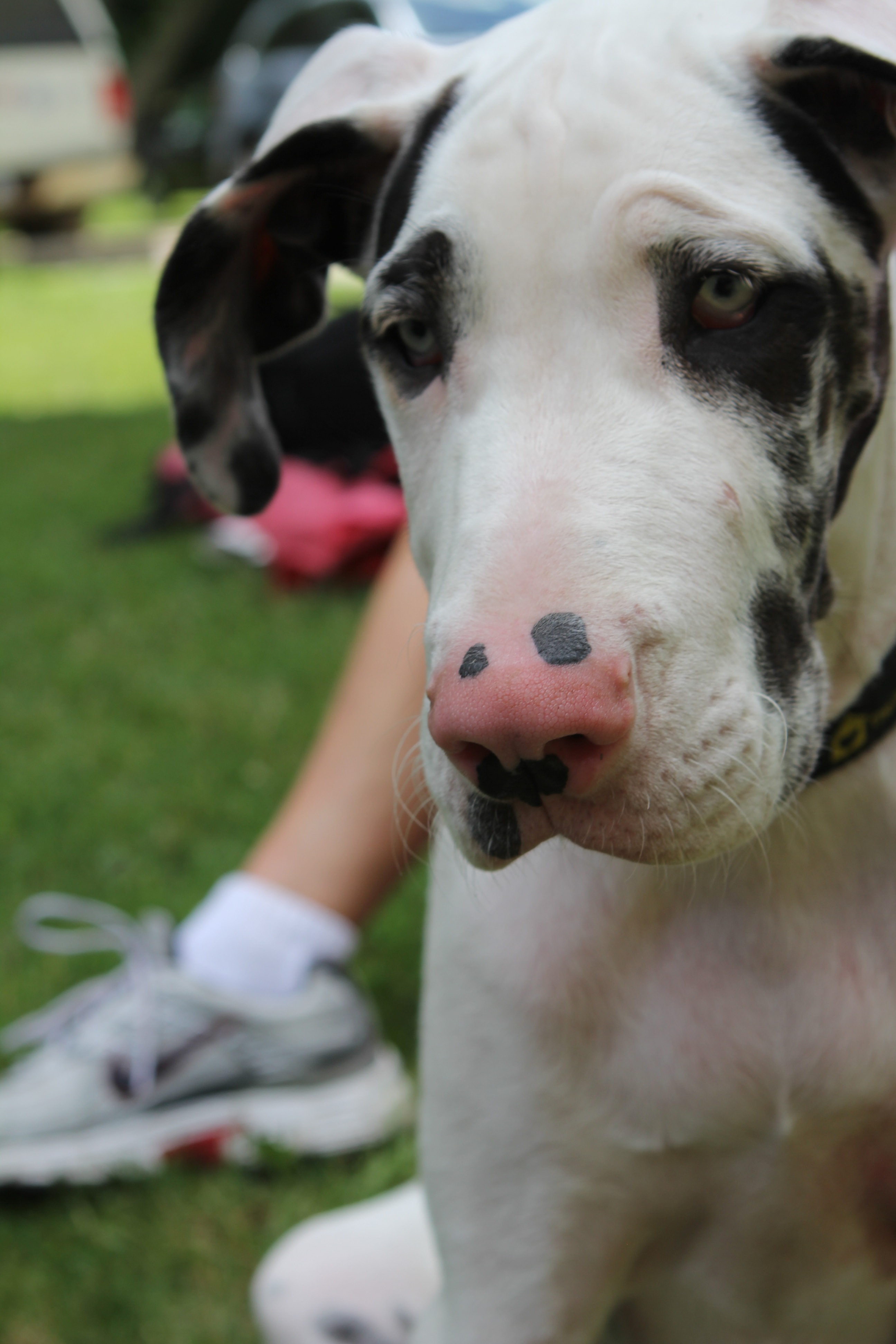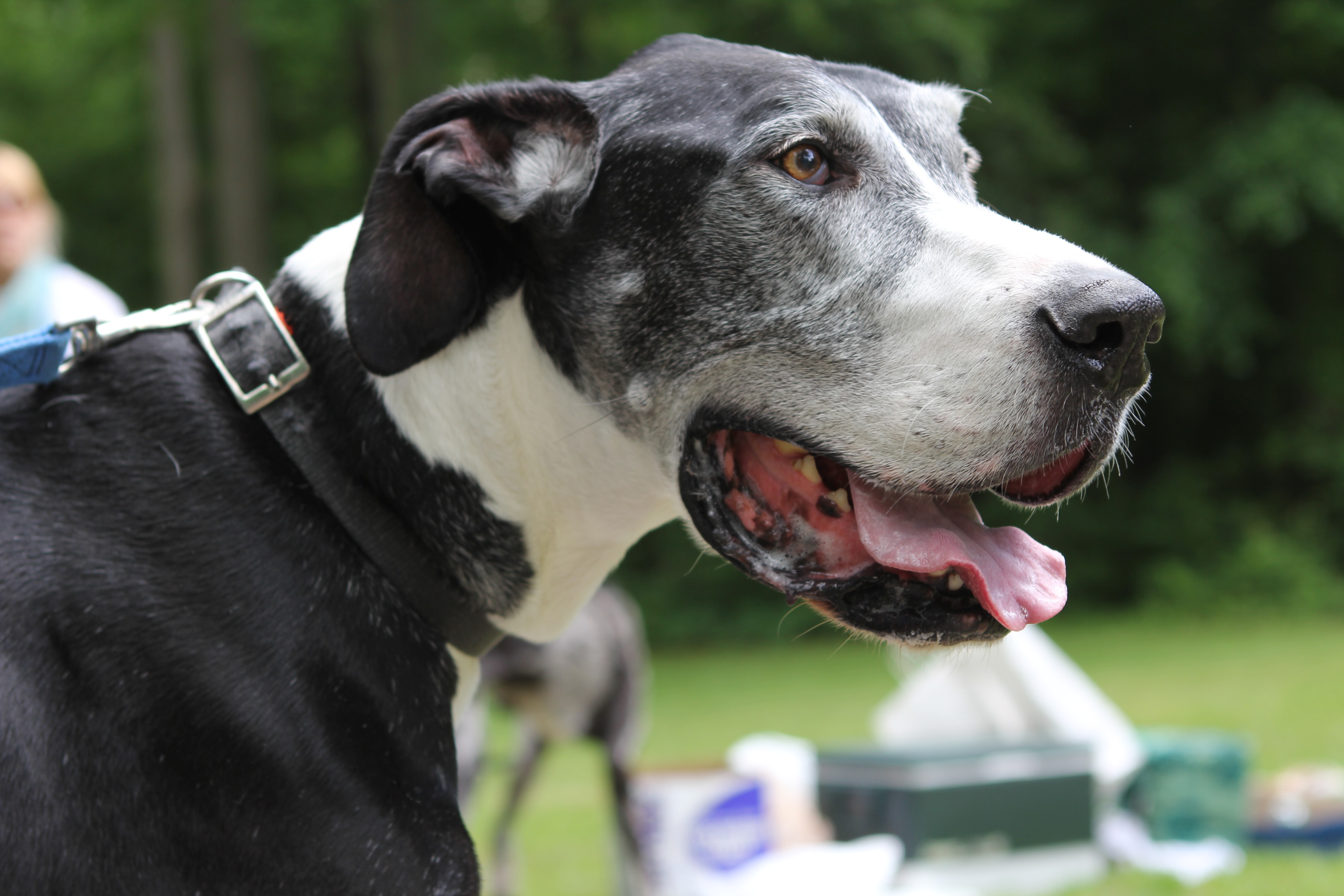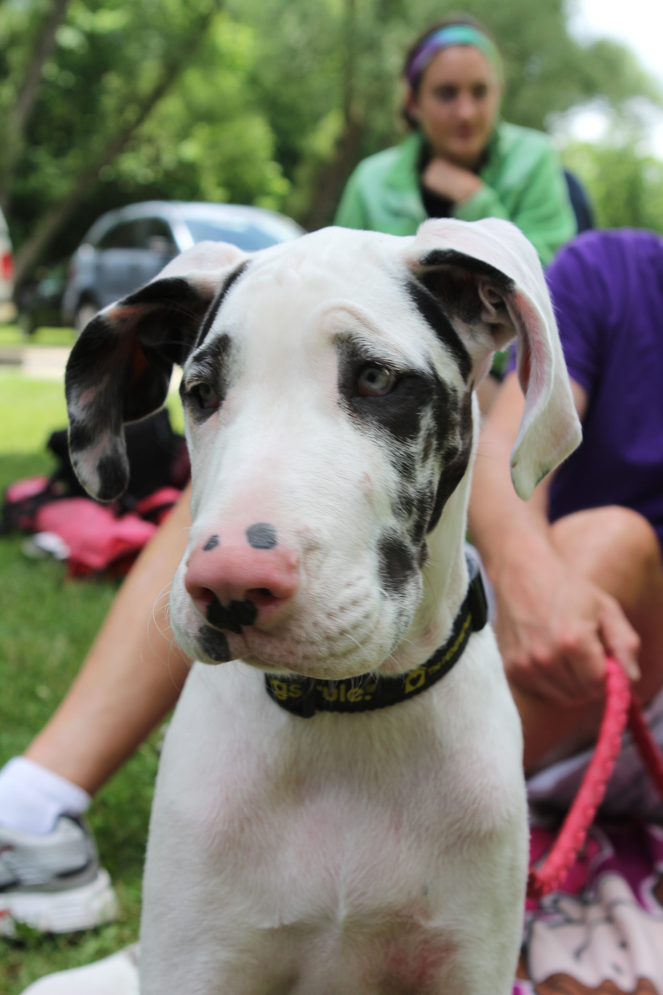Every year, Great Dane Rescue, Inc. hosts the GDRI Fun Day. In 2013, it was held on Saturday, June 8. Sarah decided to take our new dane, Polka. As an aside, I maintain that Polka could have been named "Ribbit". He hops around like a frog, and that tongue of his just darts out at you like a frog hunting it's meals. Anyhow, Sarah tried (she made me write that) to take pictures of all of the dogs there, though we seem to have lost the names of a few. If you happen to know an unnamed dog's name, please email Danforth, who will correct it, promptly. They are listed in alphabetical order.