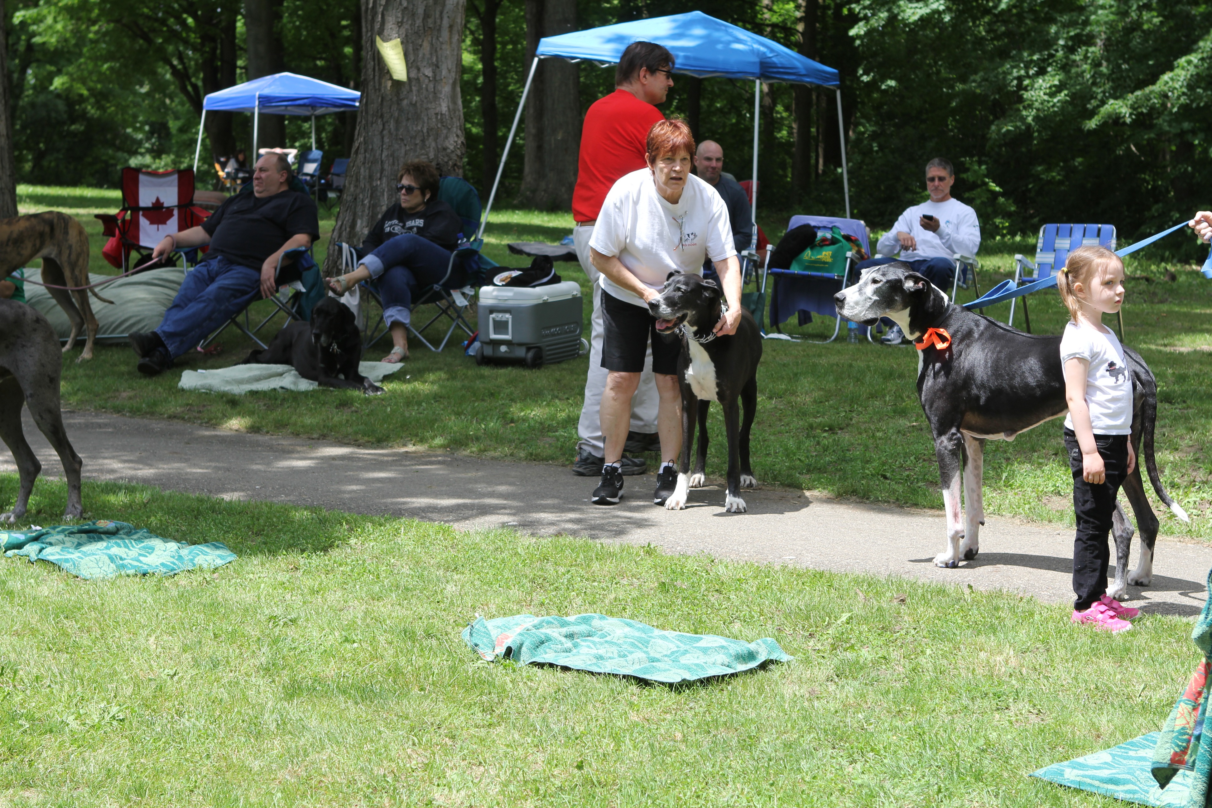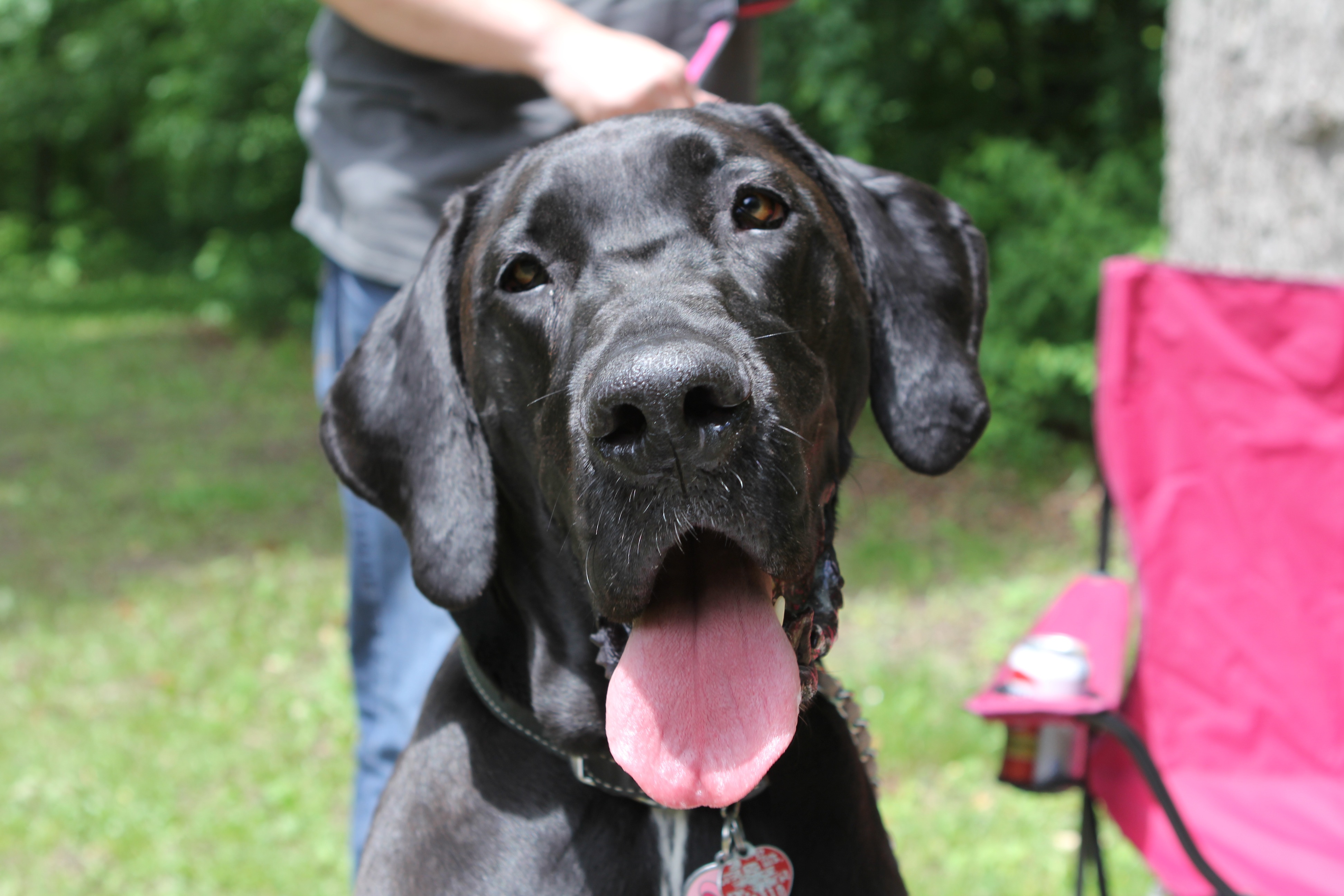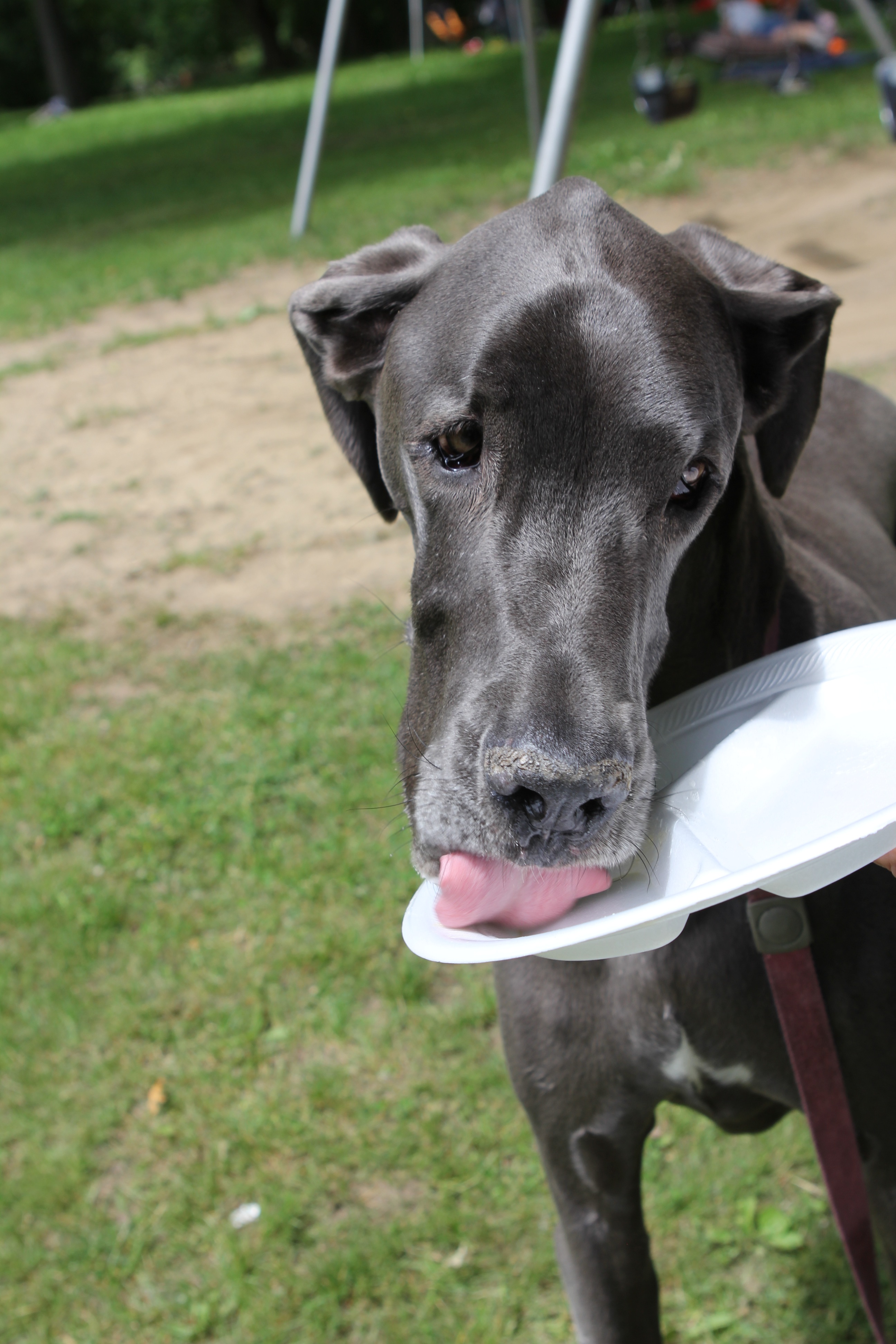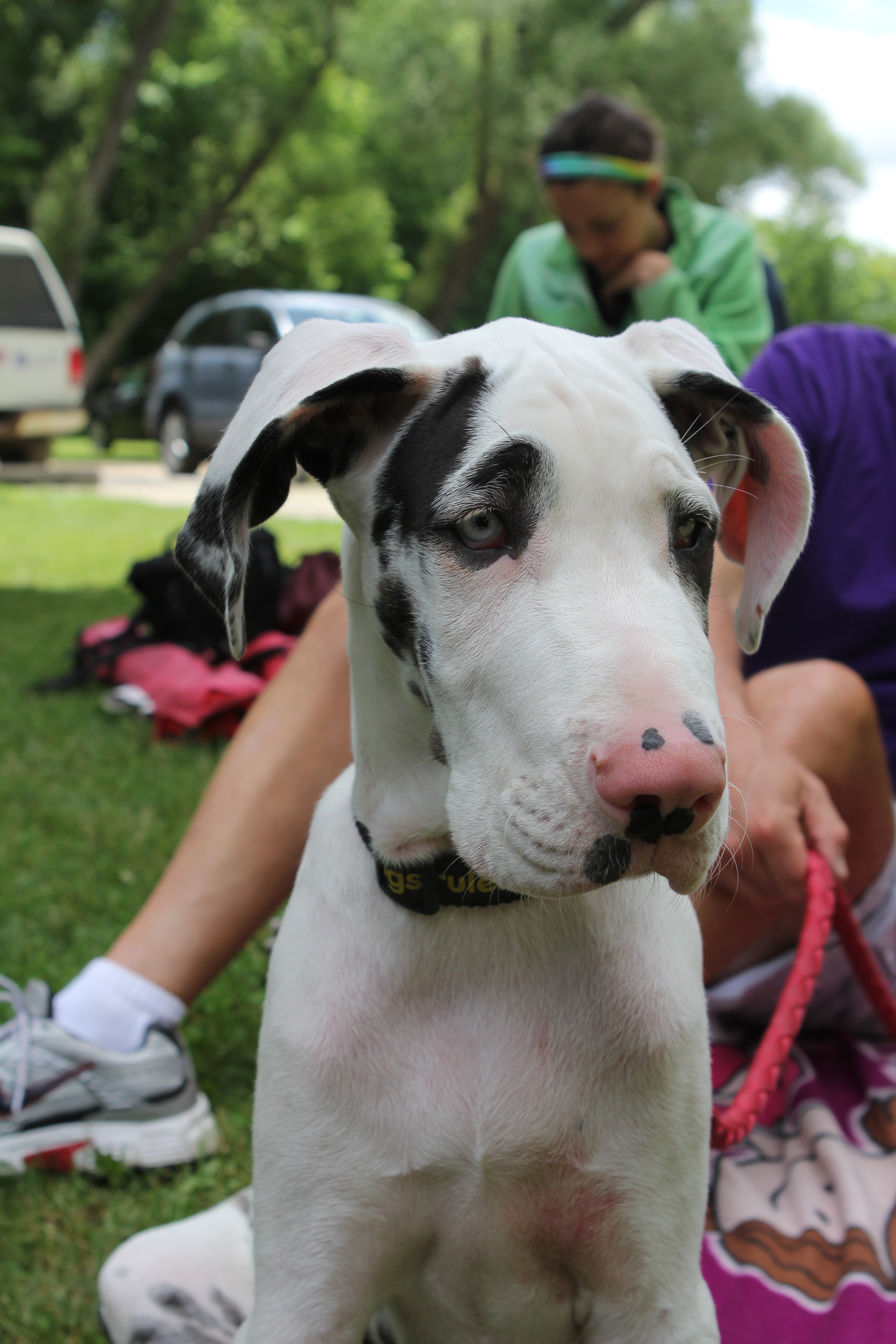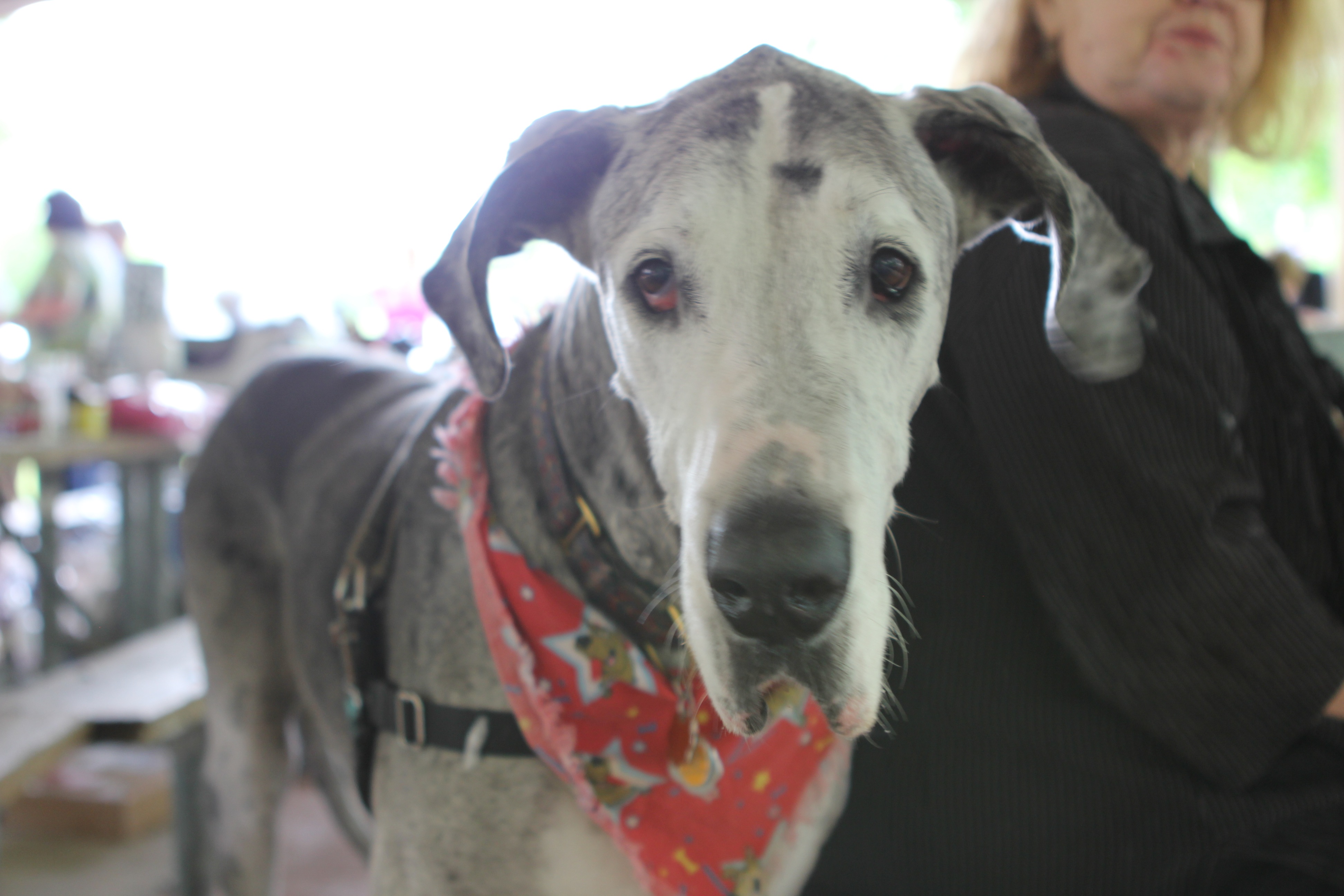 Every year, Great Dane Rescue, Inc. hosts the GDRI Fun Day. In 2013, it was held on Saturday, June 8. Sarah decided to take our new dane, Polka. As an aside, I maintain that Polka could have been named "Ribbit". He hops around like a frog, and that tongue of his just darts out at you like a frog hunting it's meals. Anyhow, Sarah tried (she made me write that) to take pictures of all of the dogs there, though we seem to have lost the names of a few. If you happen to know an unnamed dog's name, please email Danforth, who will correct it, promptly. They are listed in alphabetical order.