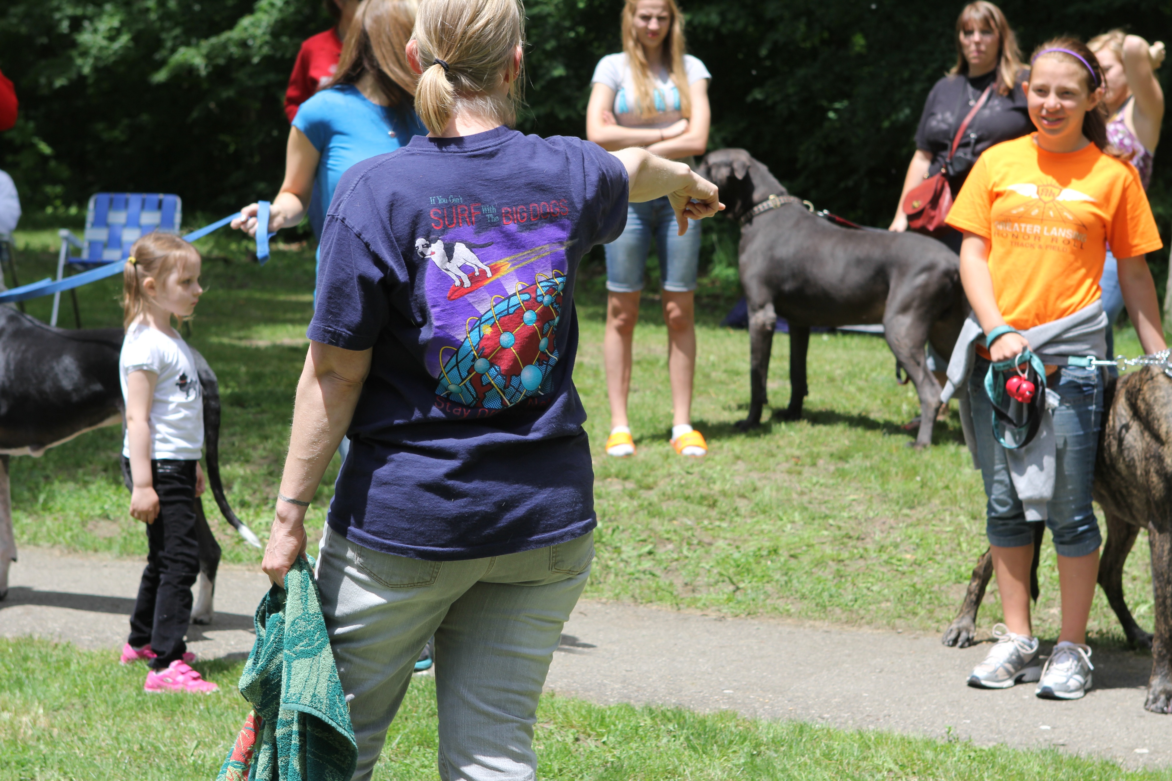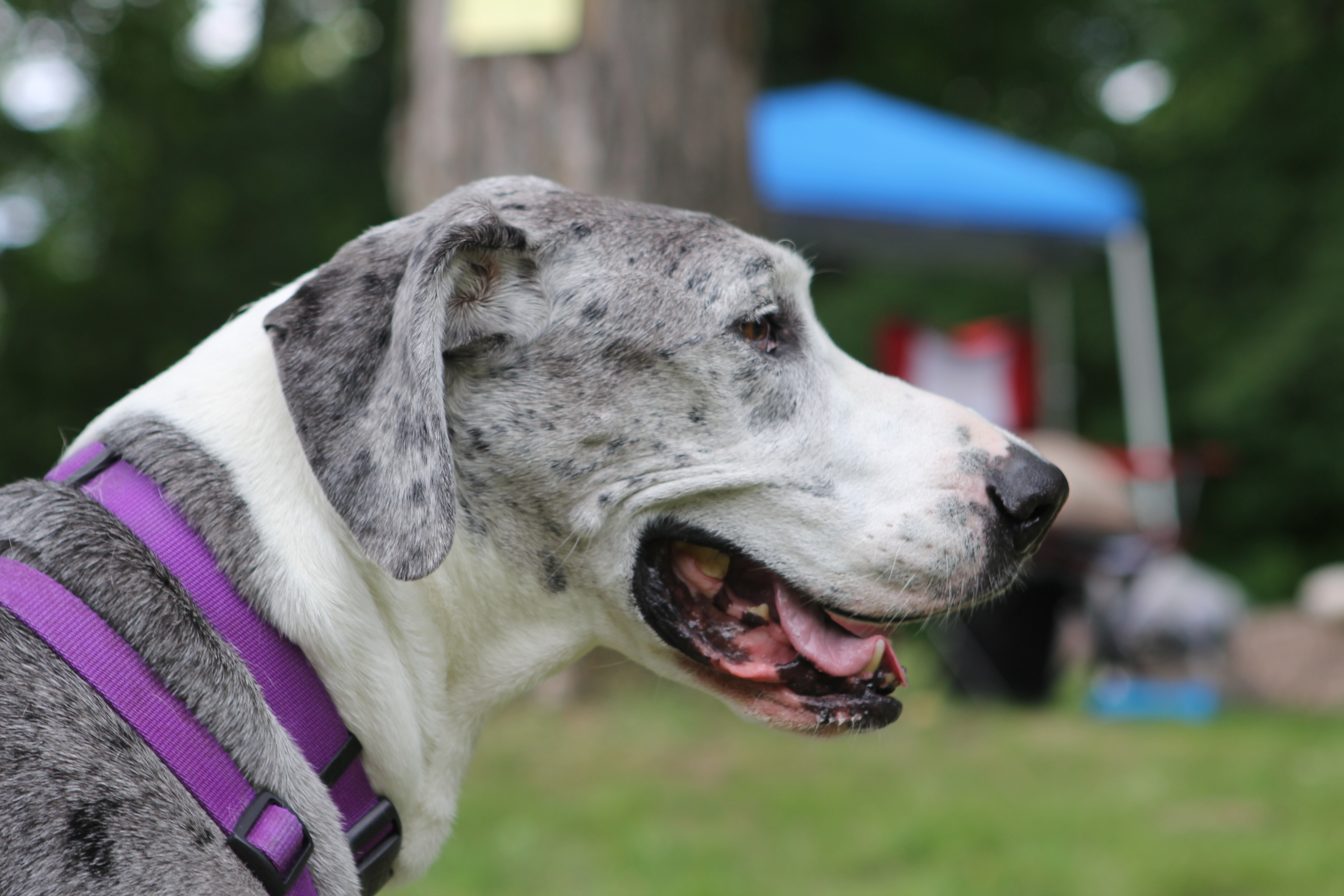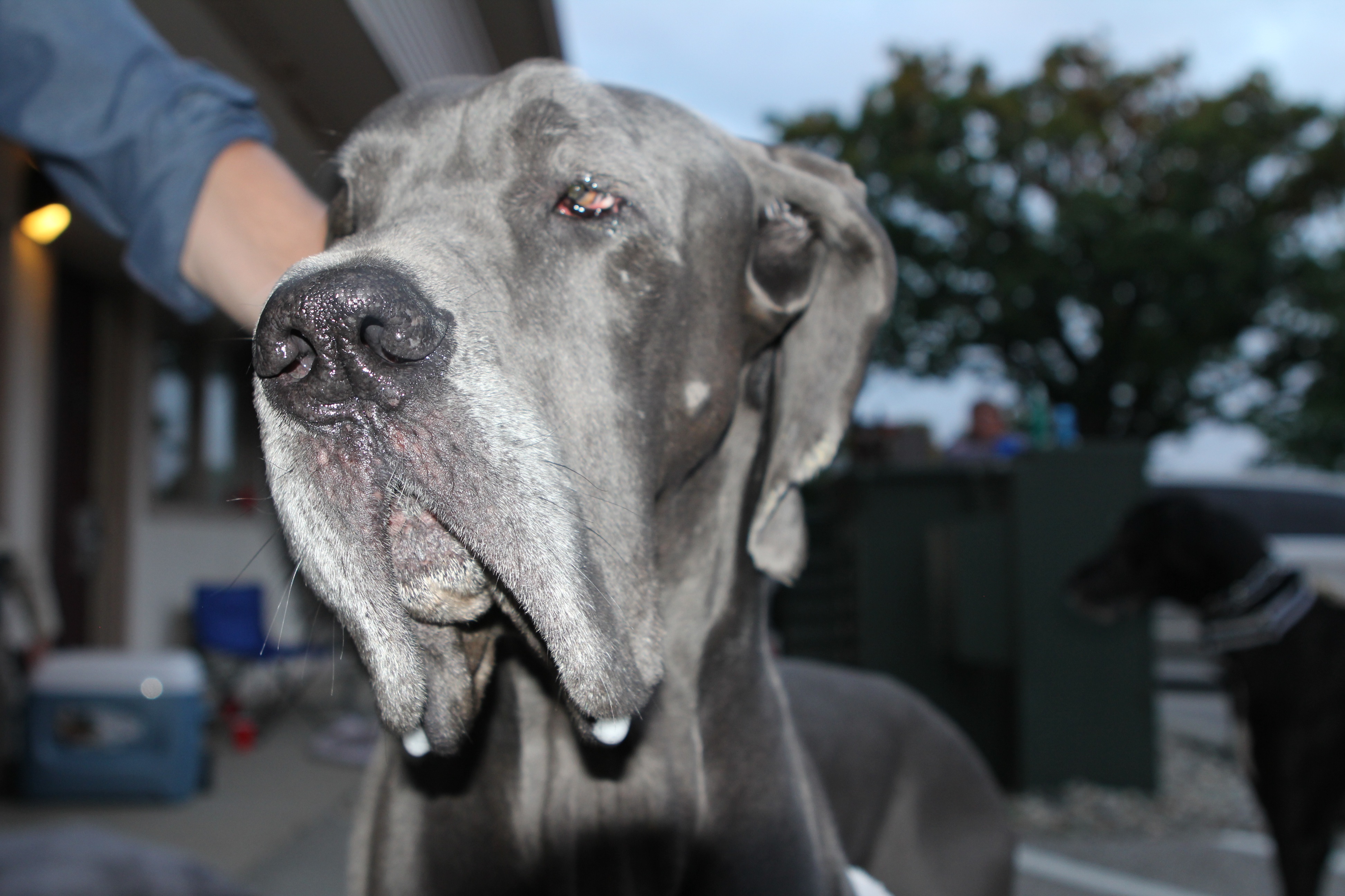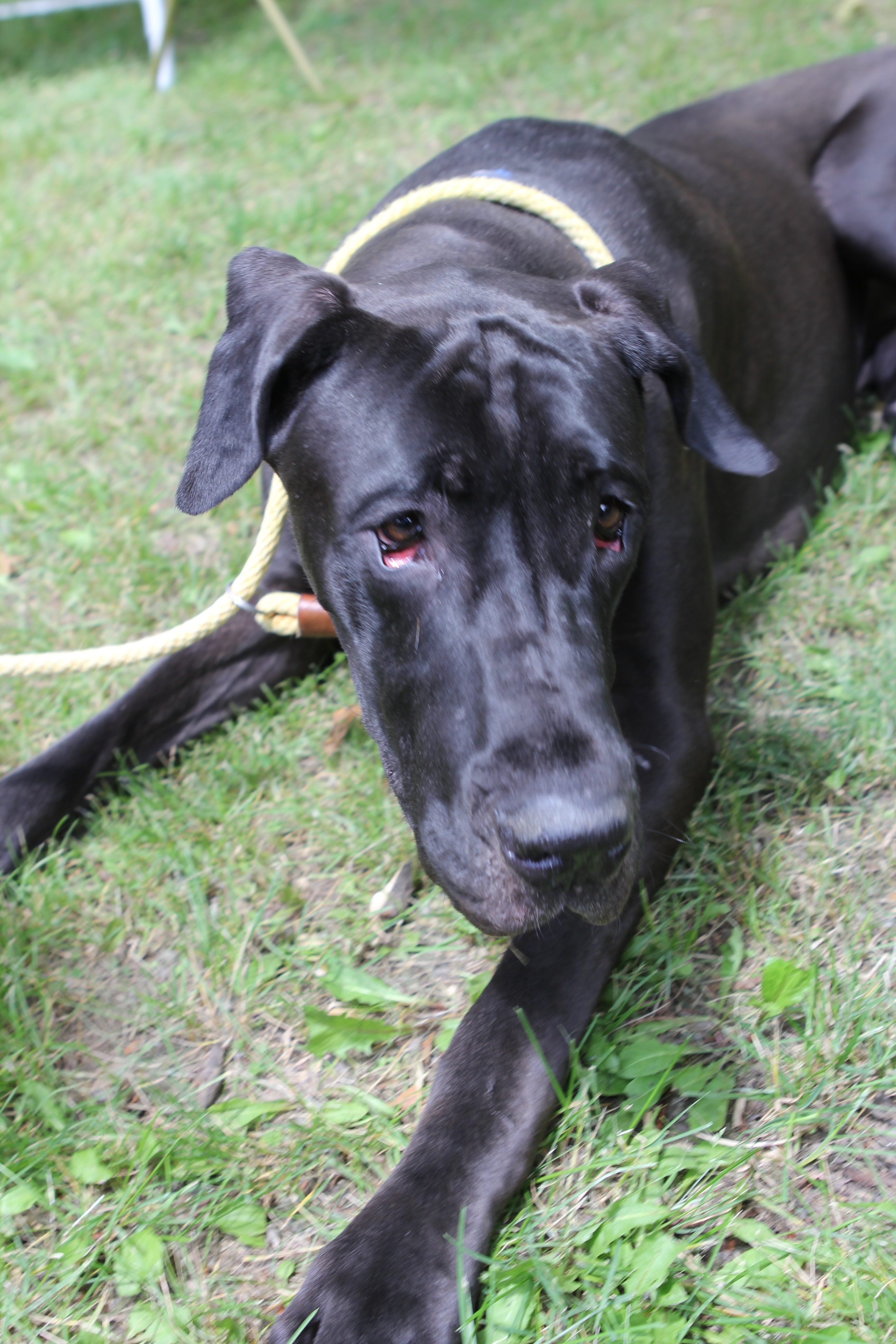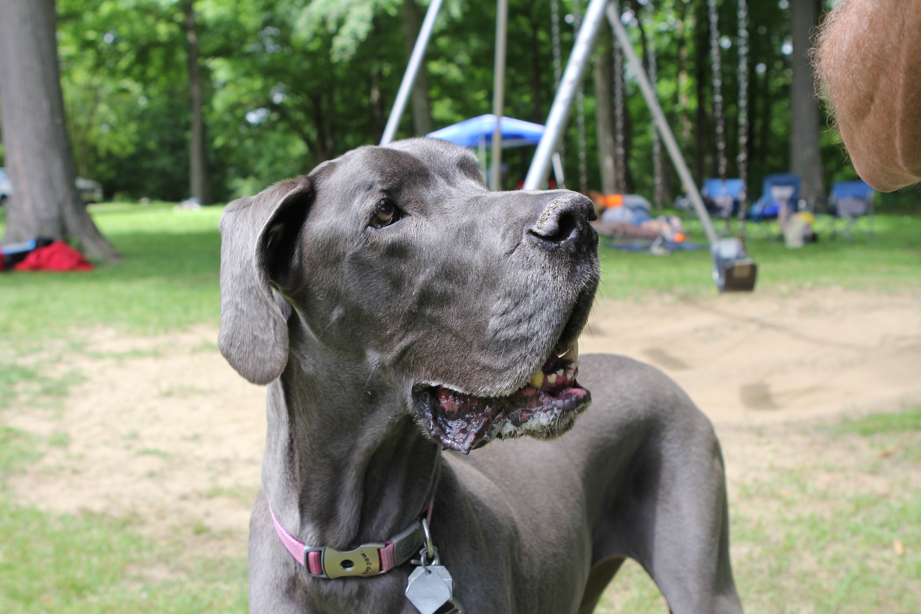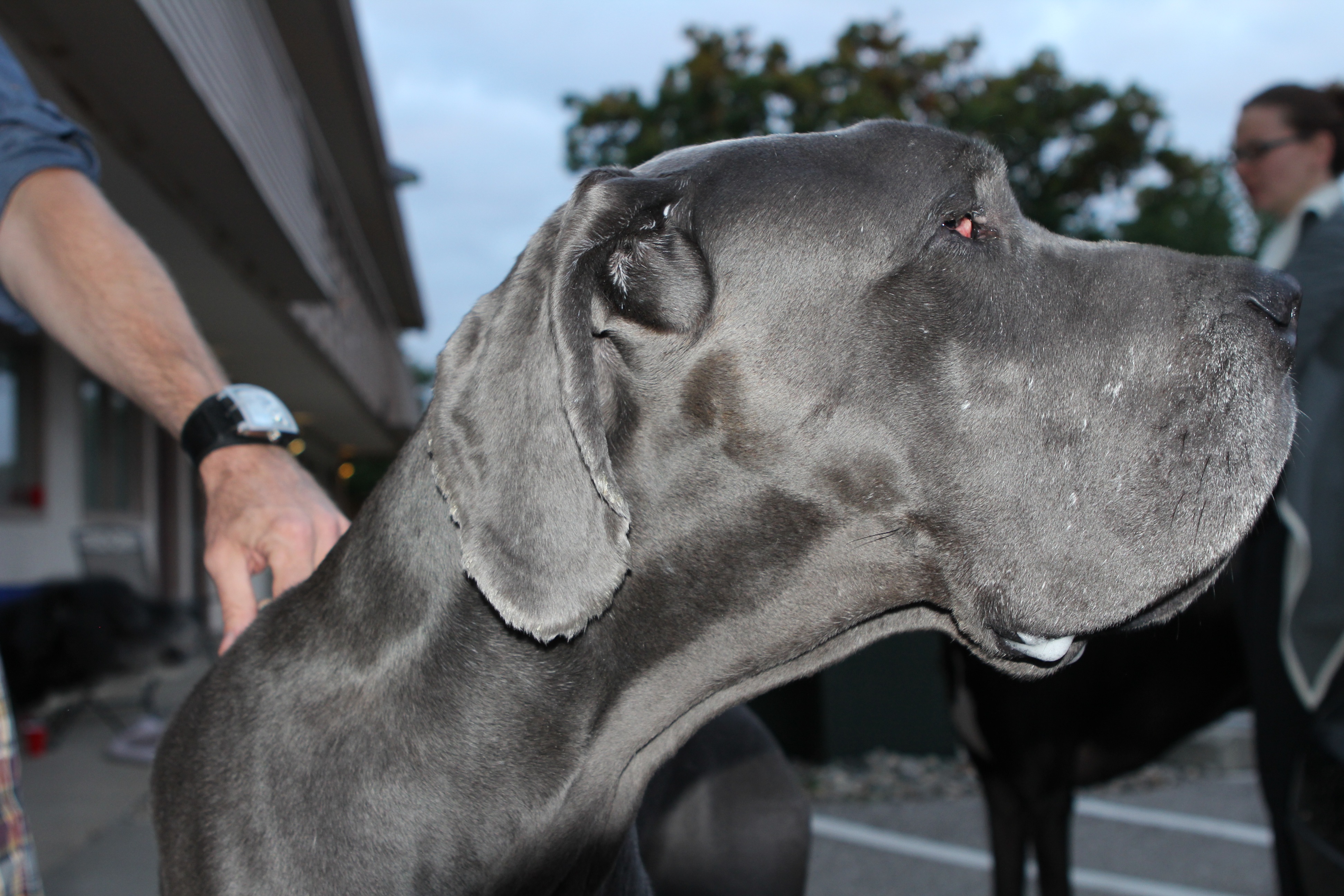 Every year, Great Dane Rescue, Inc. hosts the GDRI Fun Day. In 2013, it was held on Saturday, June 8. Sarah decided to take our new dane, Polka. As an aside, I maintain that Polka could have been named "Ribbit". He hops around like a frog, and that tongue of his just darts out at you like a frog hunting it's meals. Anyhow, Sarah tried (she made me write that) to take pictures of all of the dogs there, though we seem to have lost the names of a few. If you happen to know an unnamed dog's name, please email Danforth, who will correct it, promptly. They are listed in alphabetical order.