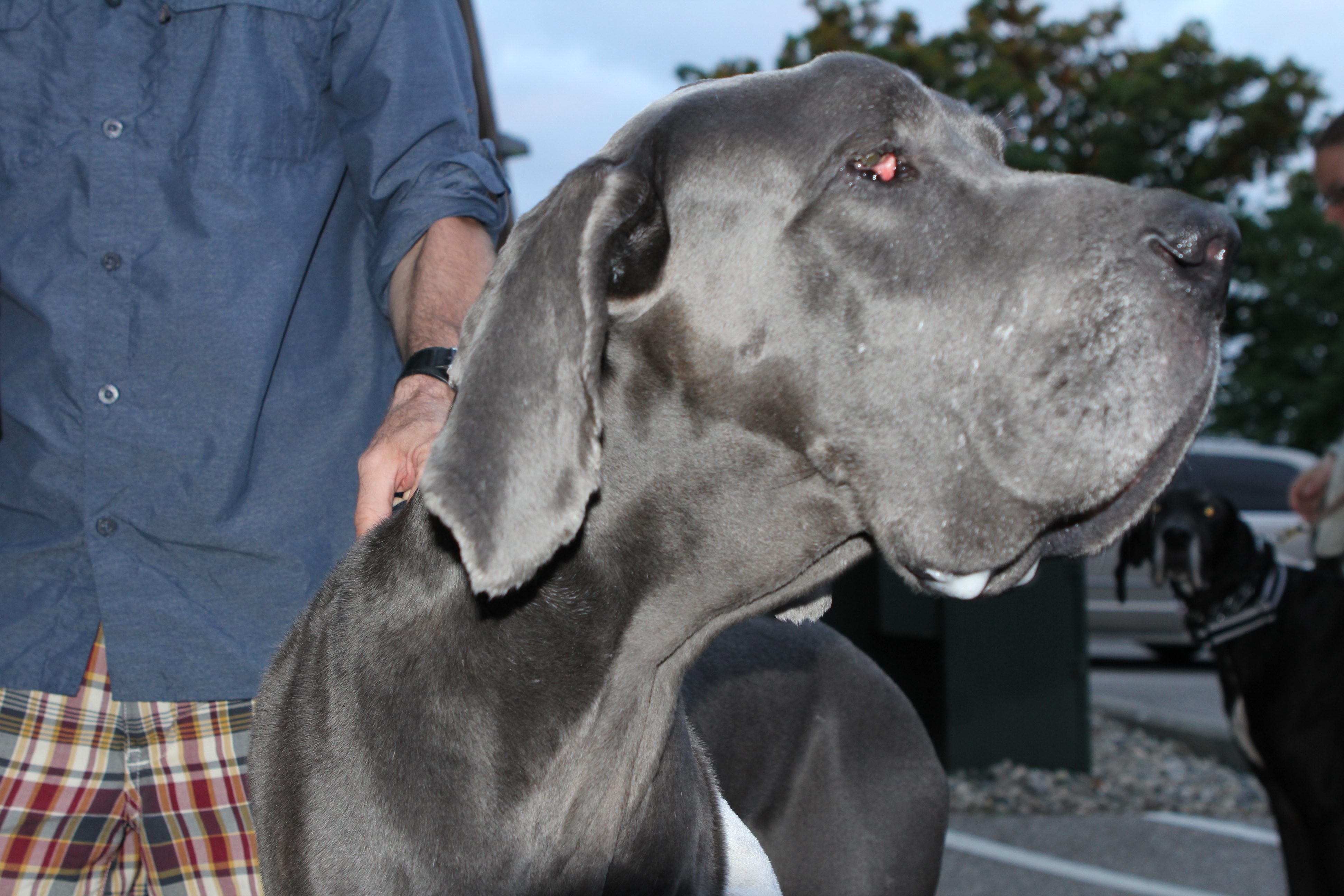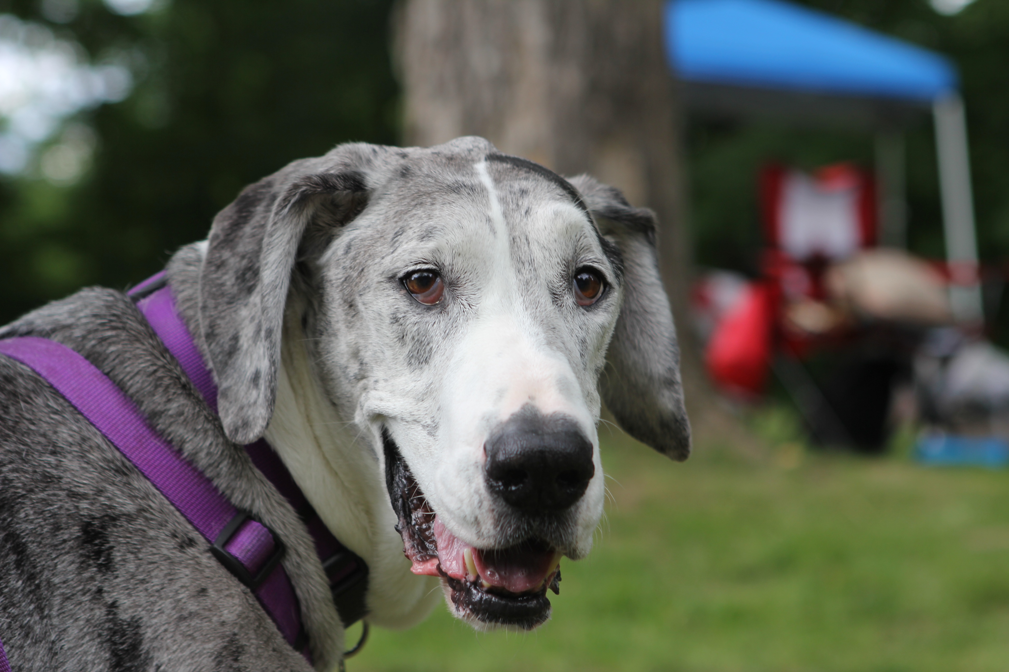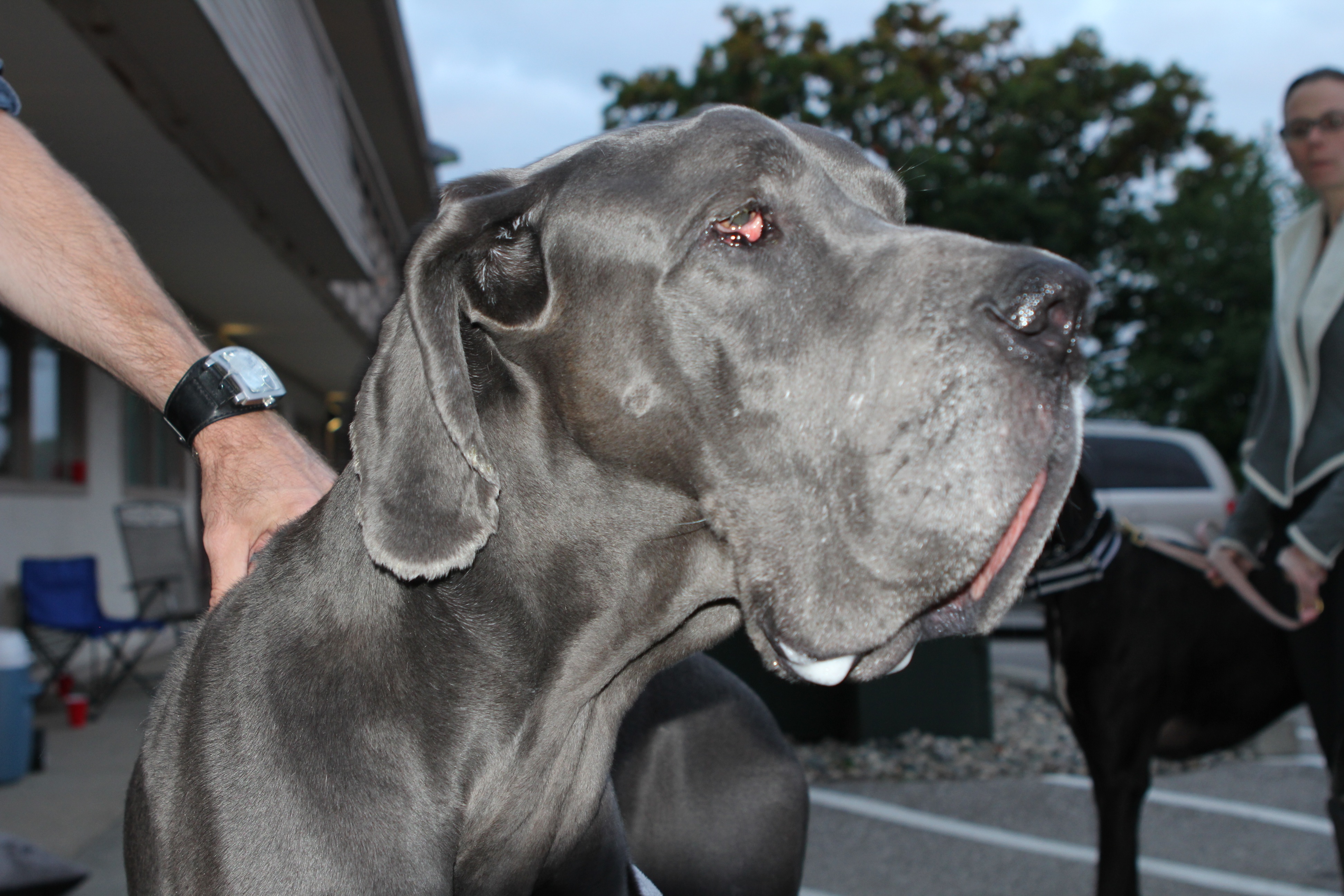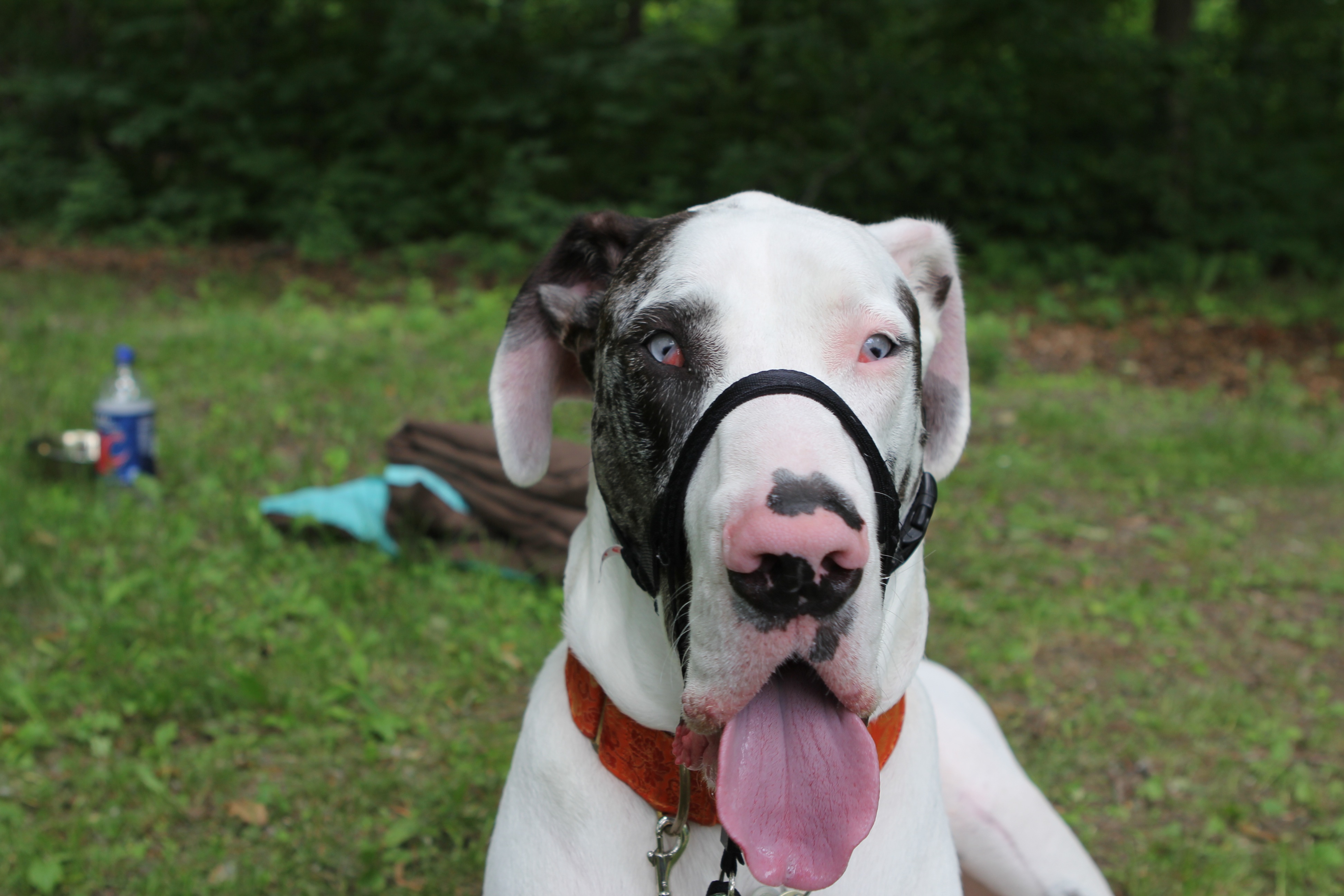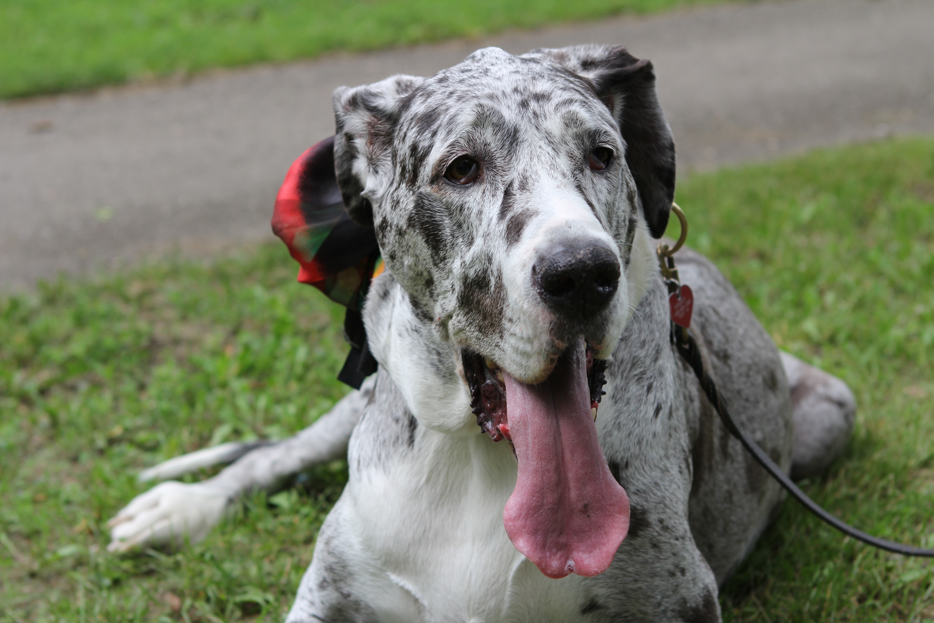 Every year, Great Dane Rescue, Inc. hosts the GDRI Fun Day. In 2013, it was held on Saturday, June 8. Sarah decided to take our new dane, Polka. As an aside, I maintain that Polka could have been named "Ribbit". He hops around like a frog, and that tongue of his just darts out at you like a frog hunting it's meals. Anyhow, Sarah tried (she made me write that) to take pictures of all of the dogs there, though we seem to have lost the names of a few. If you happen to know an unnamed dog's name, please email Danforth, who will correct it, promptly. They are listed in alphabetical order.