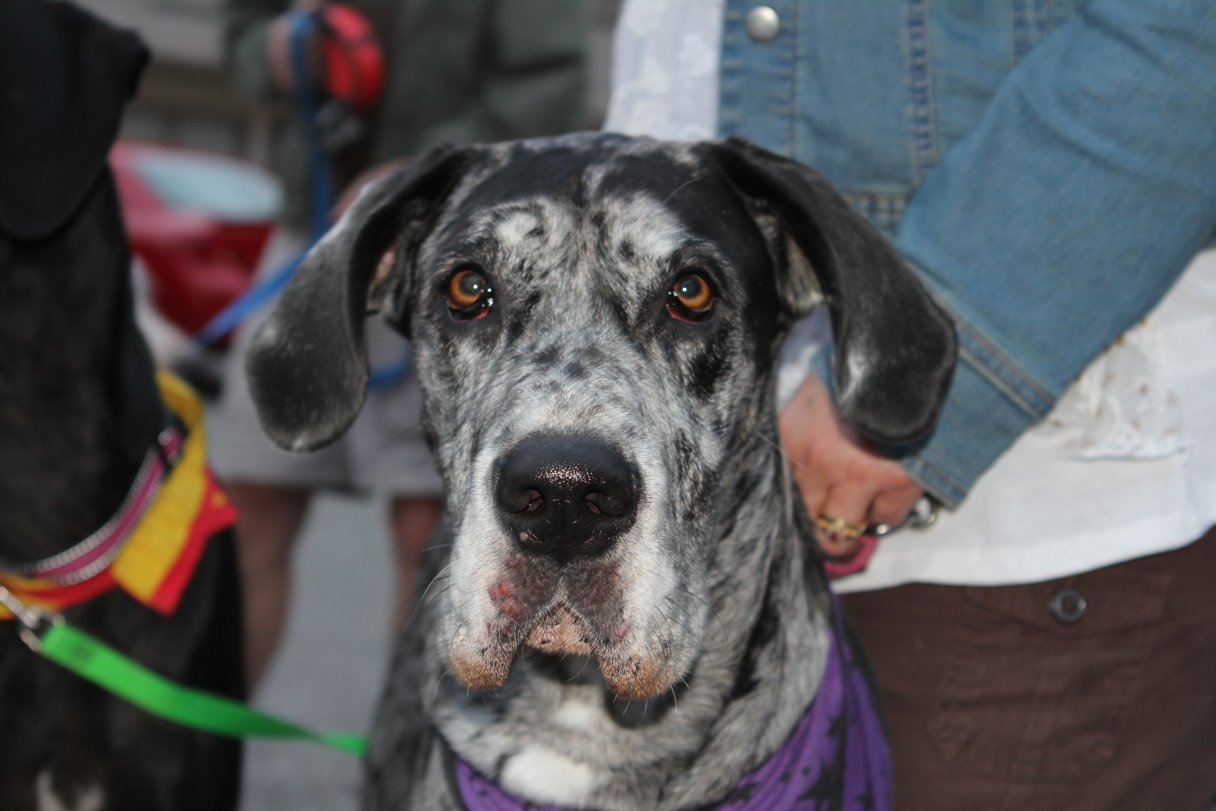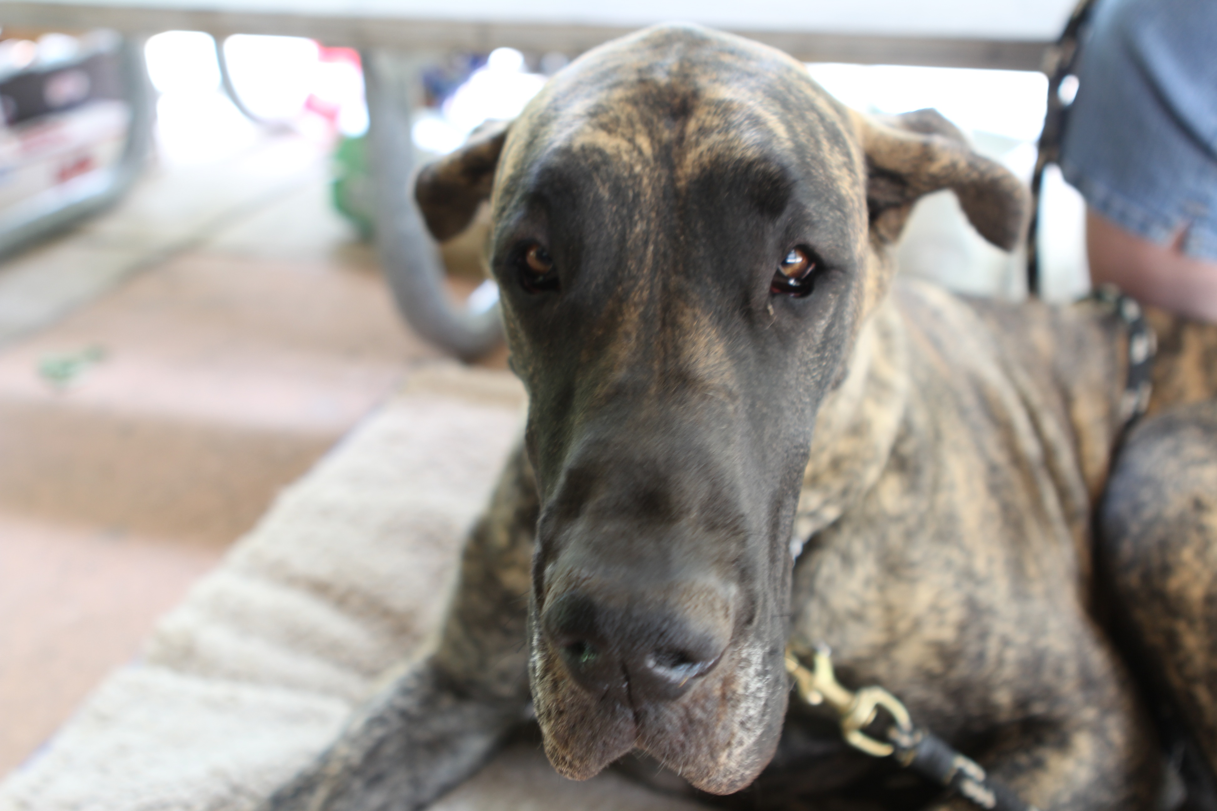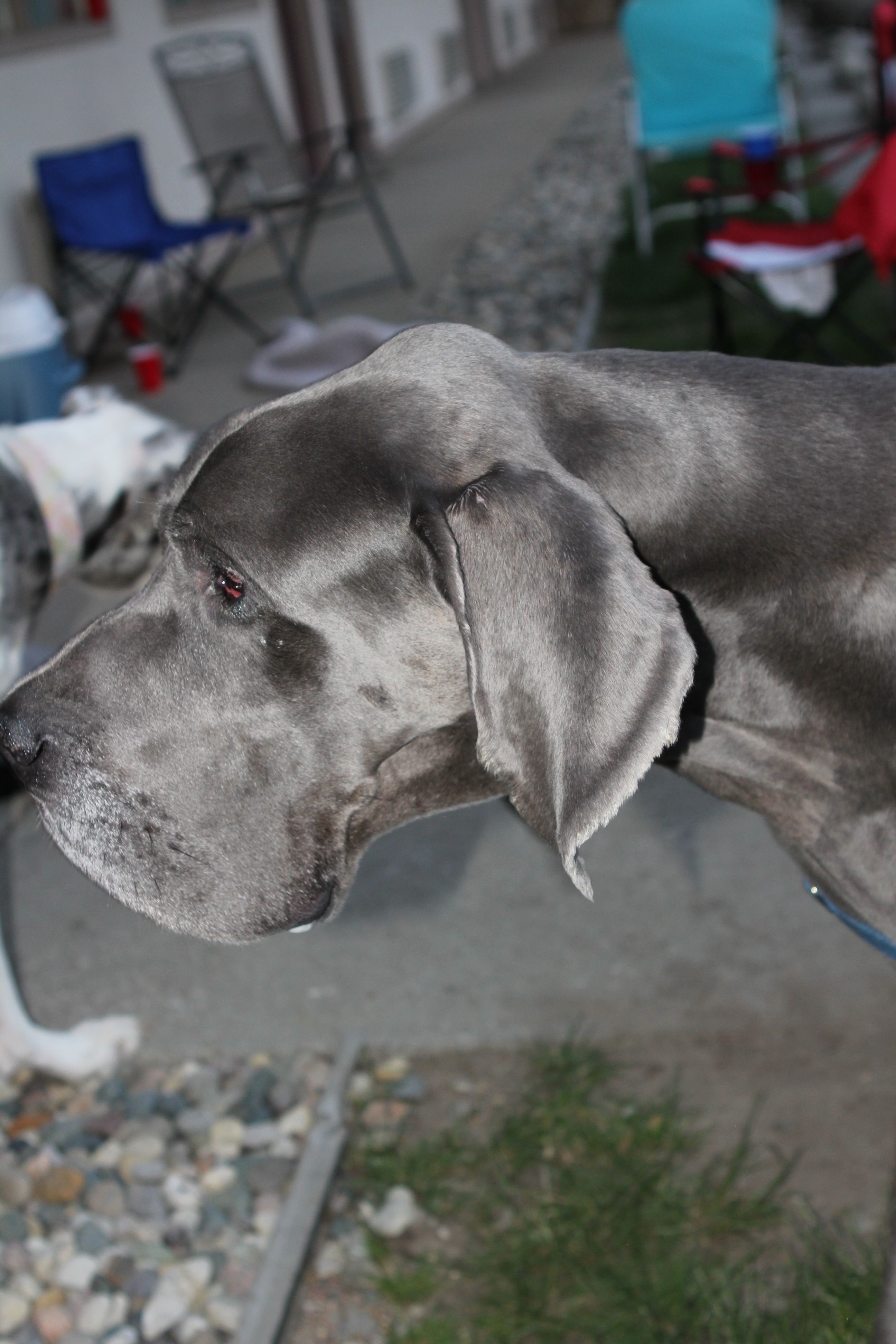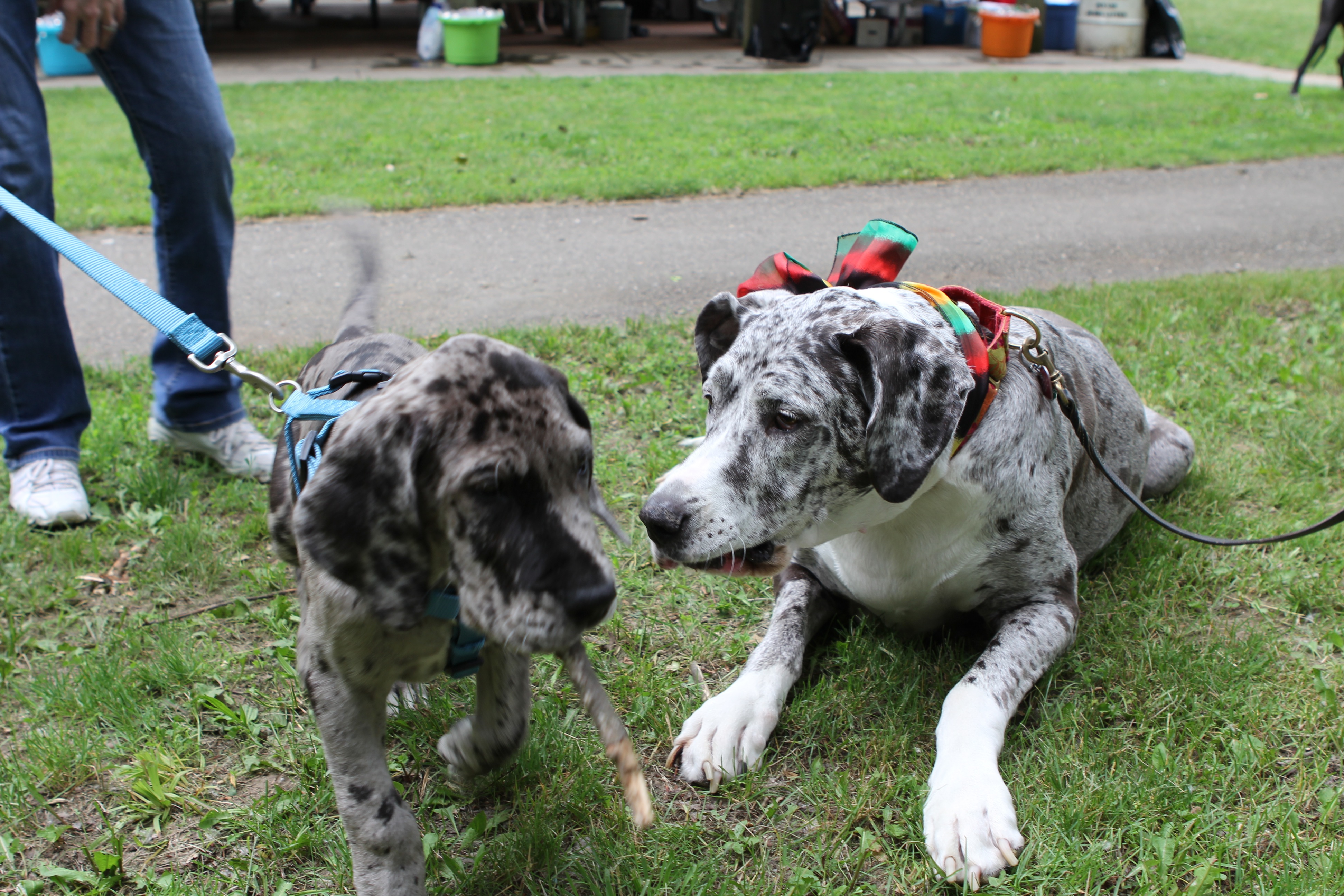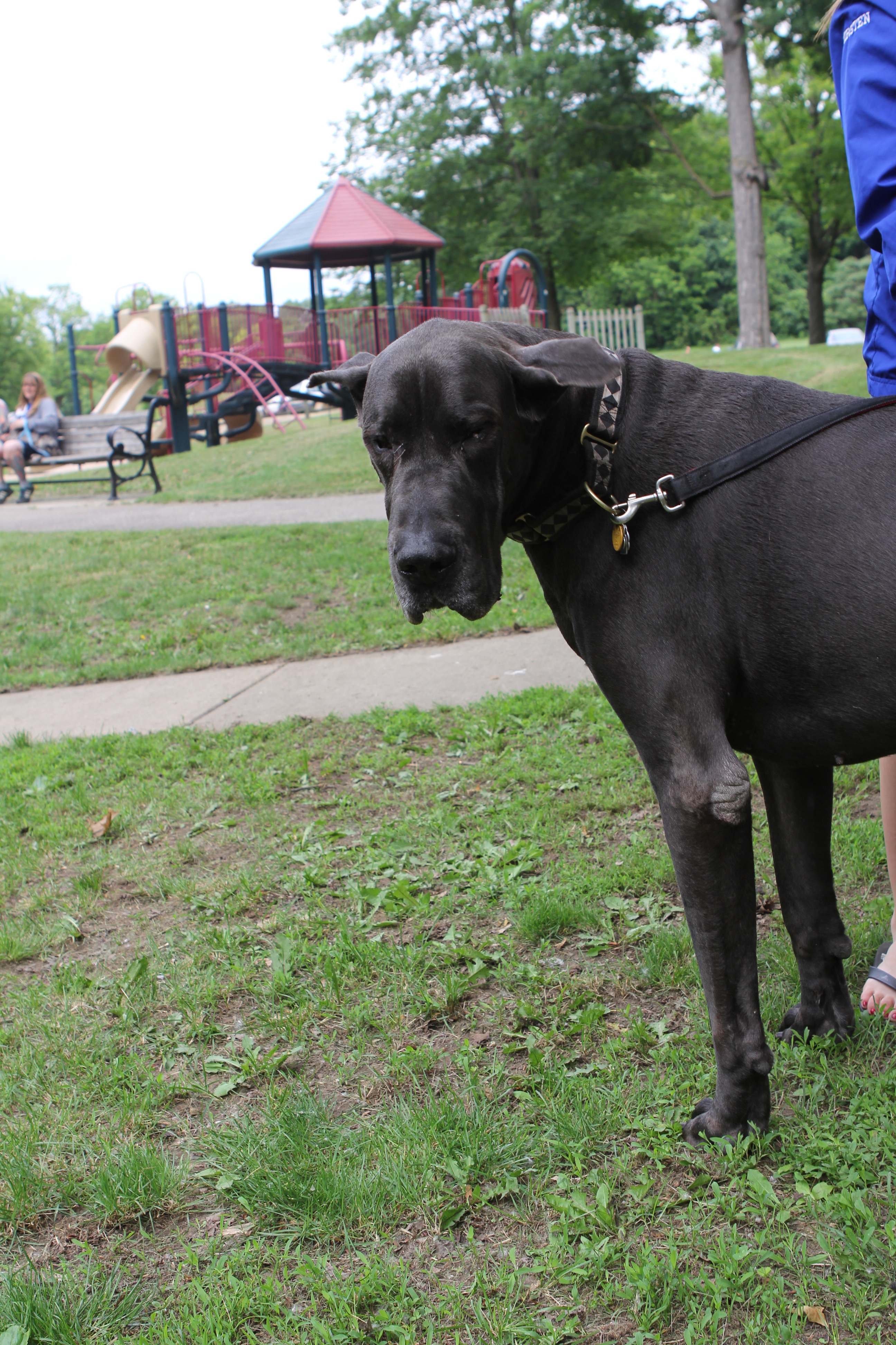 Every year, Great Dane Rescue, Inc. hosts the GDRI Fun Day. In 2013, it was held on Saturday, June 8. Sarah decided to take our new dane, Polka. As an aside, I maintain that Polka could have been named "Ribbit". He hops around like a frog, and that tongue of his just darts out at you like a frog hunting it's meals. Anyhow, Sarah tried (she made me write that) to take pictures of all of the dogs there, though we seem to have lost the names of a few. If you happen to know an unnamed dog's name, please email Danforth, who will correct it, promptly. They are listed in alphabetical order.