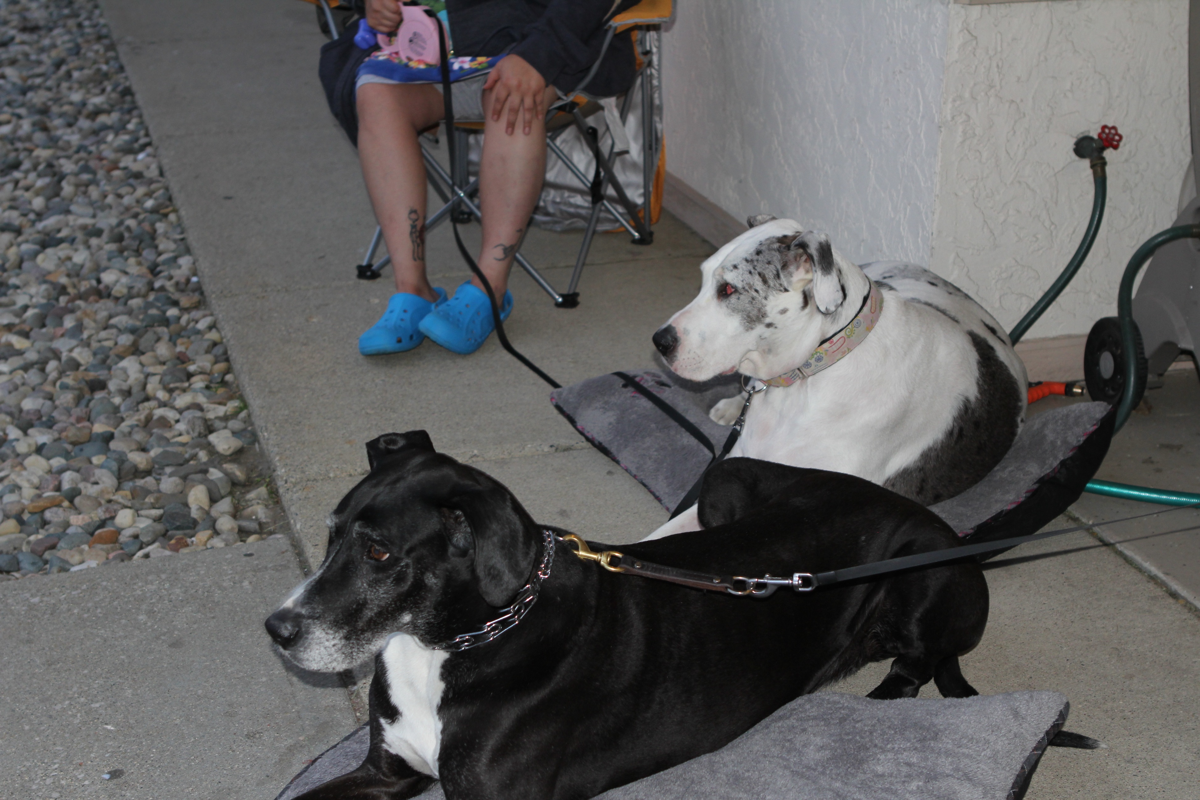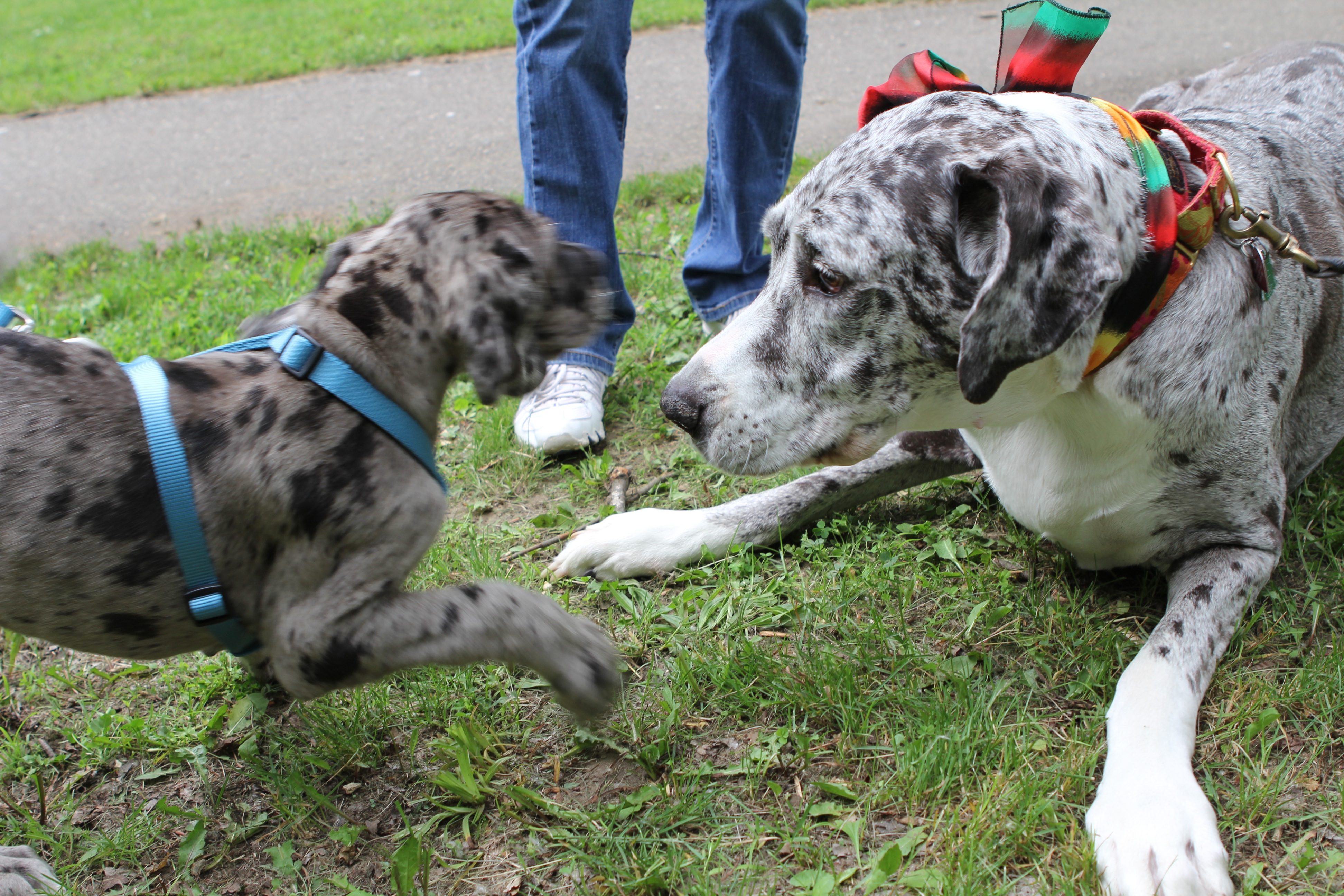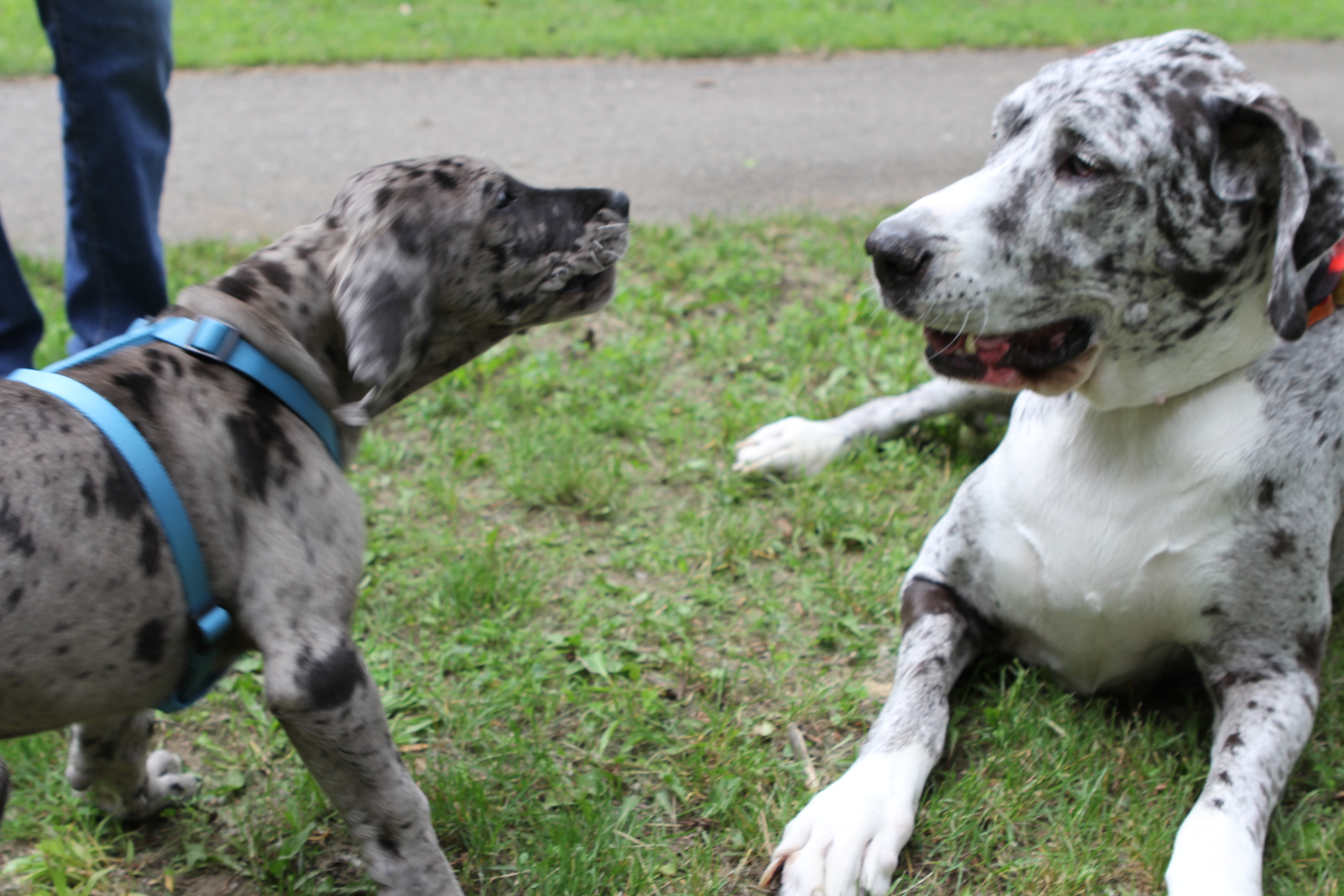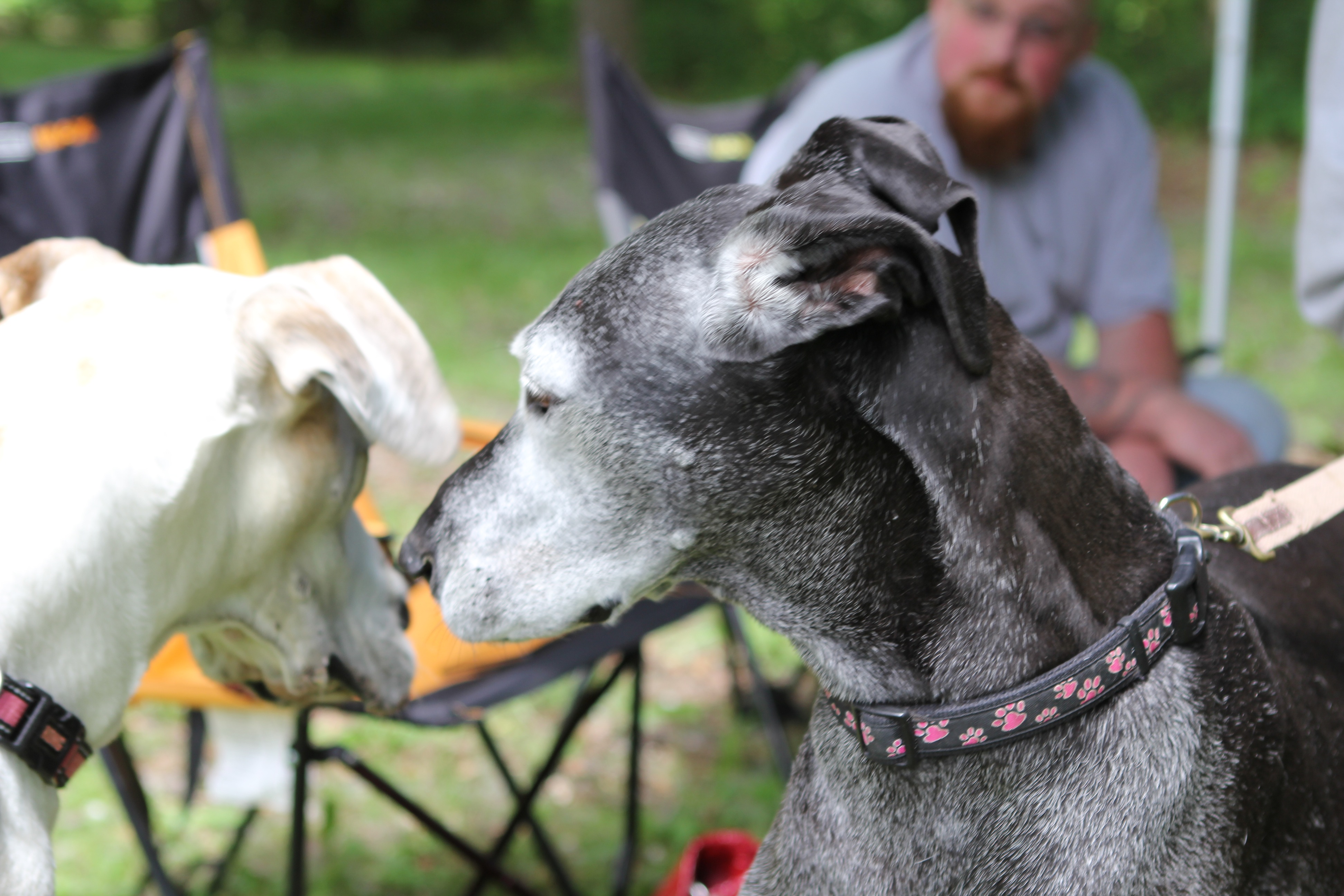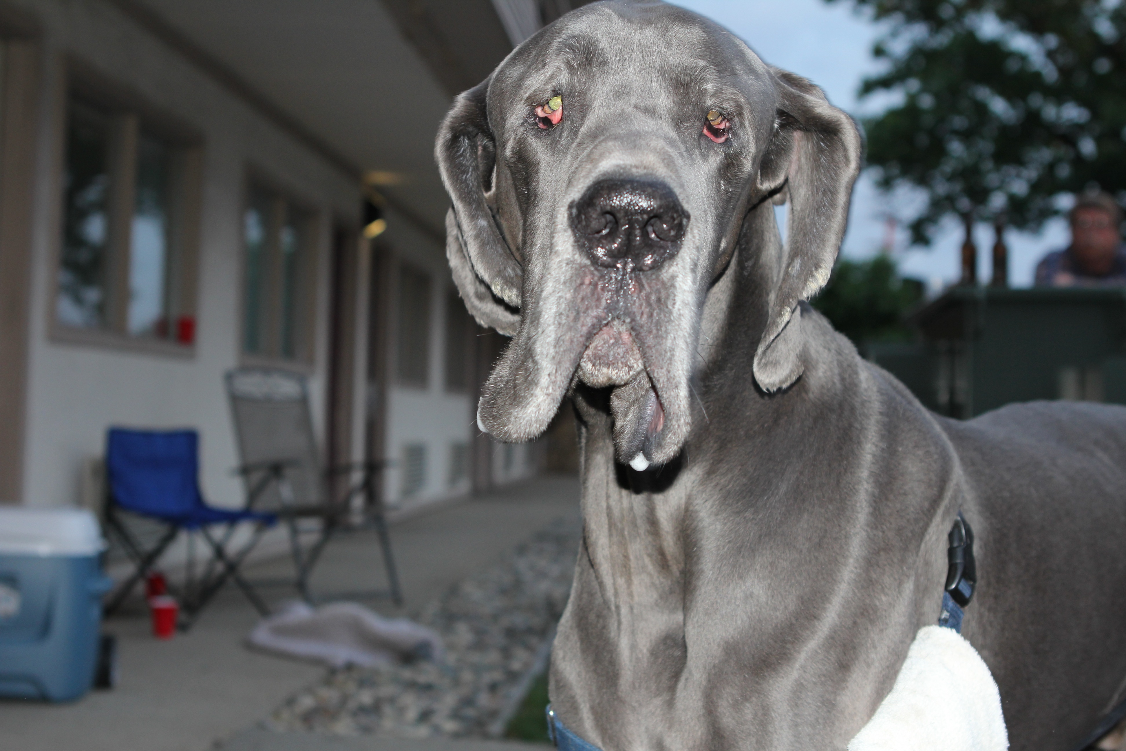 Every year, Great Dane Rescue, Inc. hosts the GDRI Fun Day. In 2013, it was held on Saturday, June 8. Sarah decided to take our new dane, Polka. As an aside, I maintain that Polka could have been named "Ribbit". He hops around like a frog, and that tongue of his just darts out at you like a frog hunting it's meals. Anyhow, Sarah tried (she made me write that) to take pictures of all of the dogs there, though we seem to have lost the names of a few. If you happen to know an unnamed dog's name, please email Danforth, who will correct it, promptly. They are listed in alphabetical order.