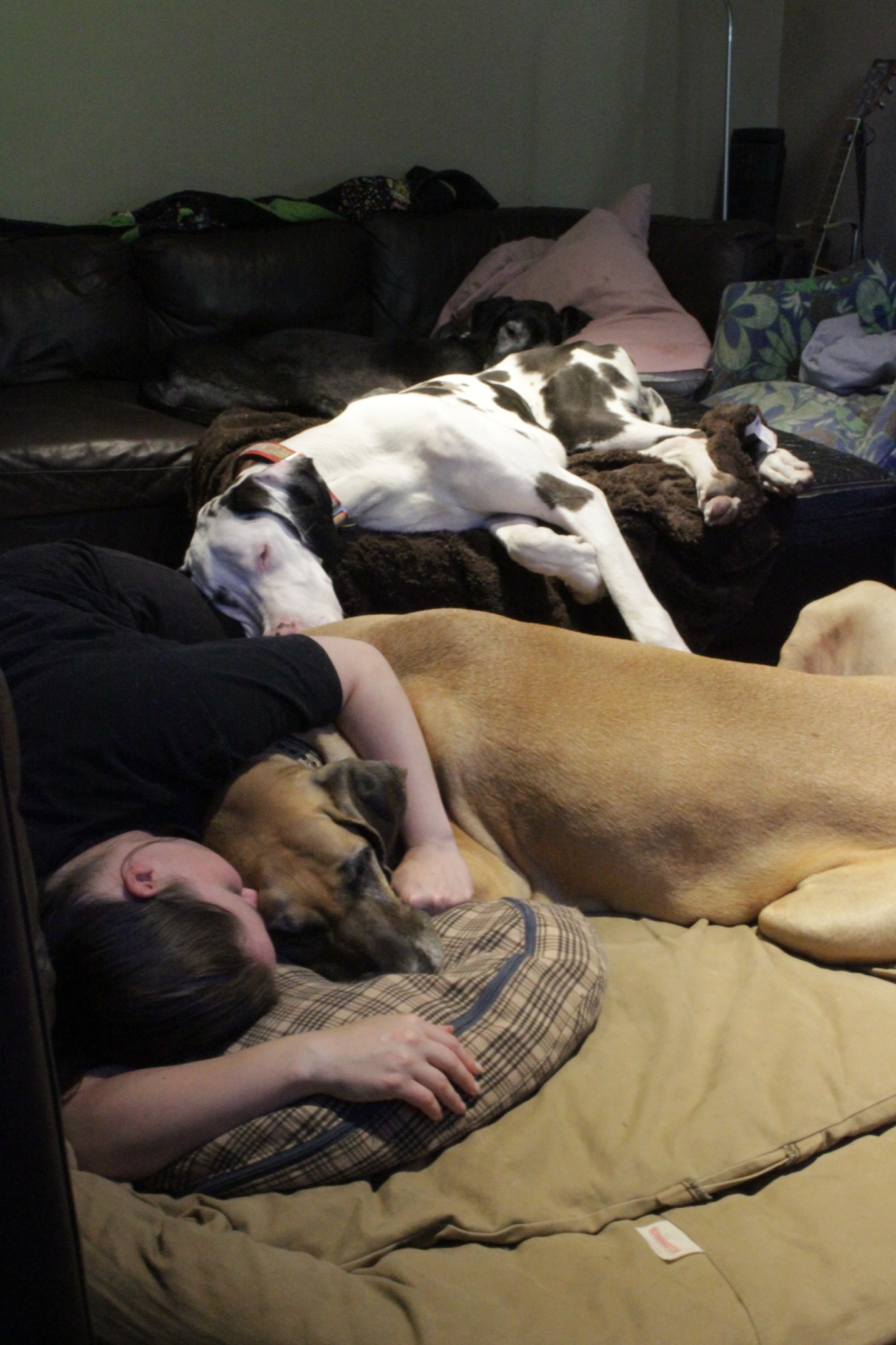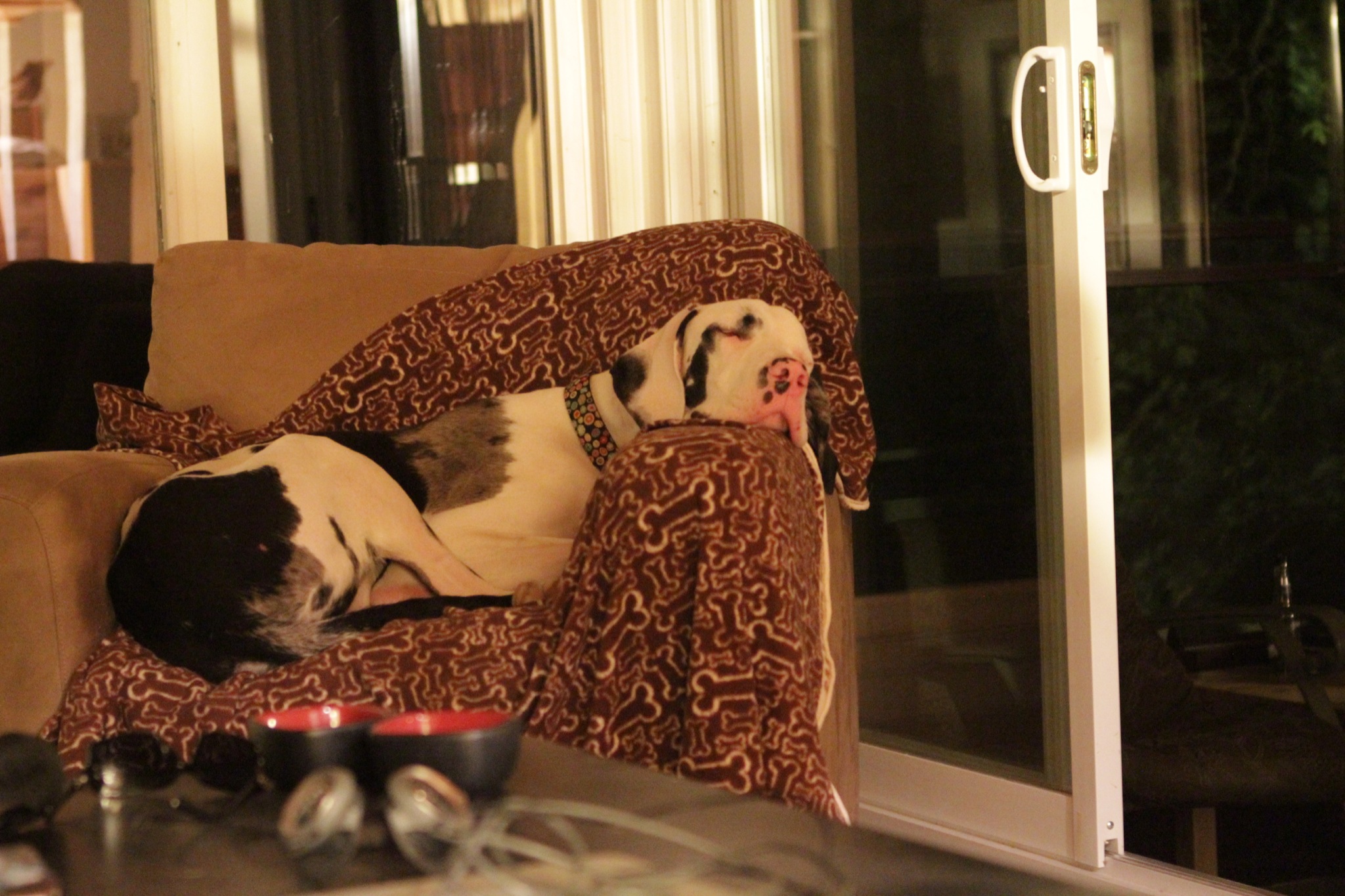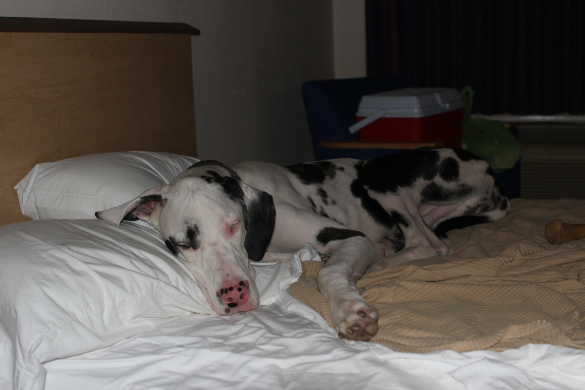 It's at this point where it's hard to ignore the things that we never got to do. We took two trips with him. The first was to Michigan, where Sarah took Polka to the Great Dane Rescue Fun Day. It's an event that is held every year, and it gave Sarah an opportunity to share a bed with him. It was a sepcial event, and it has taken on a new meaning since his passing. The second trip was up to Rama, ON. It was up to our friend's place, which they had recently moved into. But we never got to take him to Nova Scotia, something we have done several times with all of our dogs.