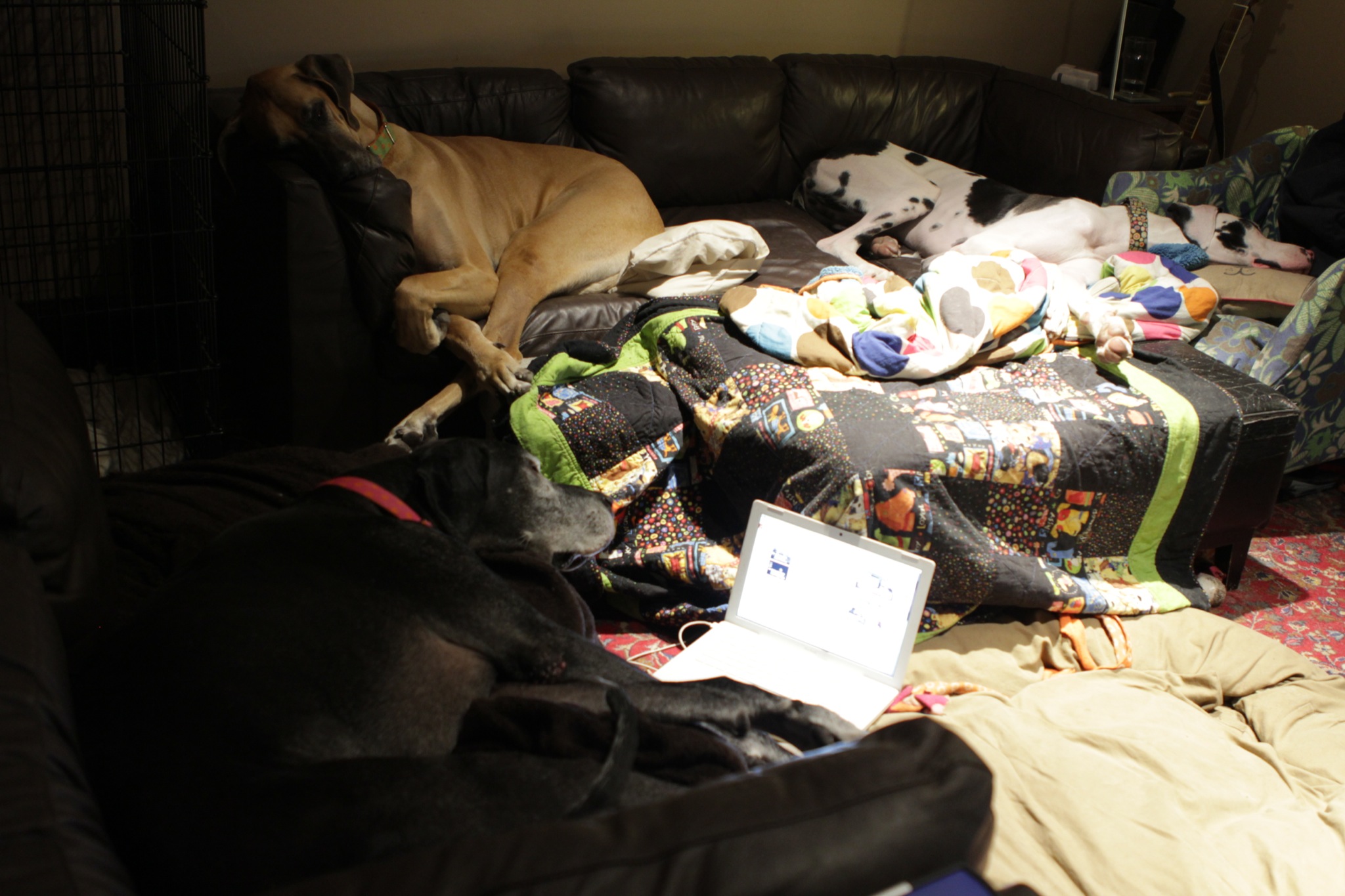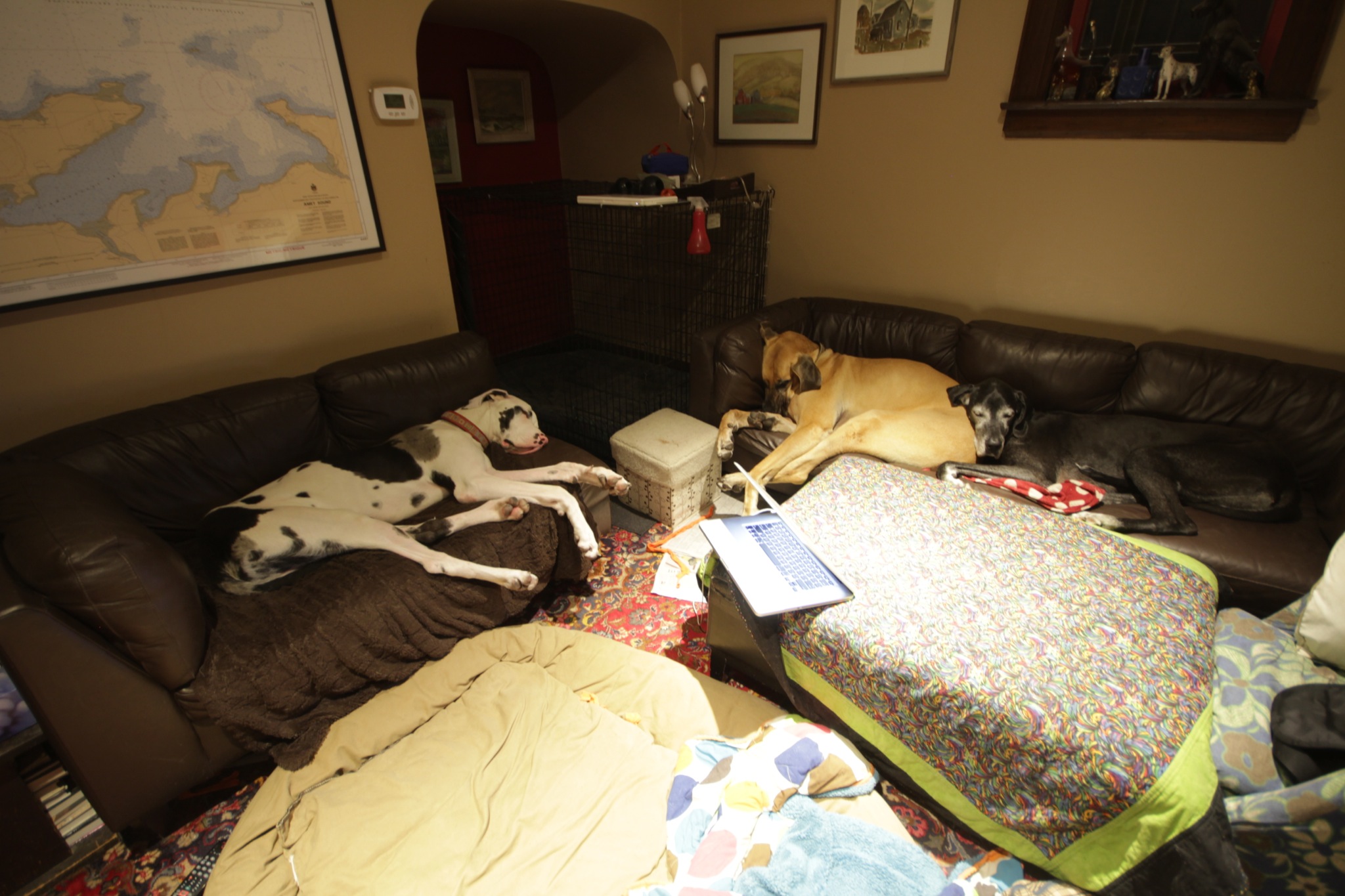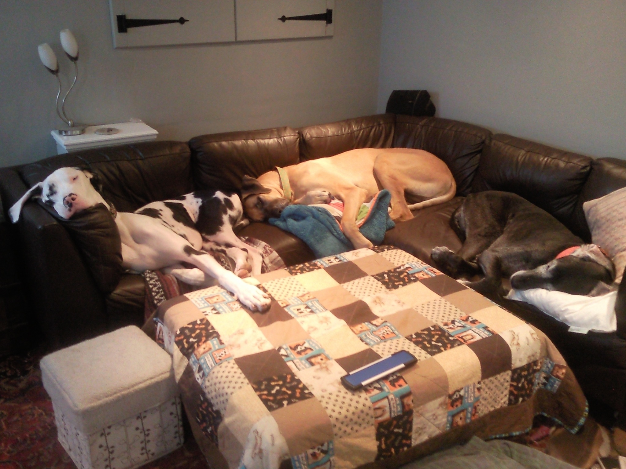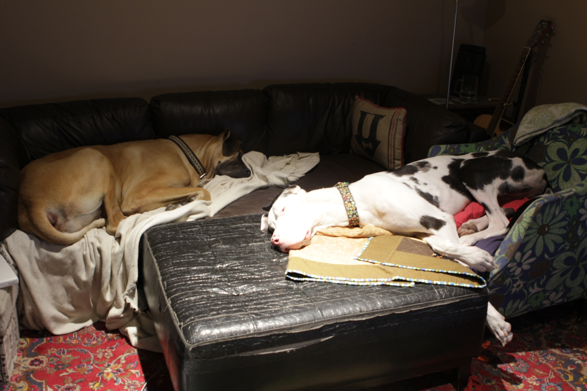 It's at this point where it's hard to ignore the things that we never got to do. We took two trips with him. The first was to Michigan, where Sarah took Polka to the Great Dane Rescue Fun Day. It's an event that is held every year, and it gave Sarah an opportunity to share a bed with him. It was a sepcial event, and it has taken on a new meaning since his passing. The second trip was up to Rama, ON. It was up to our friend's place, which they had recently moved into. But we never got to take him to Nova Scotia, something we have done several times with all of our dogs.