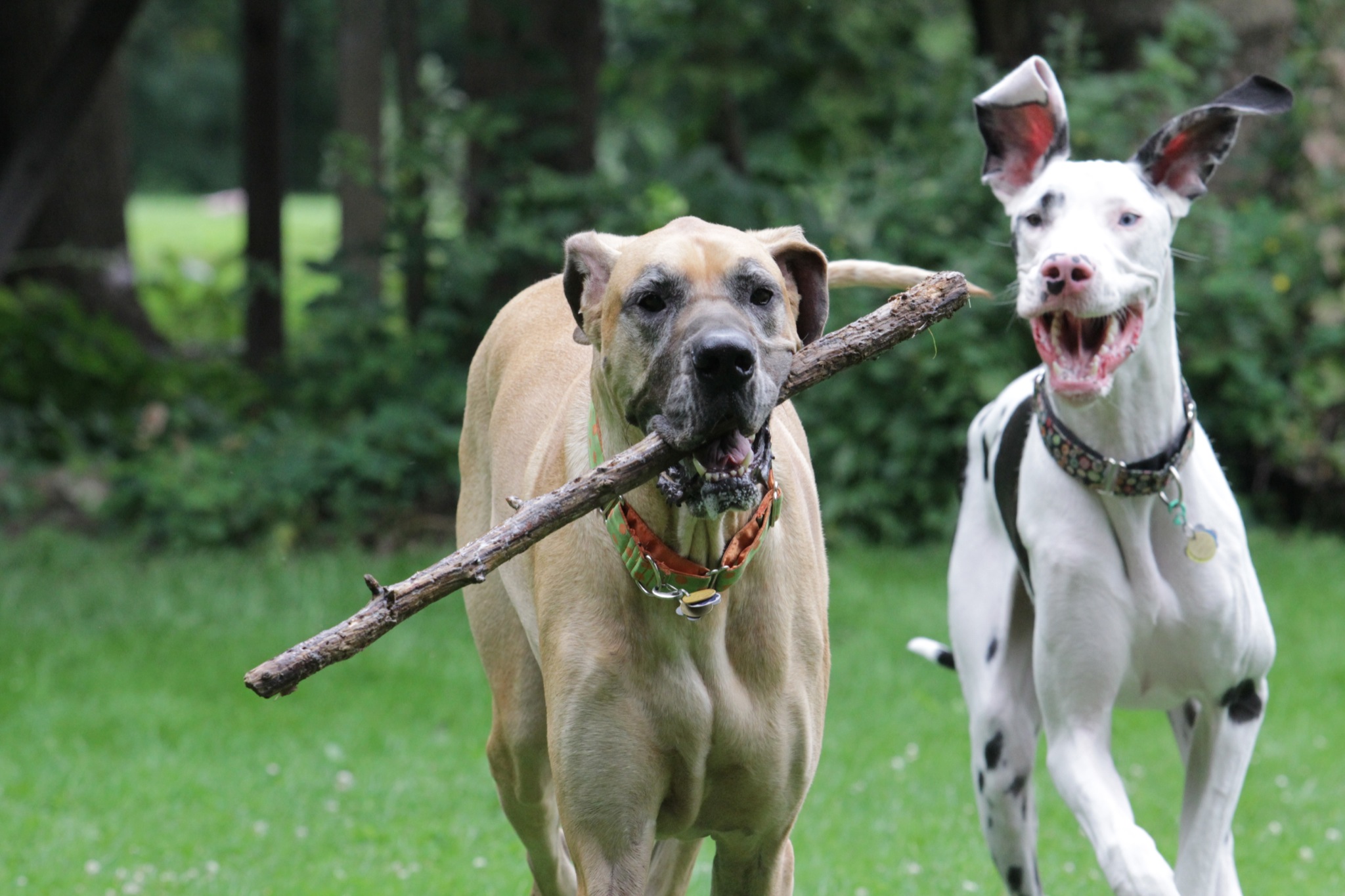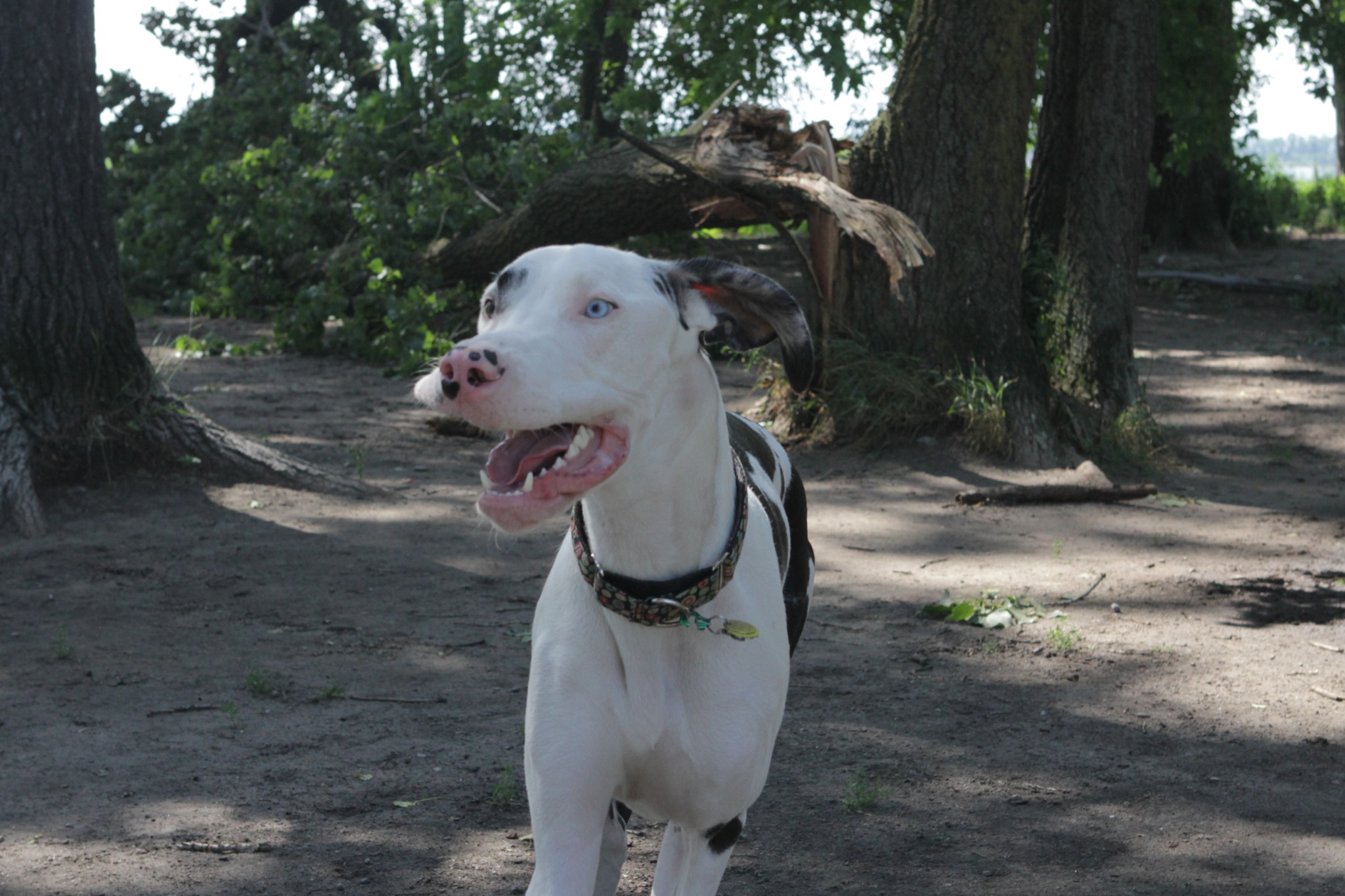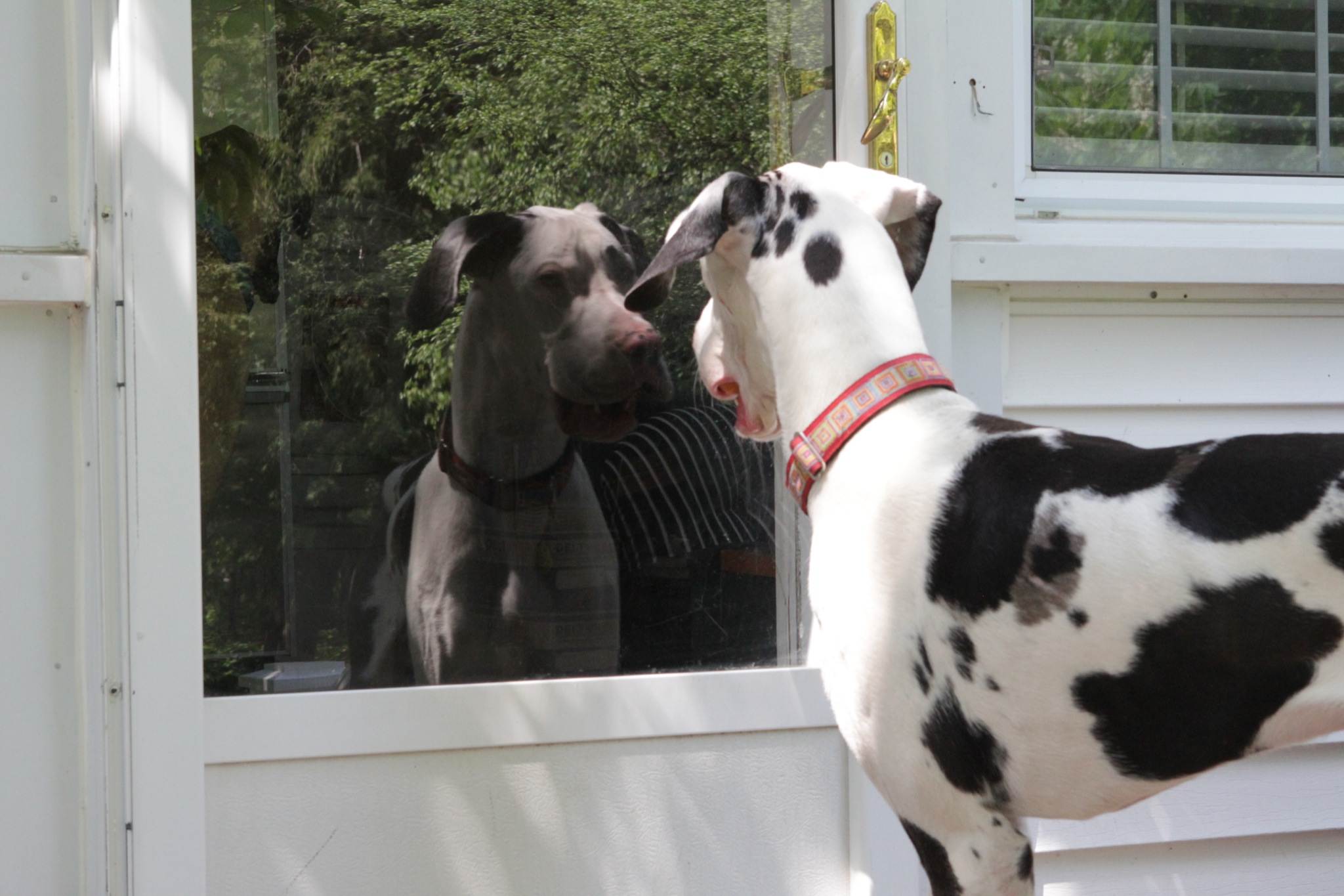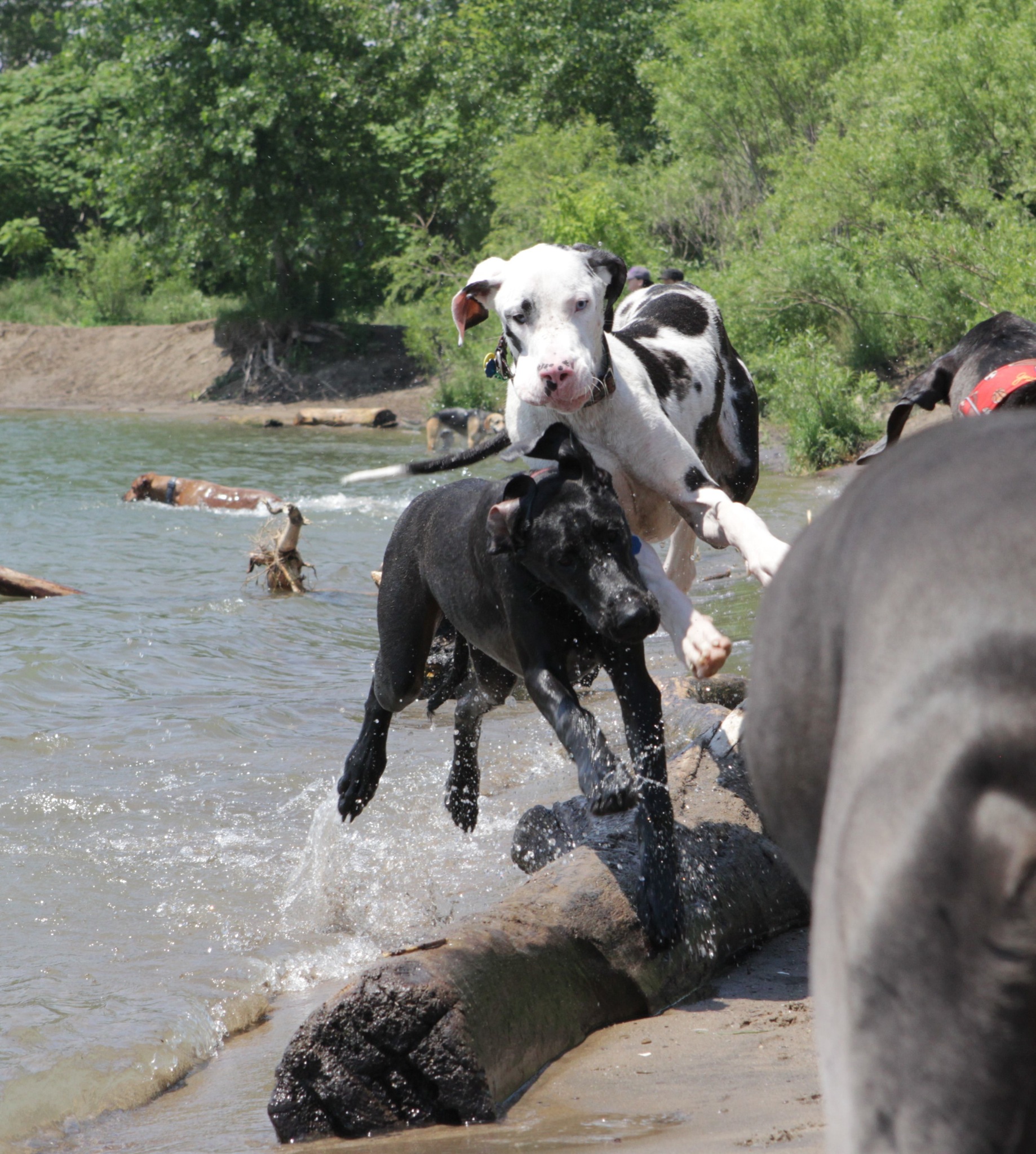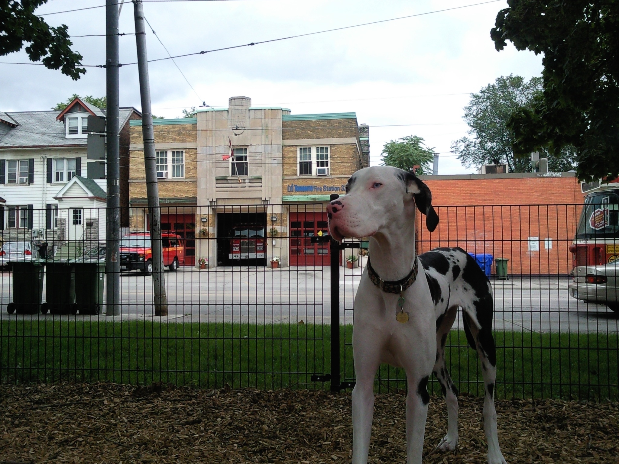 Polka. We were first told about Polka on Sunday March 3rd, 2013. A friend of ours who knows that we are very involved in Toronto's Great Dane community, as well as with Great Dane Rescue, told us that Toronto Animal Services was going to have a young Great Dane made available the next day. He was letting Sarah & I know, in case we knew of anyone that was actively looking at adopting a young Dane. I showed Sarah a picture of him, and she told me that she loved him. Well, we took Danforth down to meet the unnamed Dane the next day, and saw that the two got along. That pretty much sealed it. Sarah filled out forms to "reserve" him, and although we had other things to do that day, we quickly arranged to get our crate back, as it was on loan to another Dane household. The next day, March 5th, Sarah went with our Dane friend, Stacie, and they picked Polka up, and brought him home. We had tried to decide on the name, and it was essentially my turn, but I gave Sarah a couple of choices. She ended up intially registering him as "Panda", but couldn't stick to that, she preferred my first choice, "Polka". I was very happy with the name.