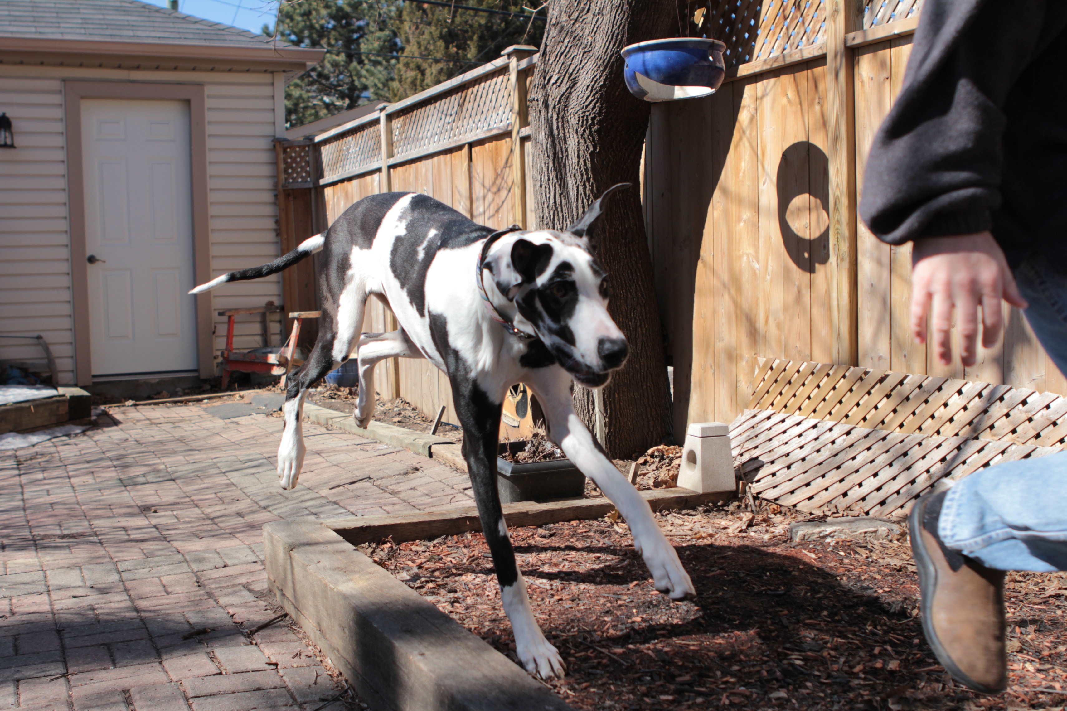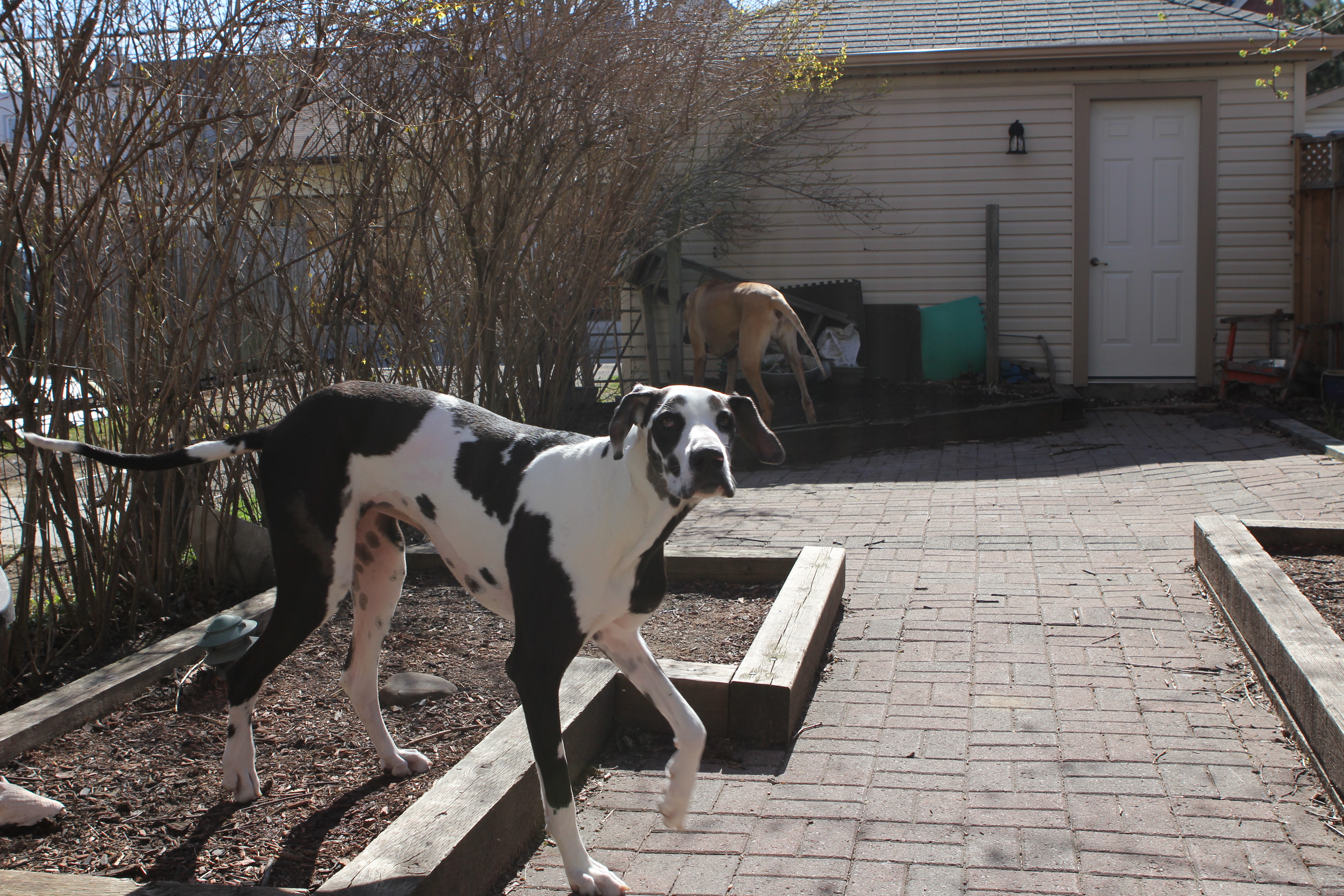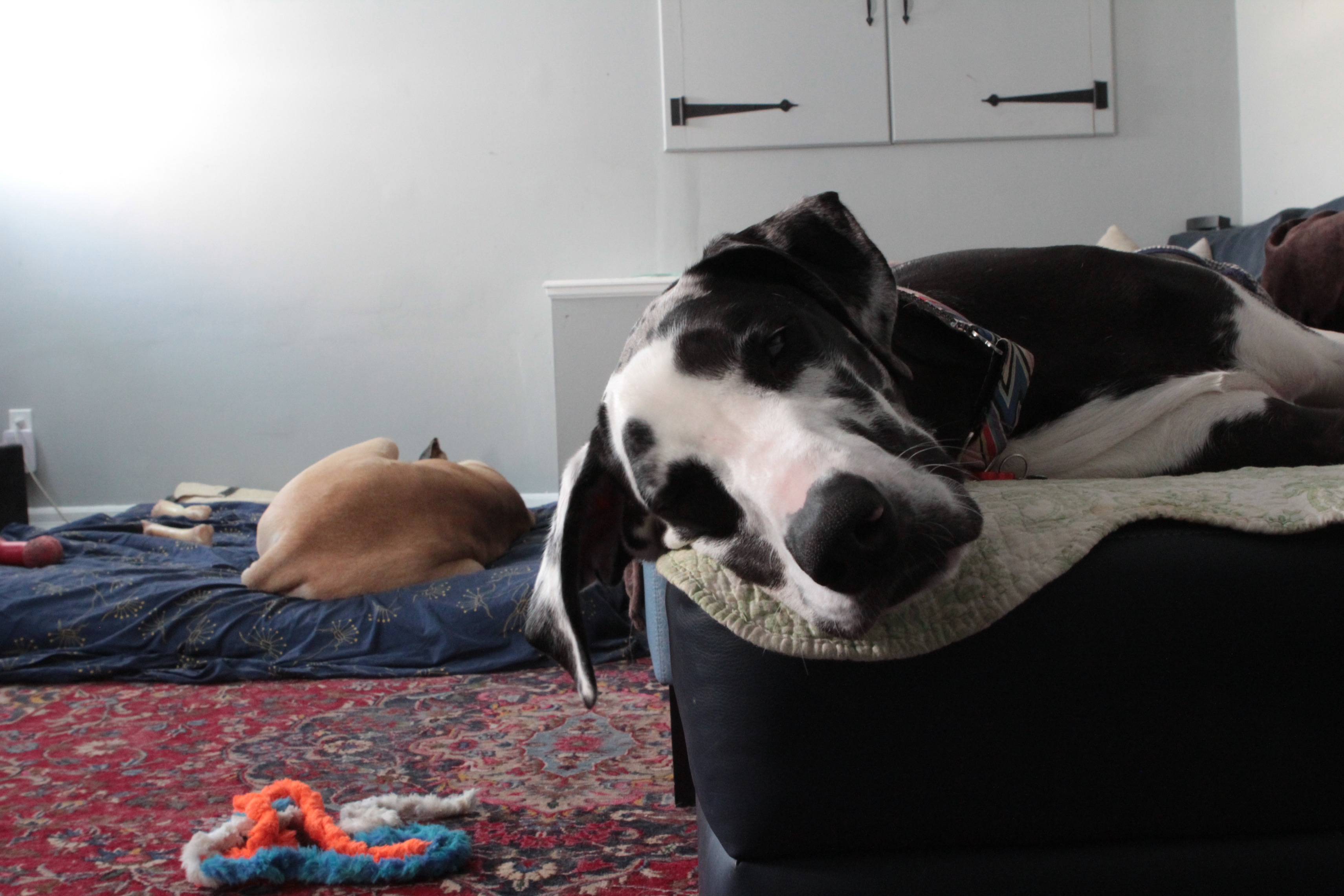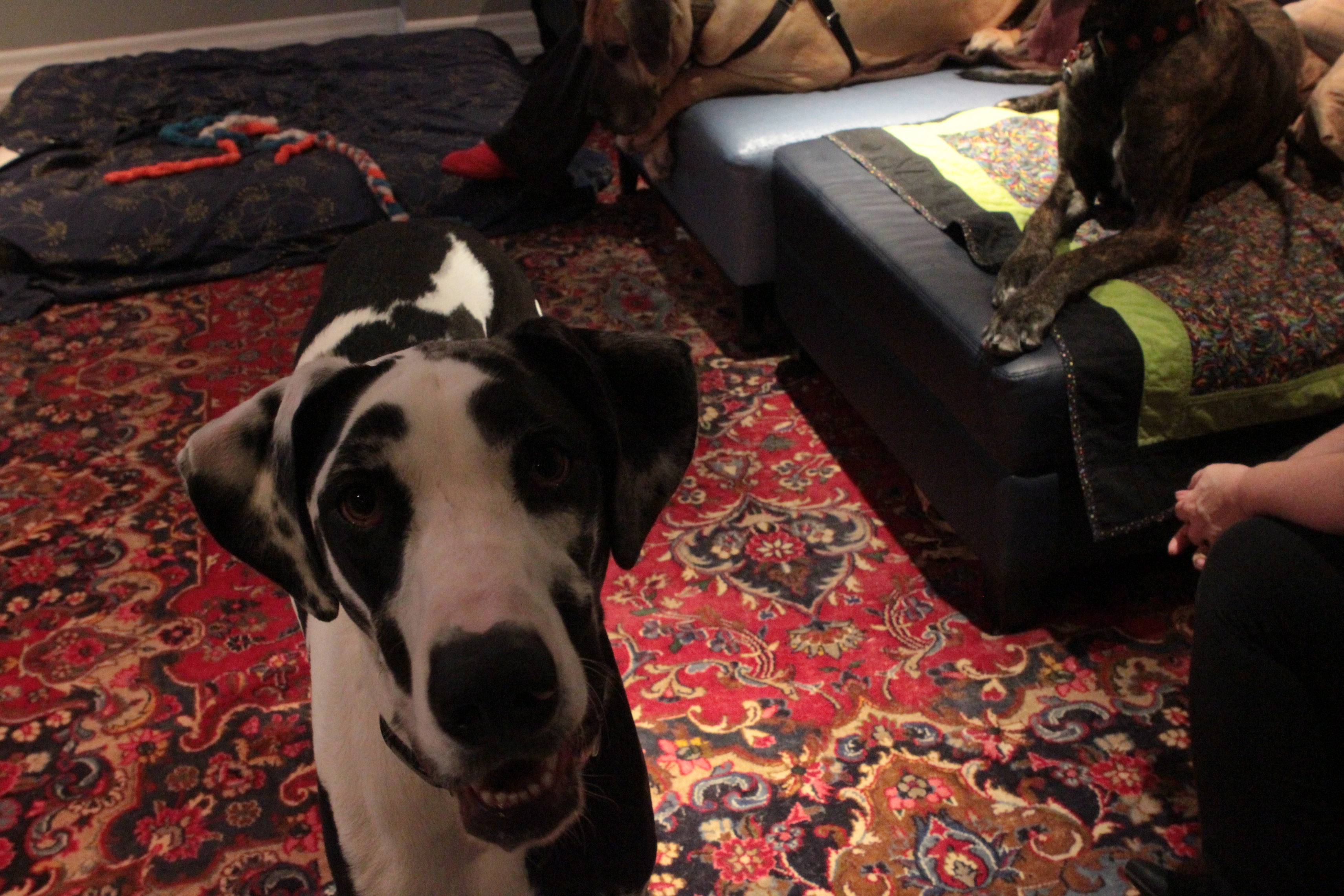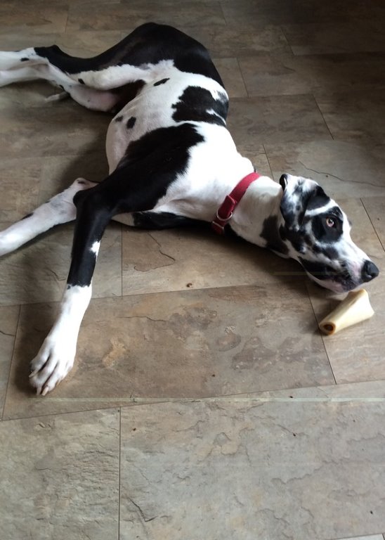 These are some pictures of Monty, the great dane from GDRI that we fostered in March of 2015. He's a lovely dog, young and full of beans, in a good way. He needs some help with his walking obedience, but he's a good dog, with a lot to offer to his future home.