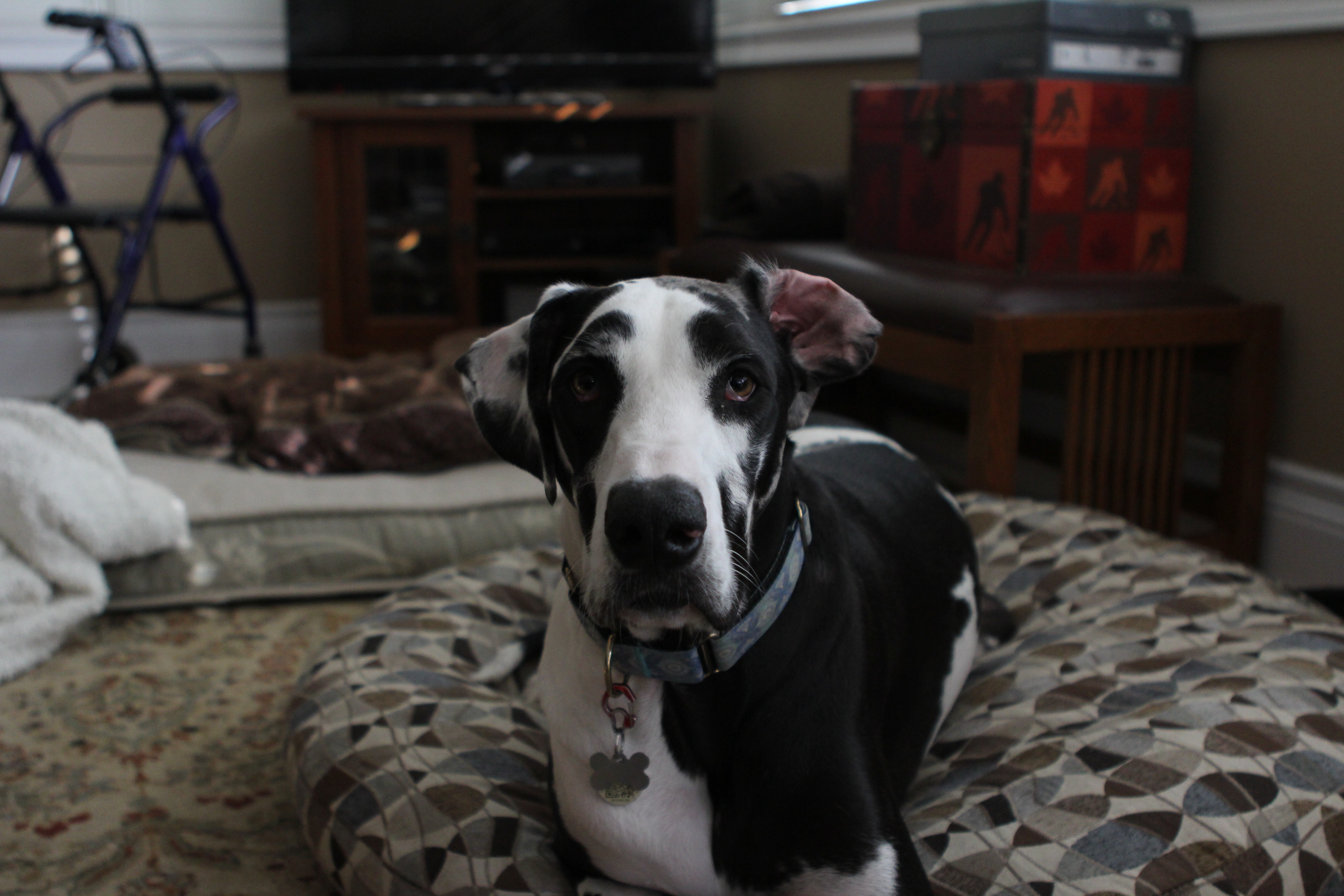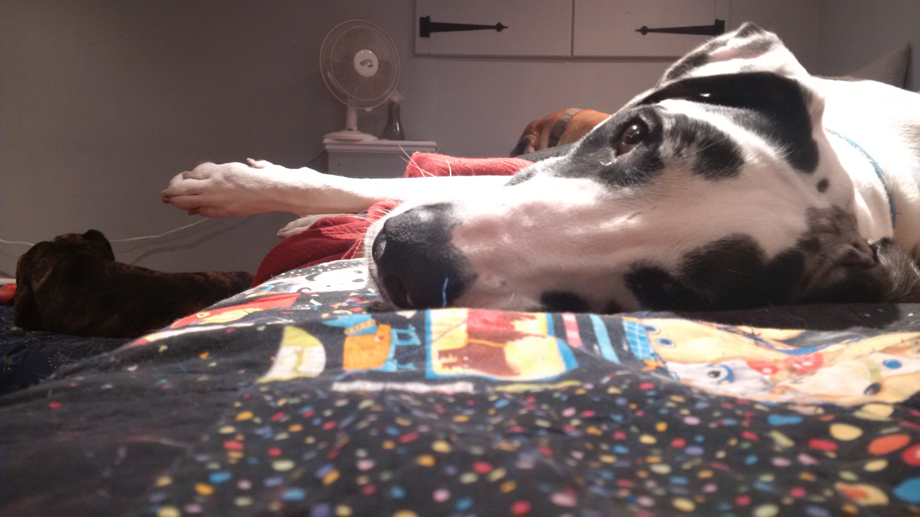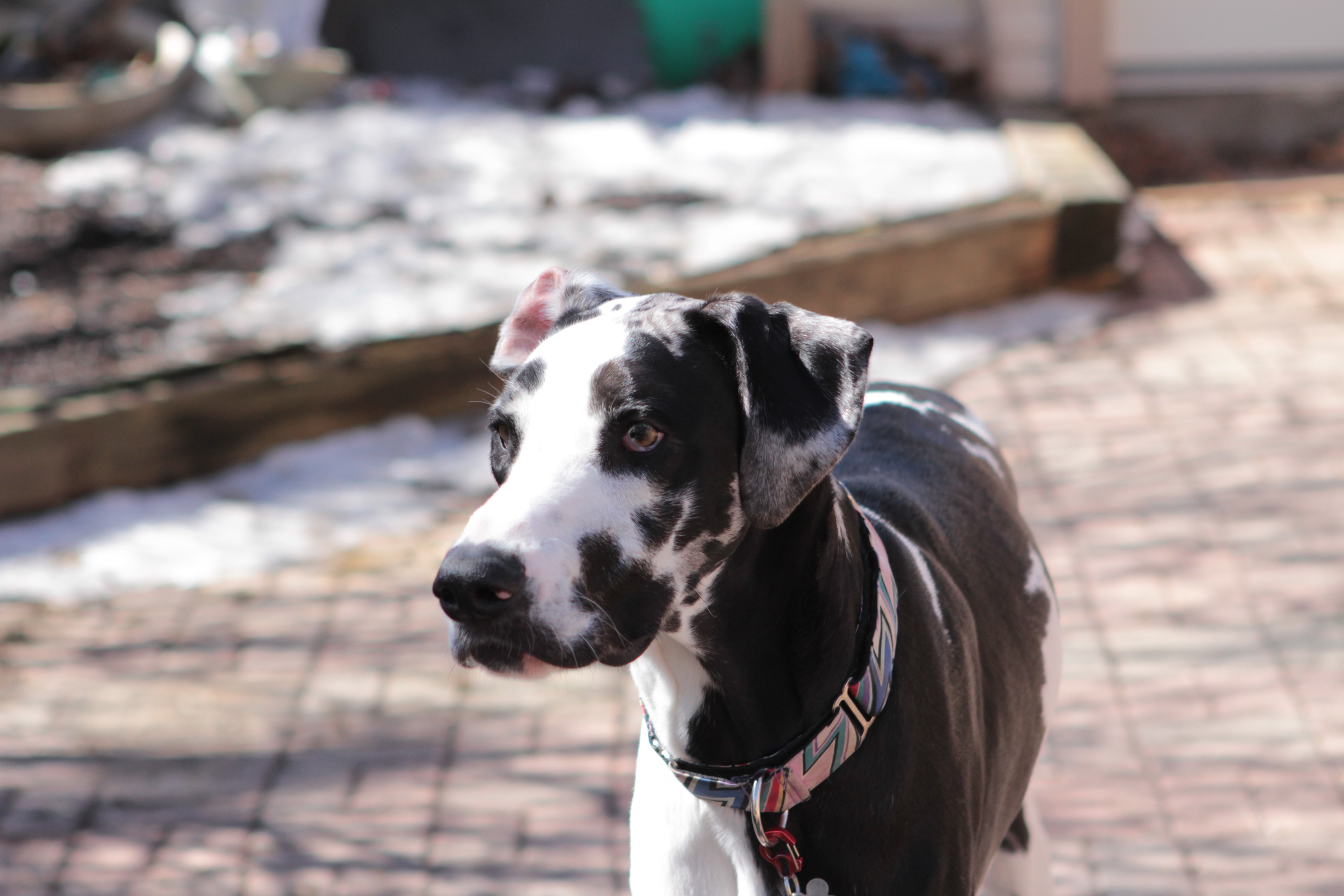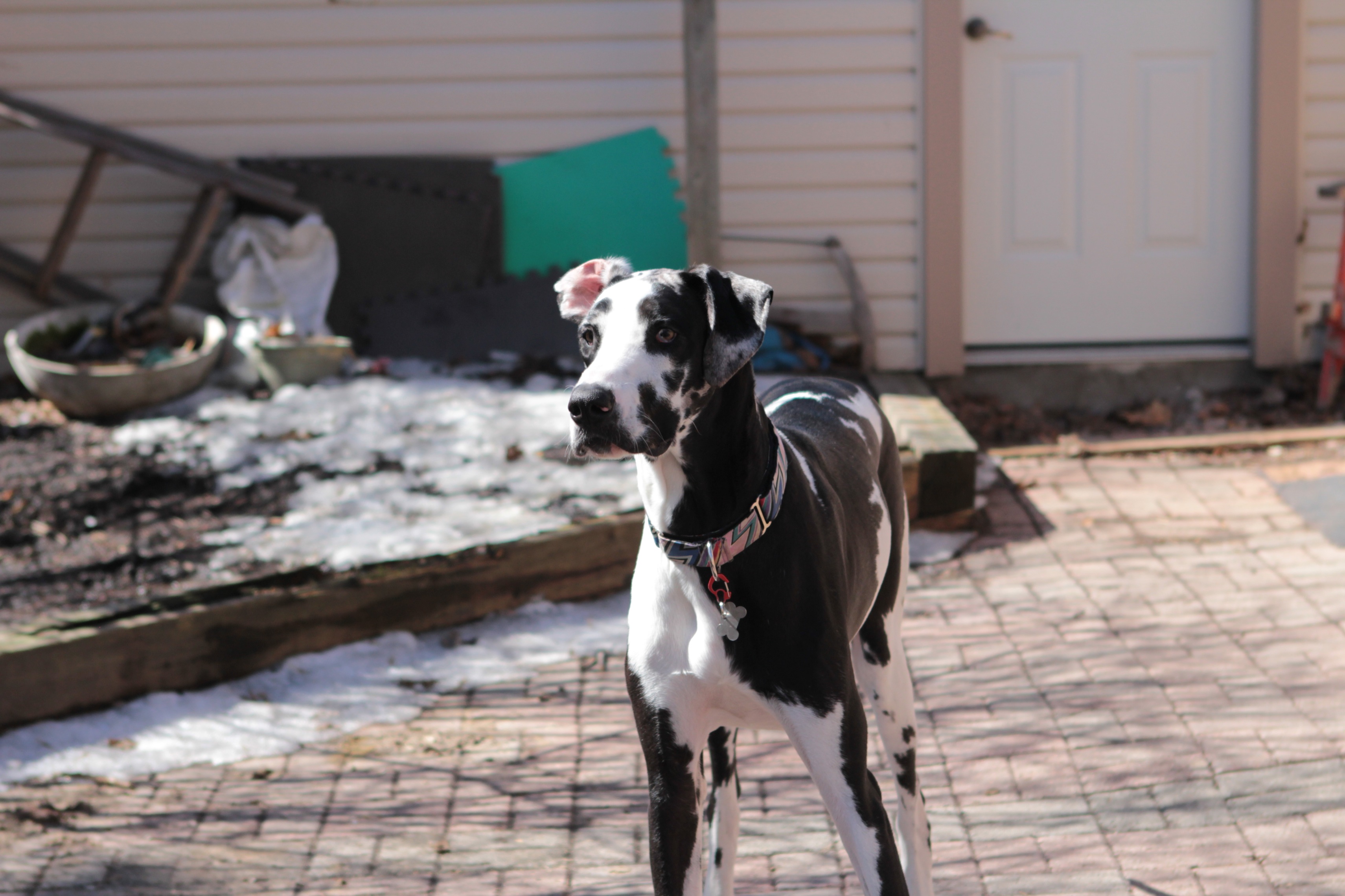 These are some pictures of Monty, the great dane from GDRI that we fostered in March of 2015. He's a lovely dog, young and full of beans, in a good way. He needs some help with his walking obedience, but he's a good dog, with a lot to offer to his future home.