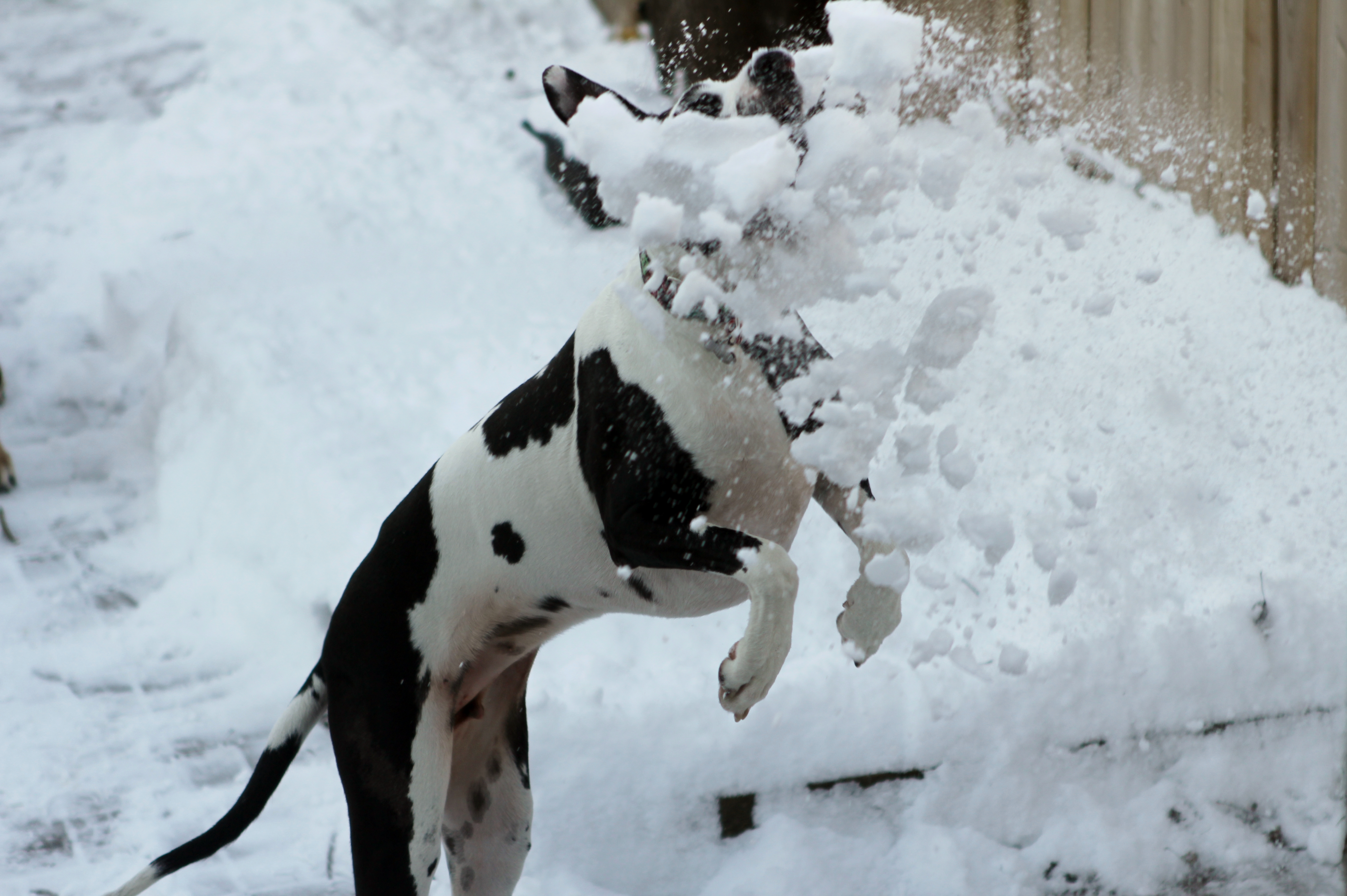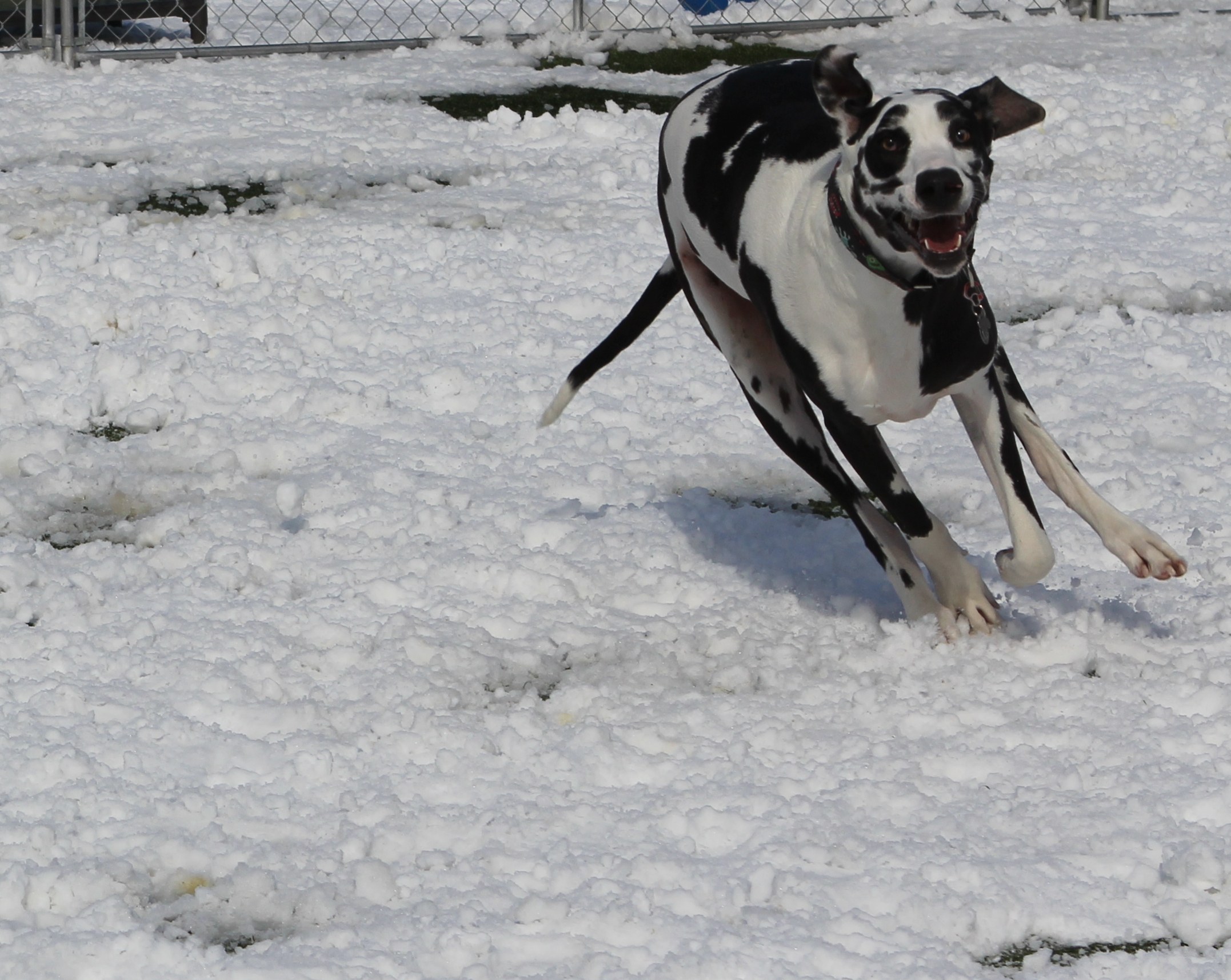 Monty can't get enough of the snow, even when it has zero density. 2016-03-02.