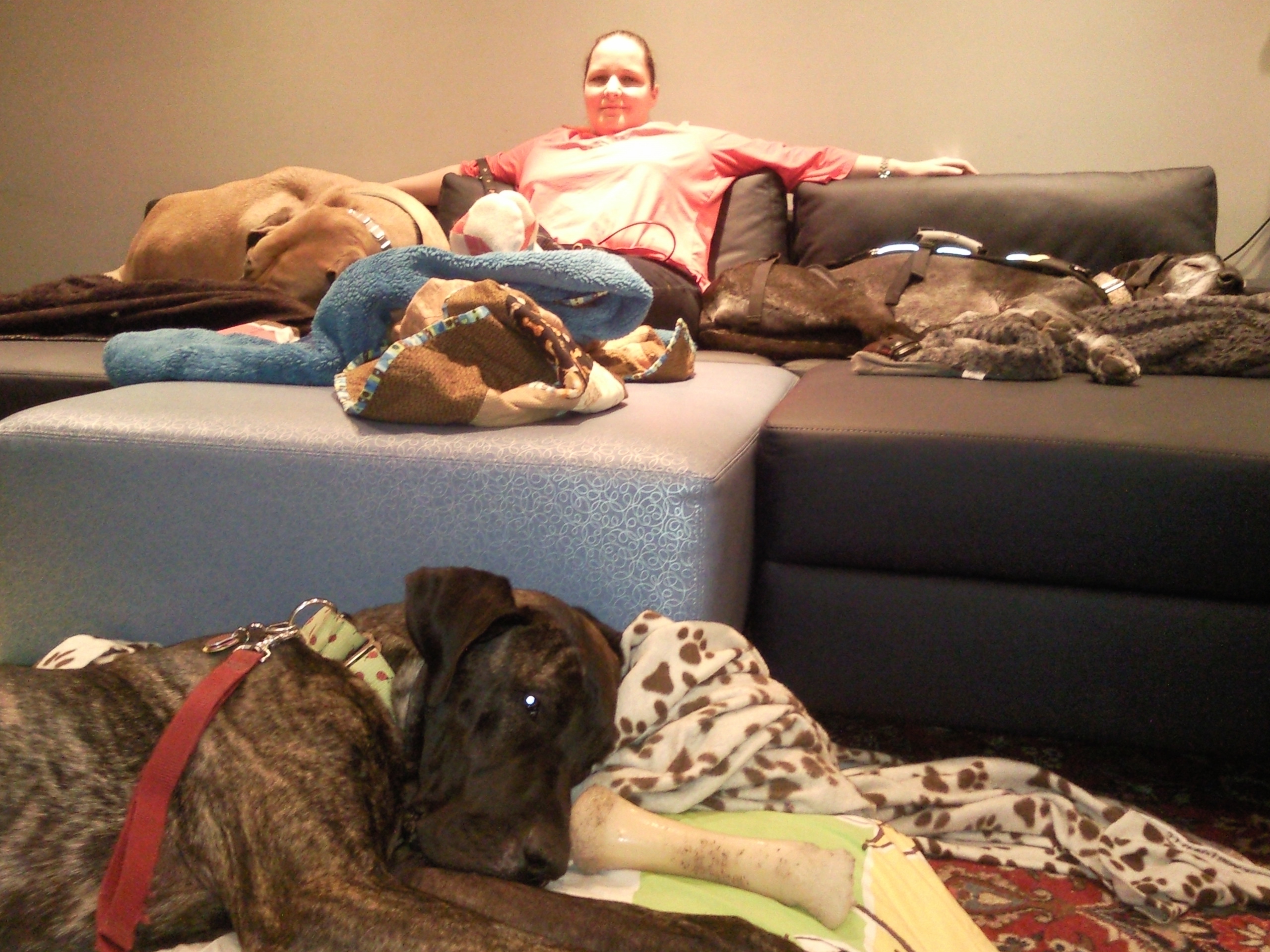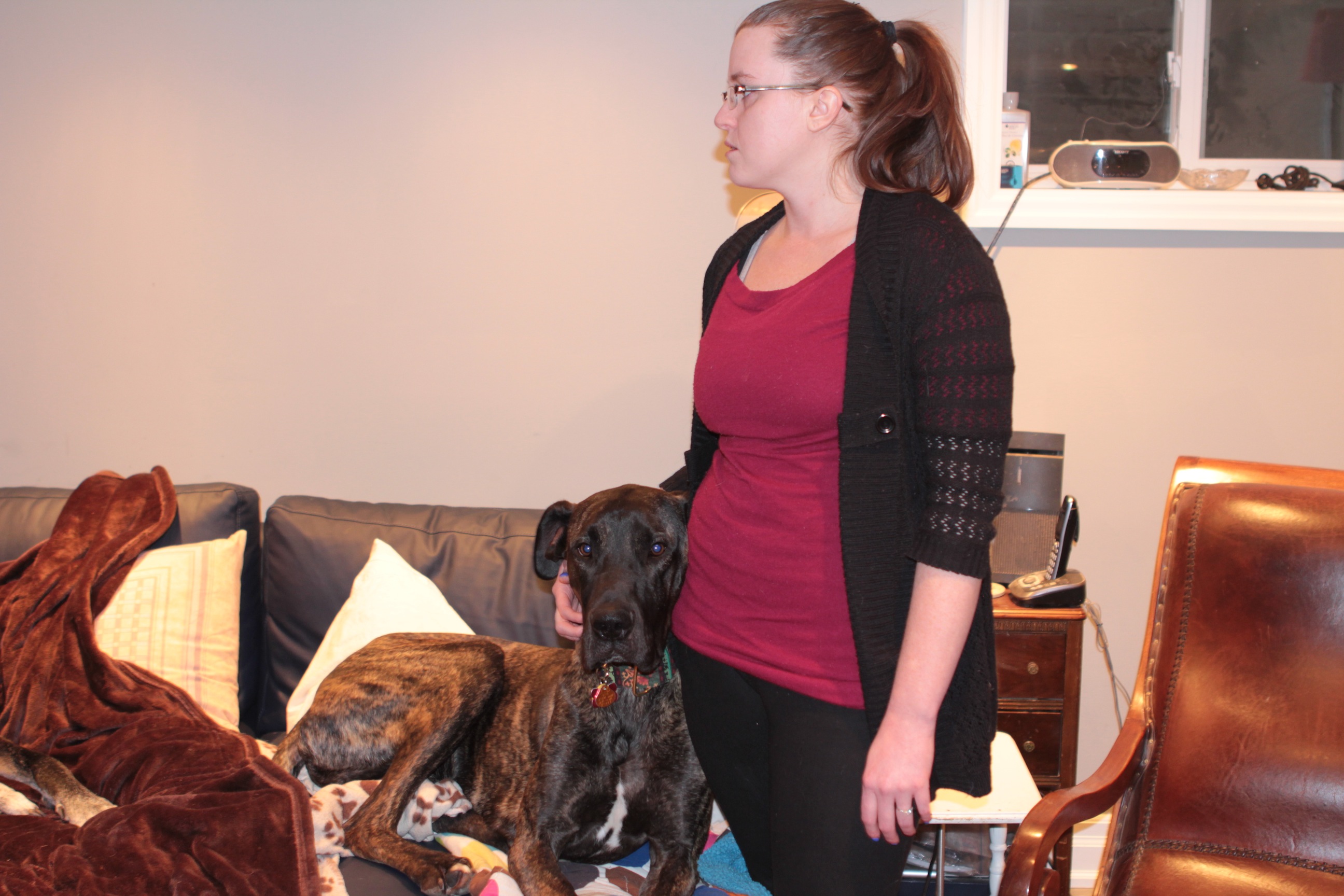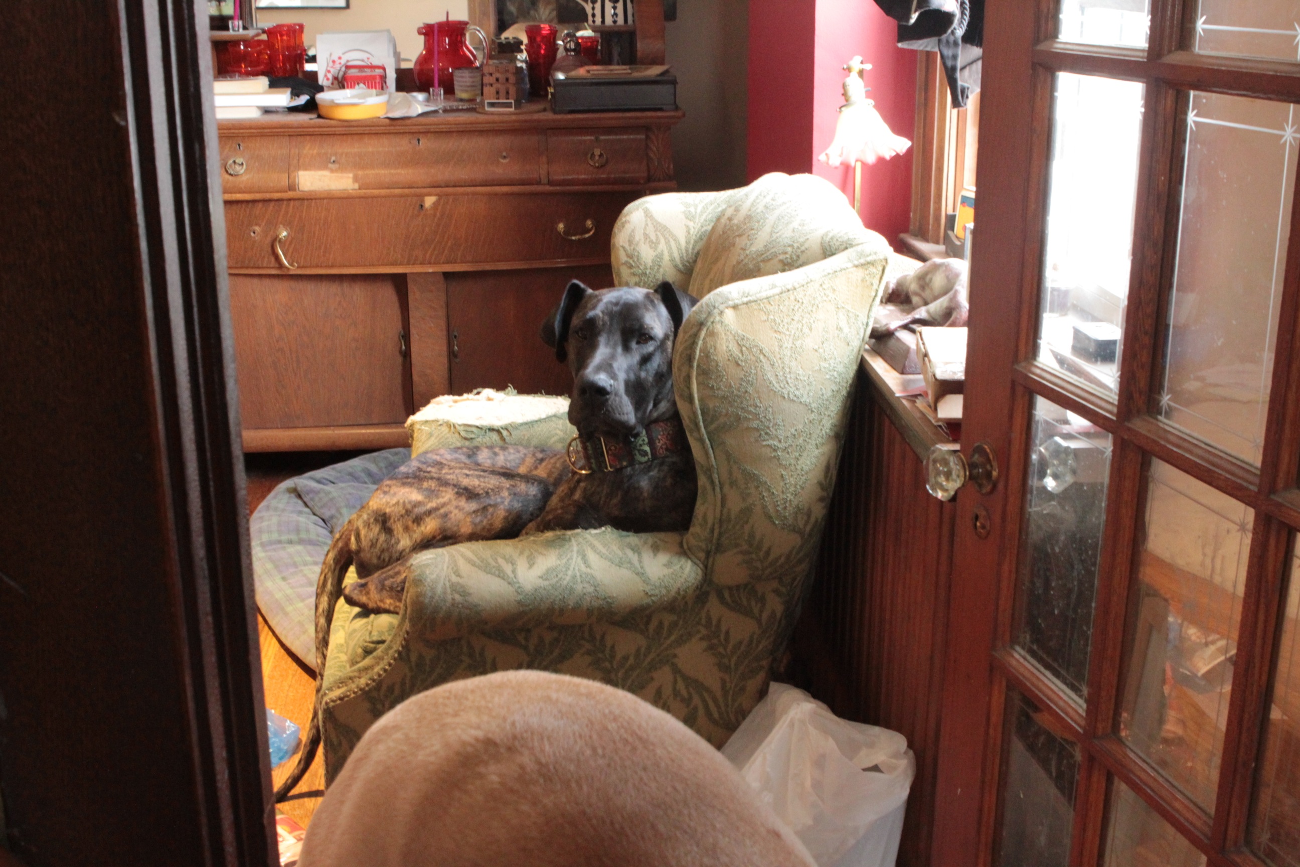 He's much smaller than we've normally had, even smaller than Polka was. Ah, Polka. You're still very missed in the household. Guinness came to us weighing about 110 pounds, and believed to be around a year and a half old. This was in mid-February.