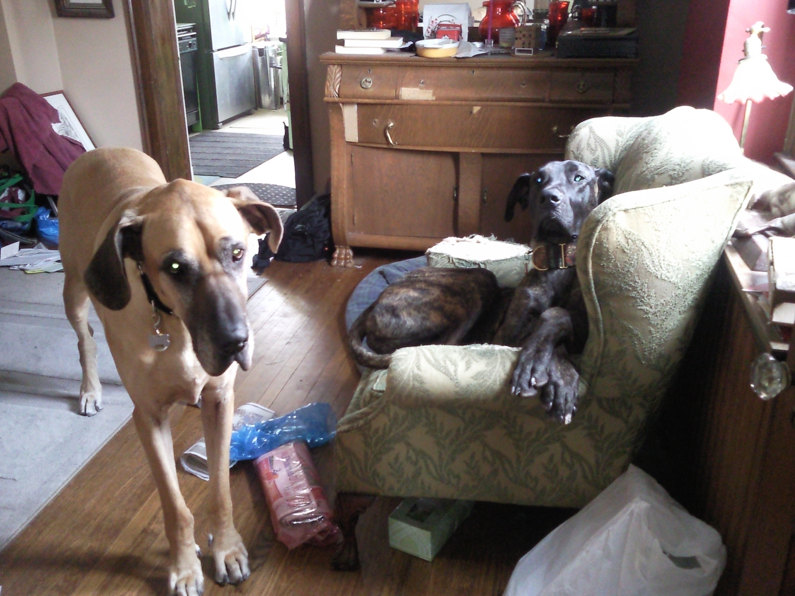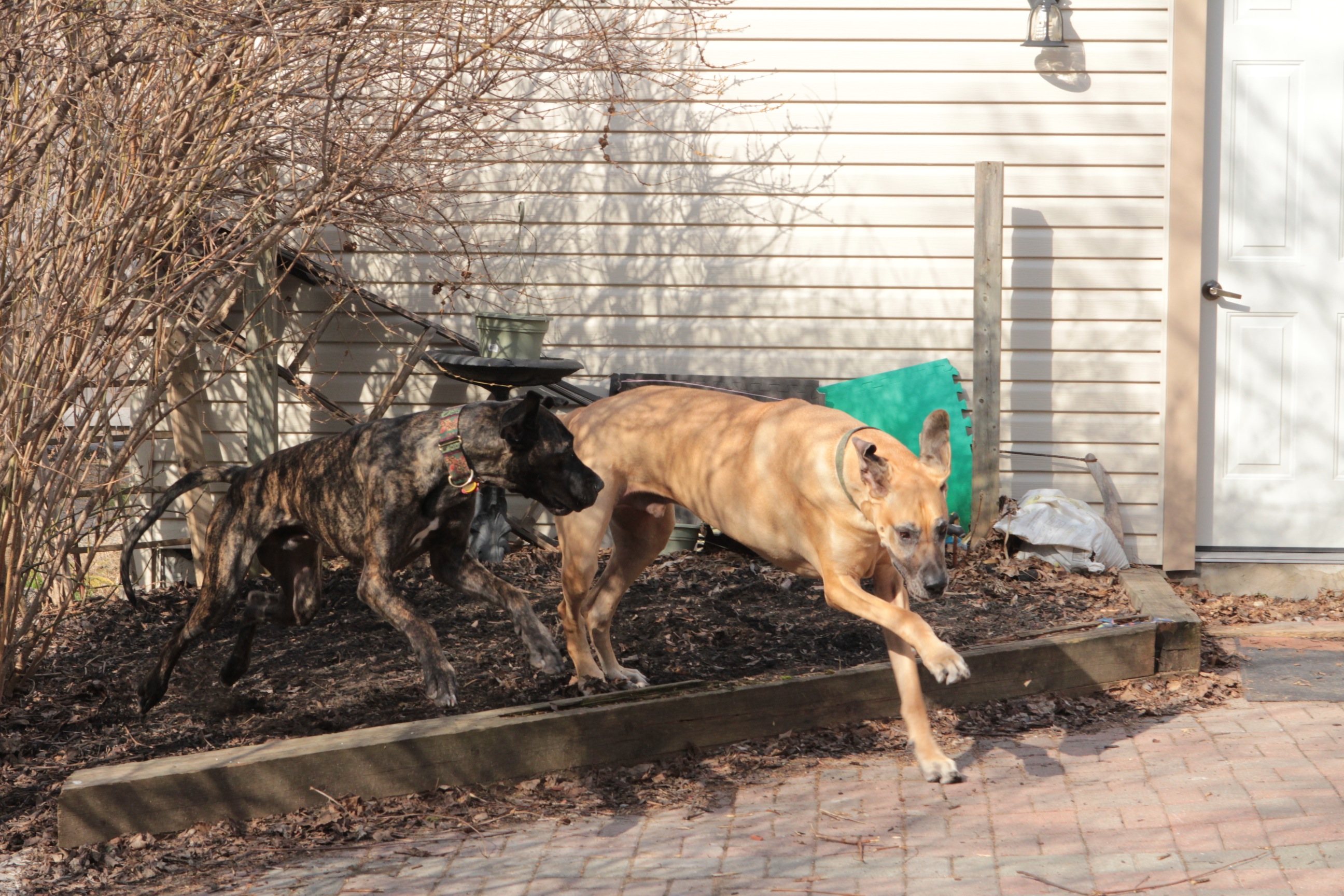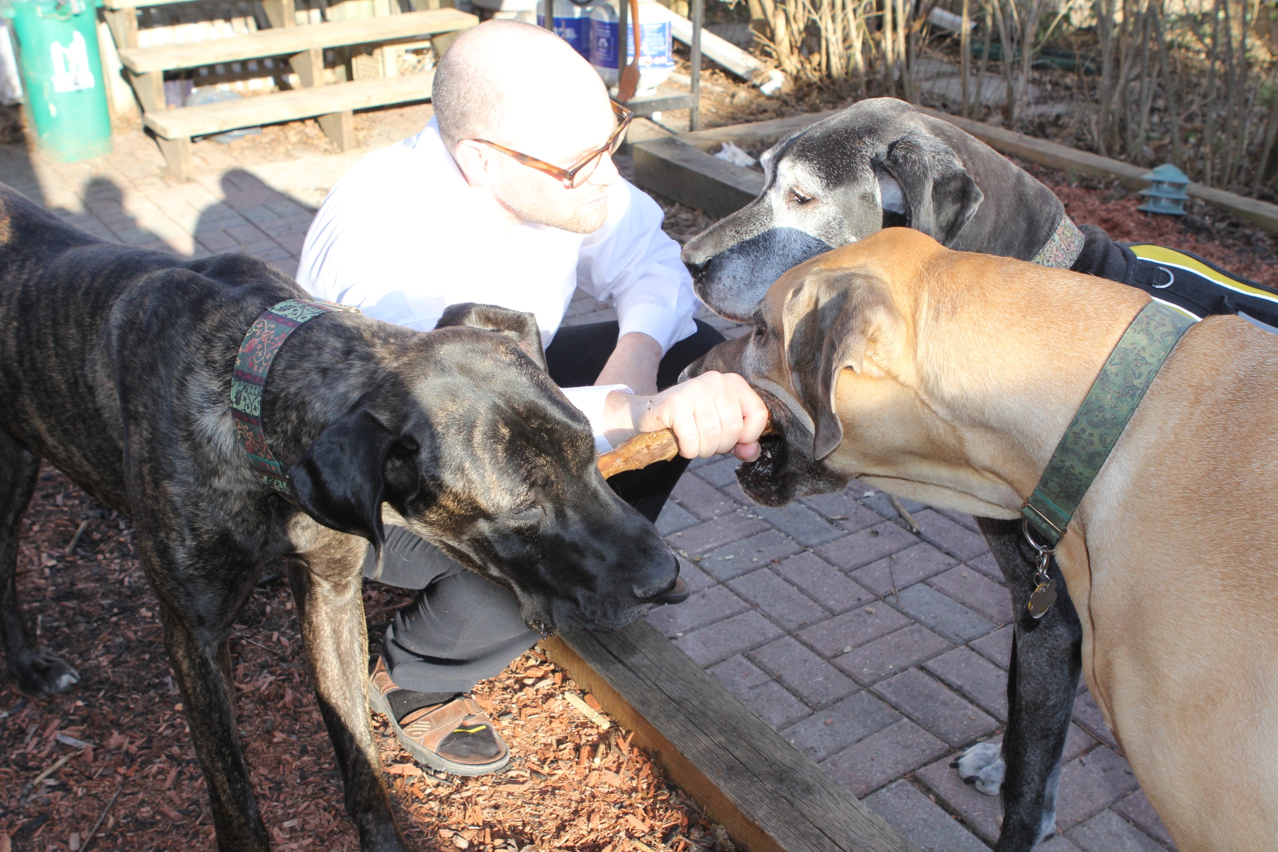And he has shown a bit of improvement of fitting in, and the other two are non-plussed about him, which we're glad for. He plays briefly with Danforth, which we're glad for, although I would love for the two of them to get even more playful, I have to remind myself to be patient. He's had a tough past life, and it might take a while for him to actually get rid of his demons.