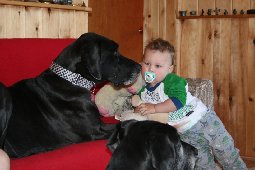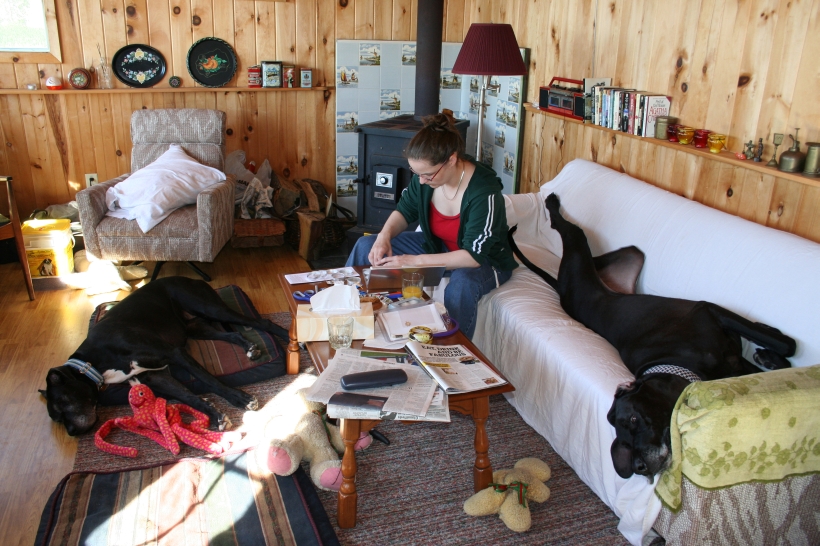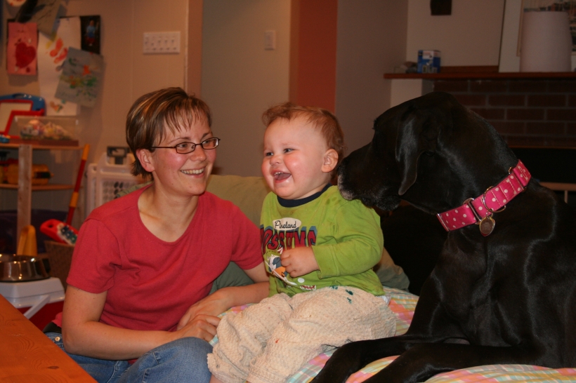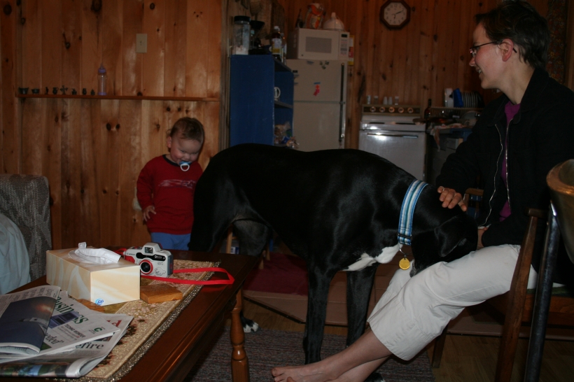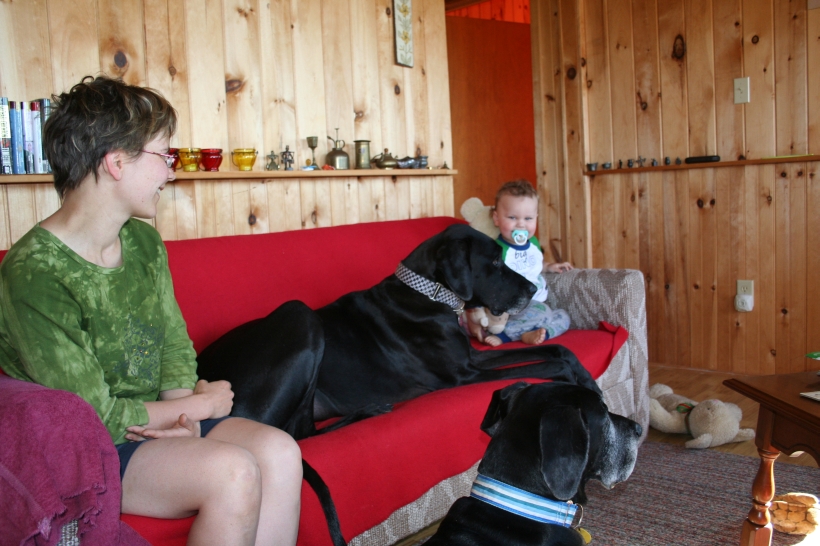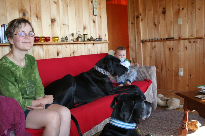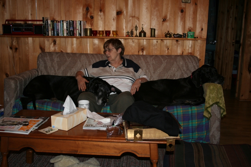Mother is having a swell time with the dogs
