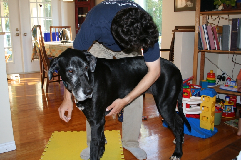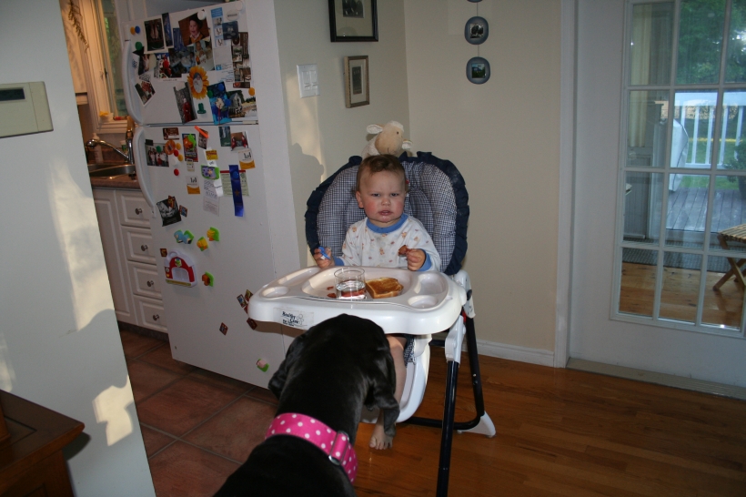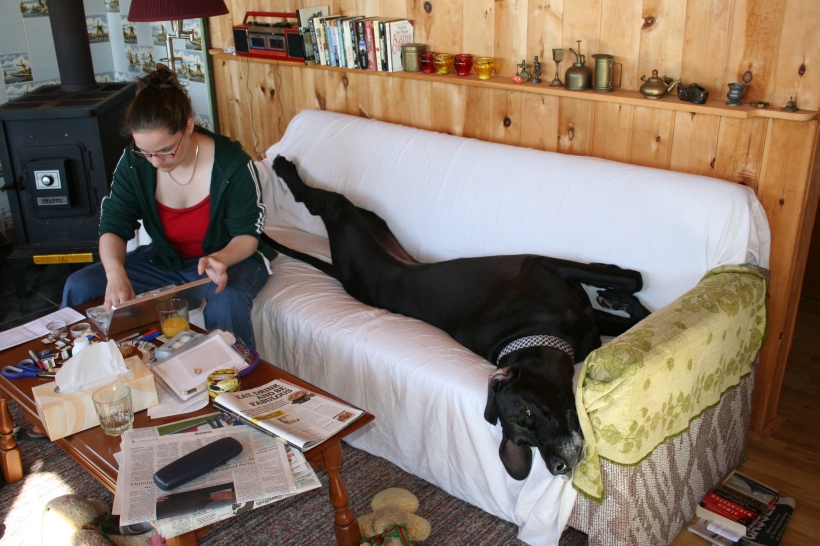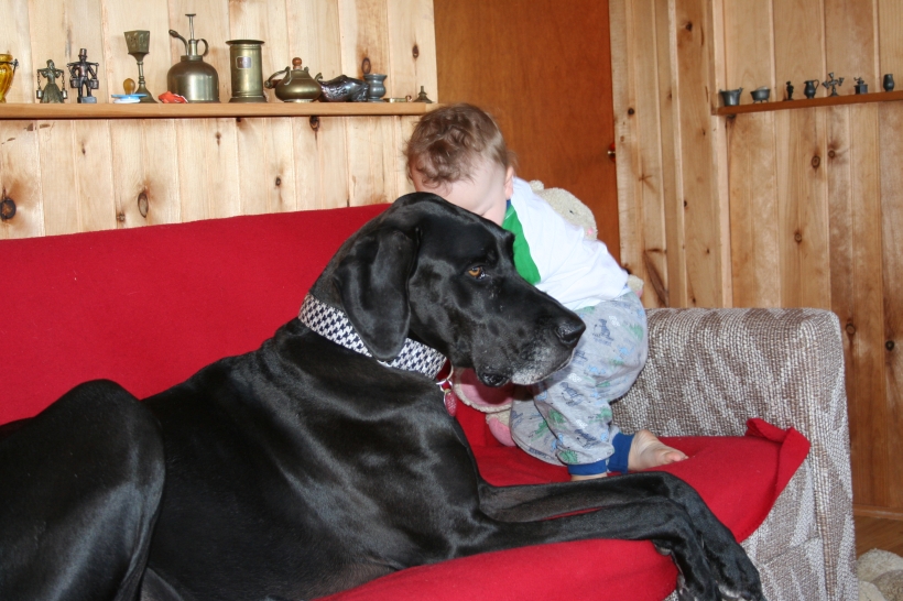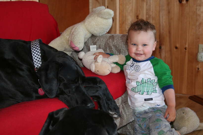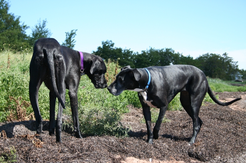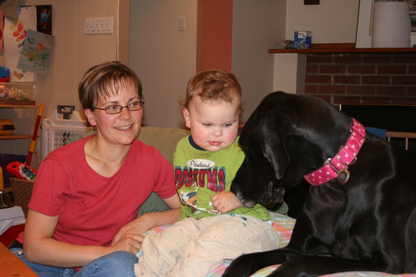 Mother is having a swell time with the dogs